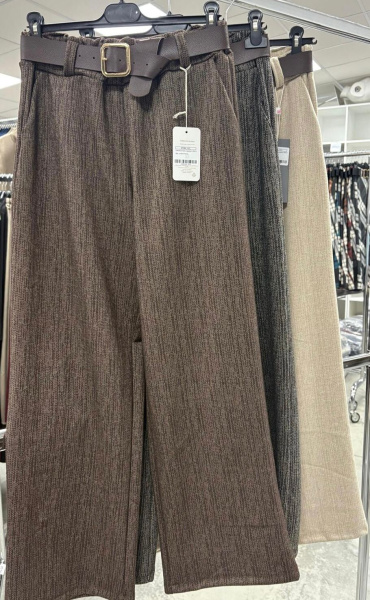 Dámské široké kalhoty do gumy, doplněny páskem. Kalhoty jsou volnějšího střihu a mají všité kapsy. Vyrobeno v Itálii.