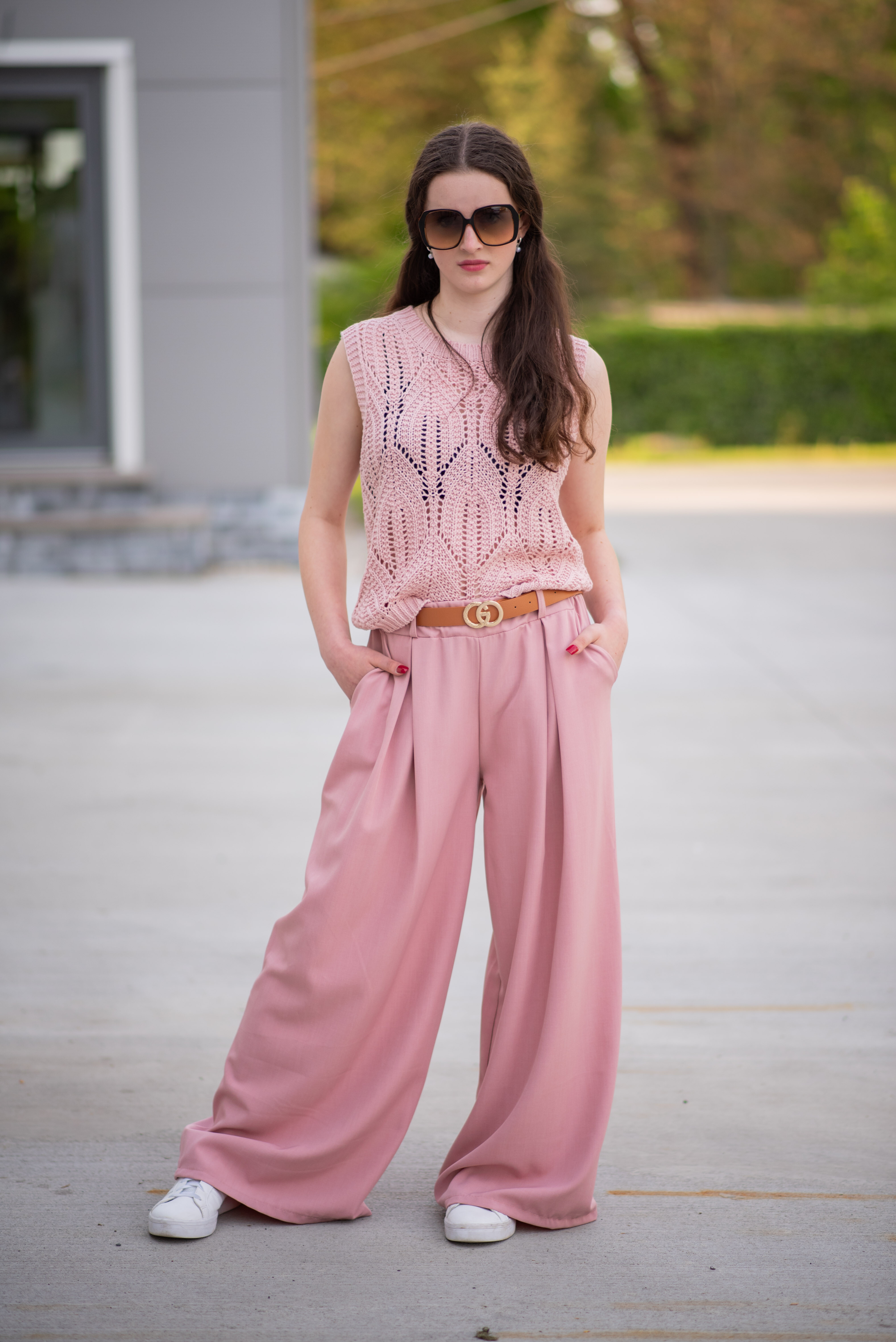 Kalhoty široké s páskem 52159