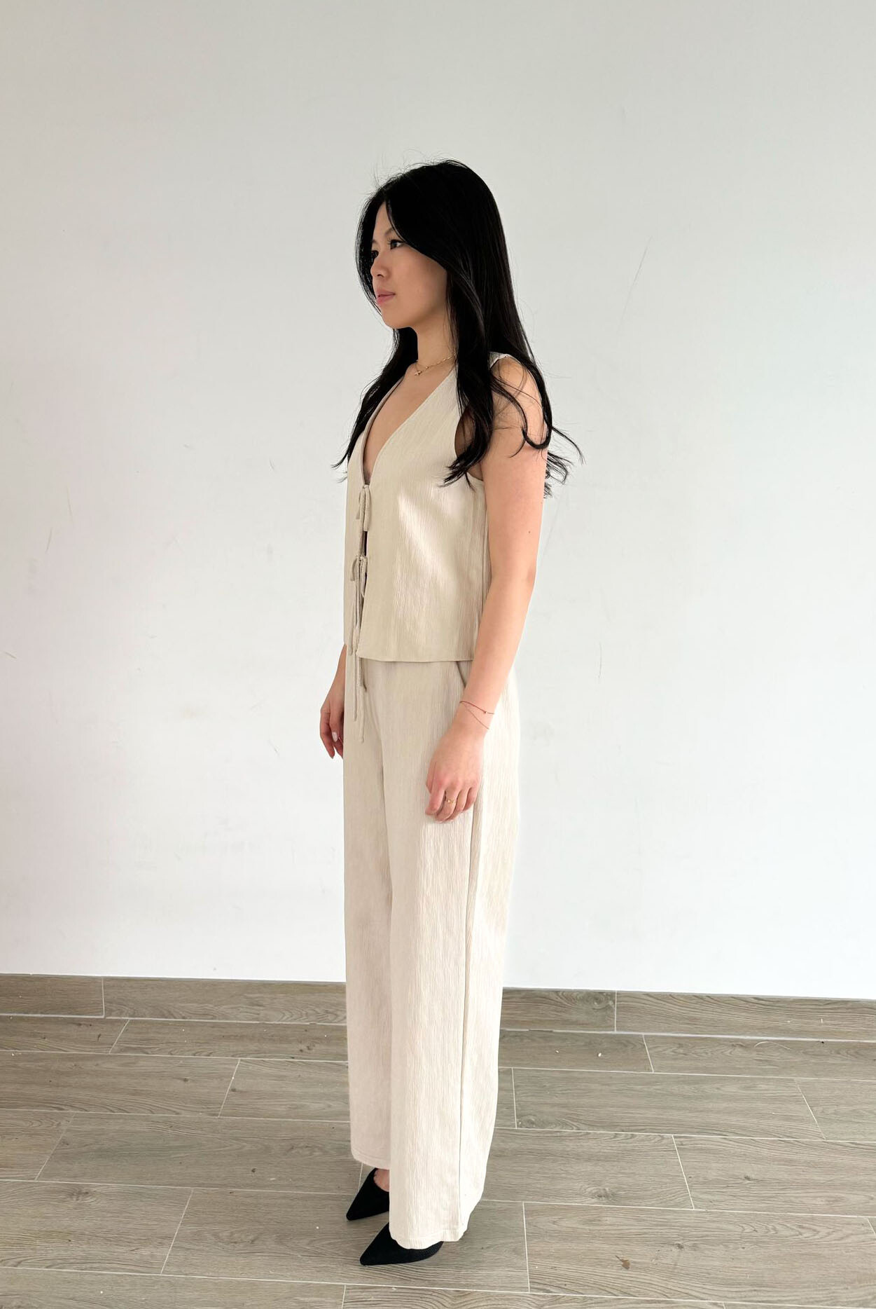 Dámské kalhoty wide leg střihu. Kalhoty jsou v pase do gumy, mají široké nohavice a jsou z velmi příjemného materiálu.