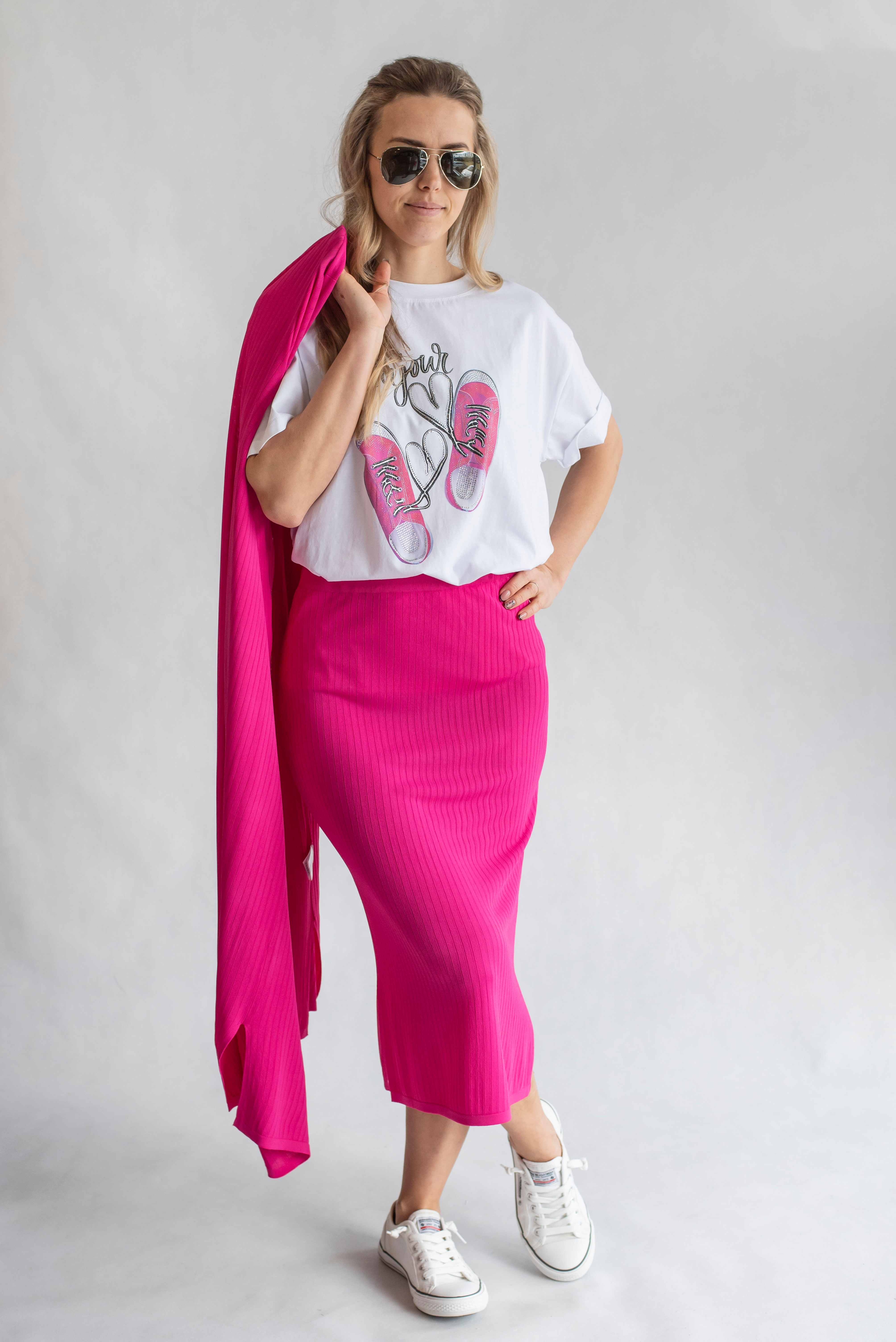 Módní komplet sukně a kardiganu