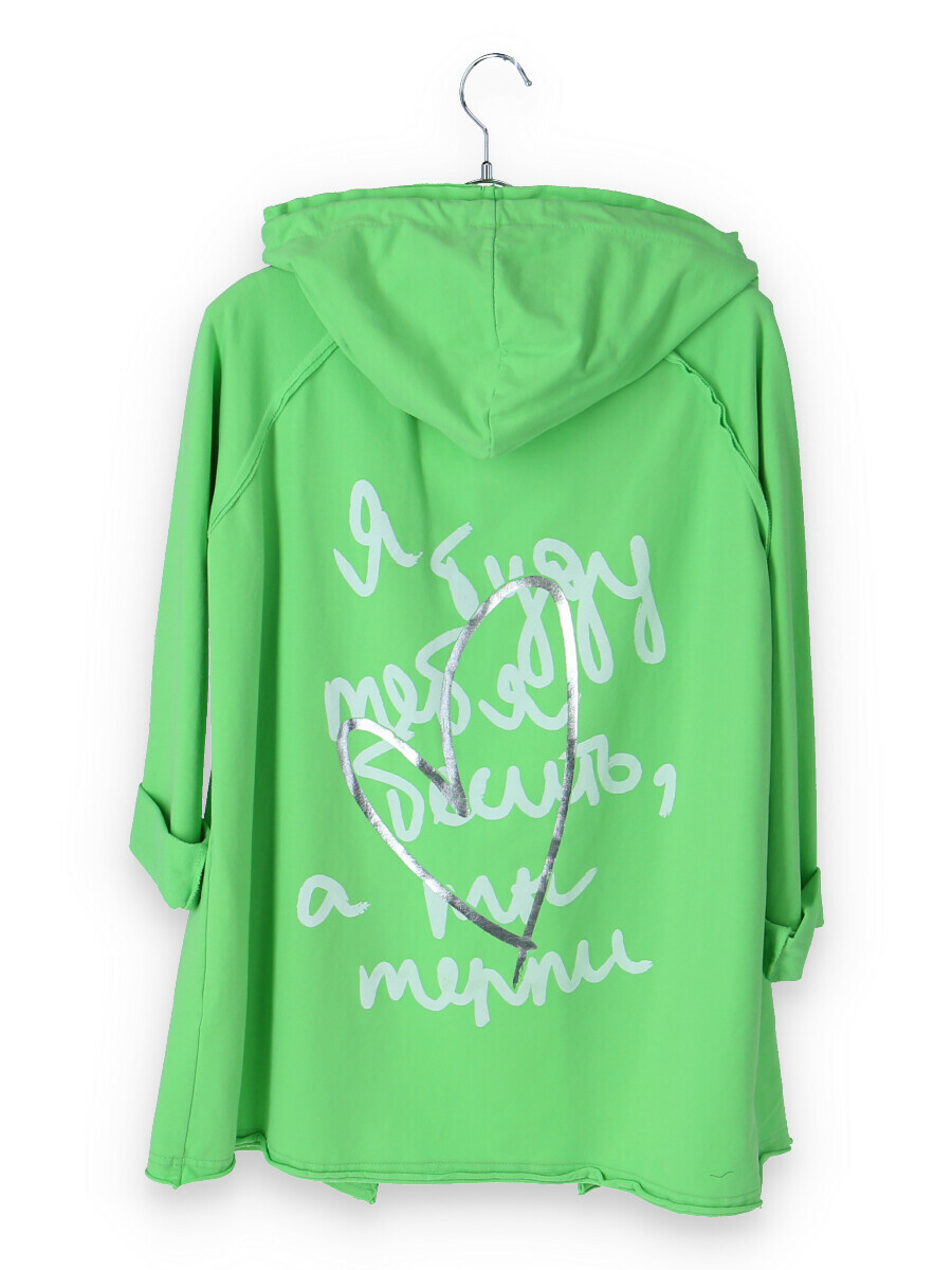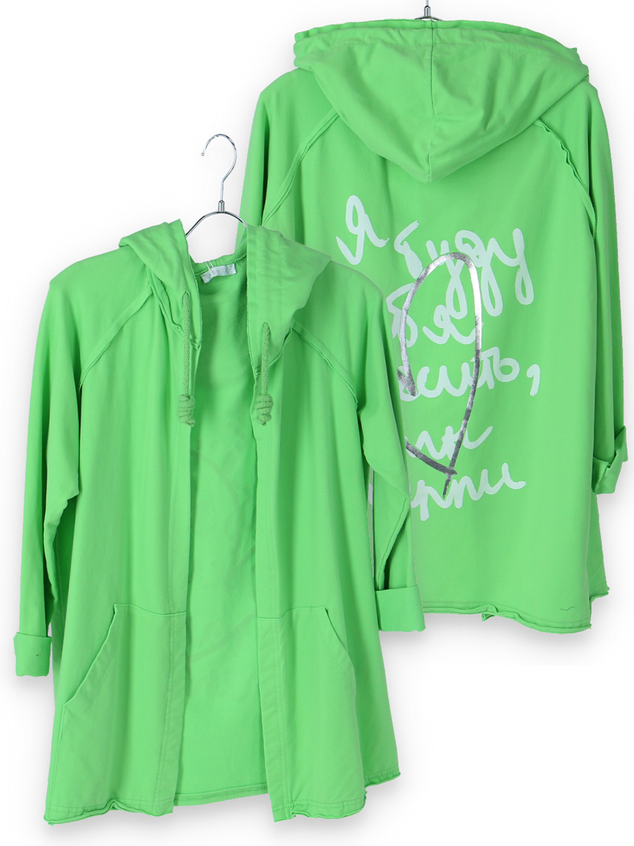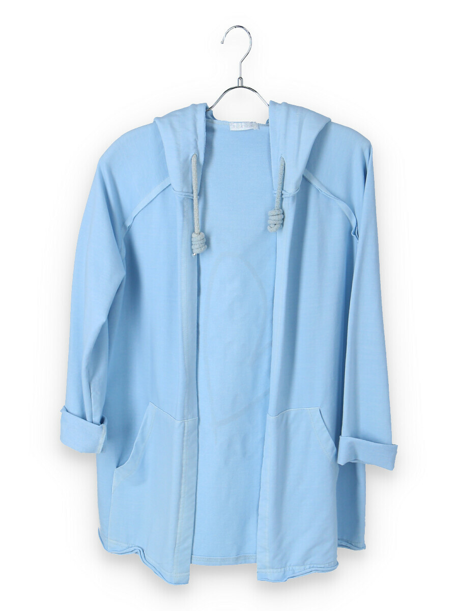 Kardigan s kapucí bavlněný se stylovým potiskem na zádech s kapsami, dlouhý rukáv, jemný úplet Itálie