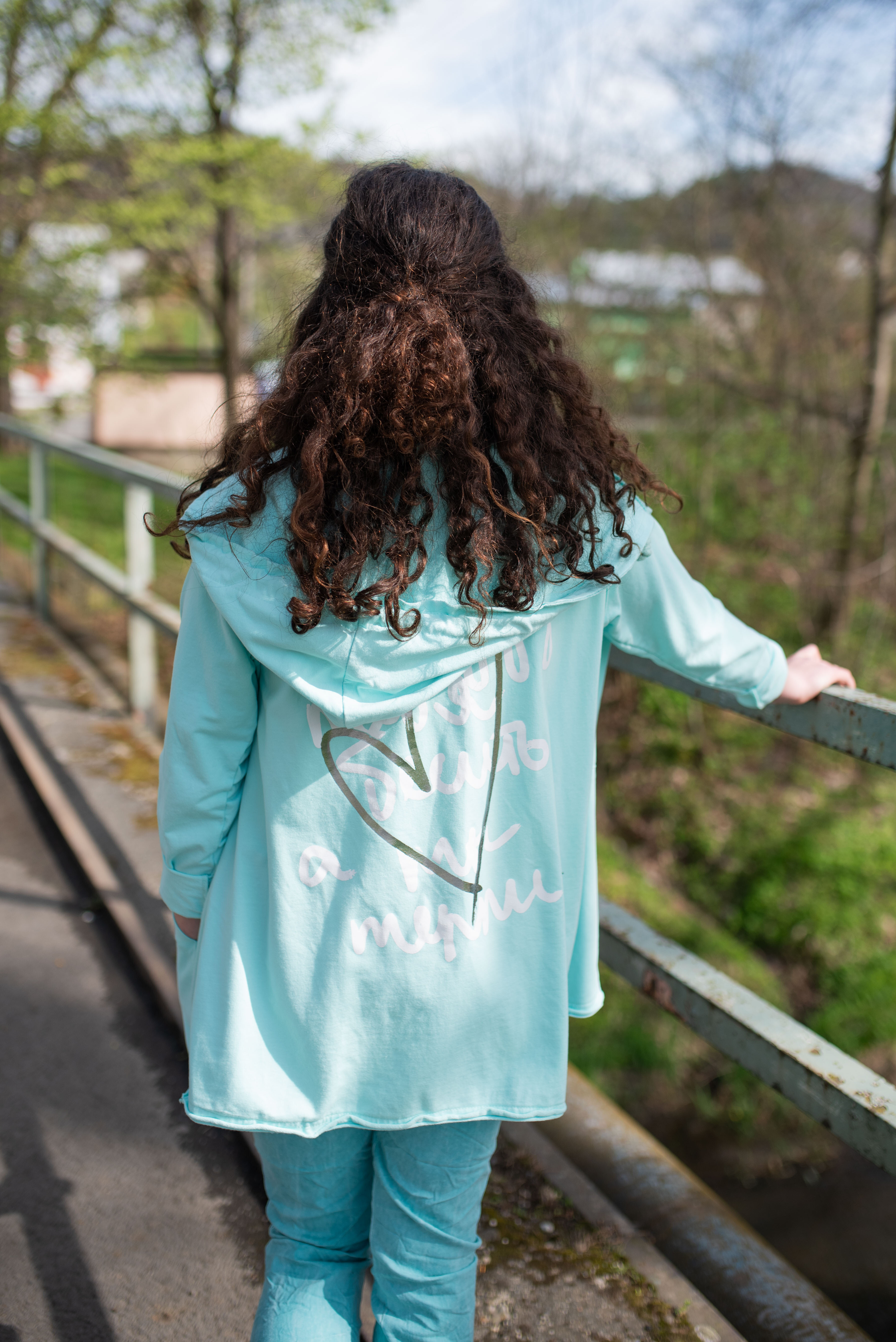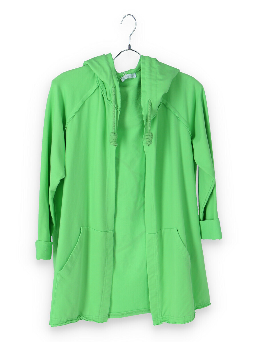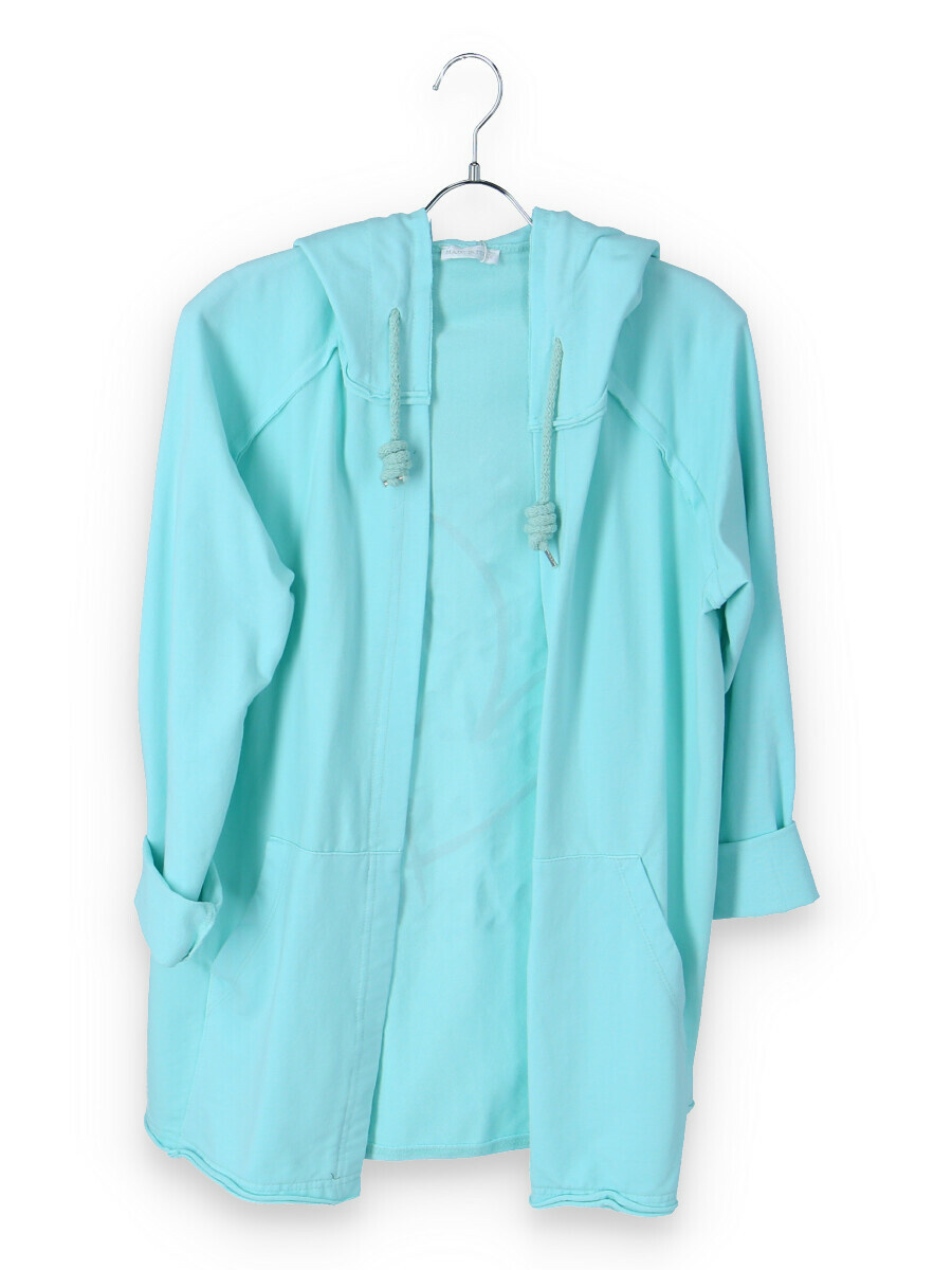 Kardigan s kapucí bavlněný se stylovým potiskem na zádech s kapsami, dlouhý rukáv, jemný úplet Itálie