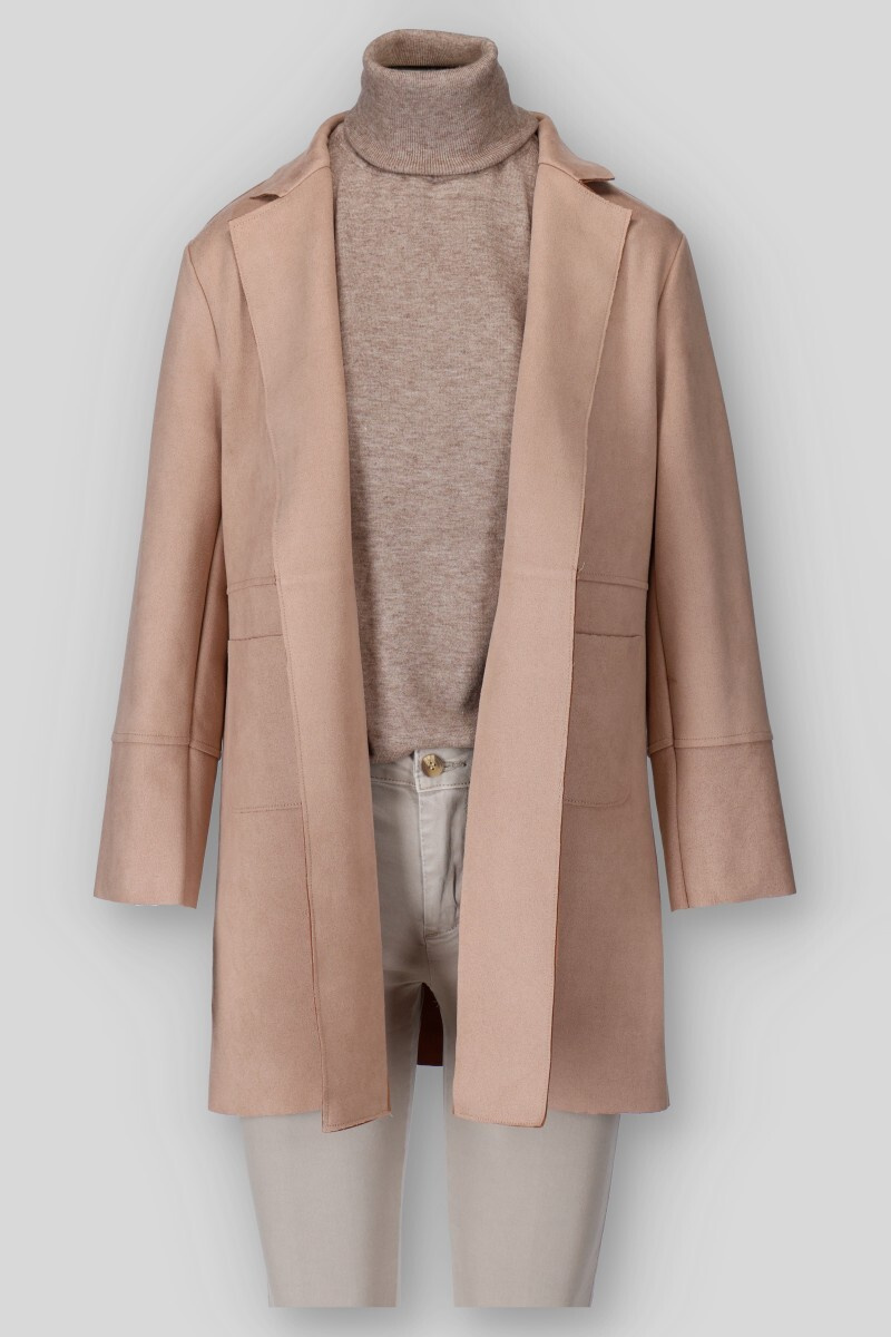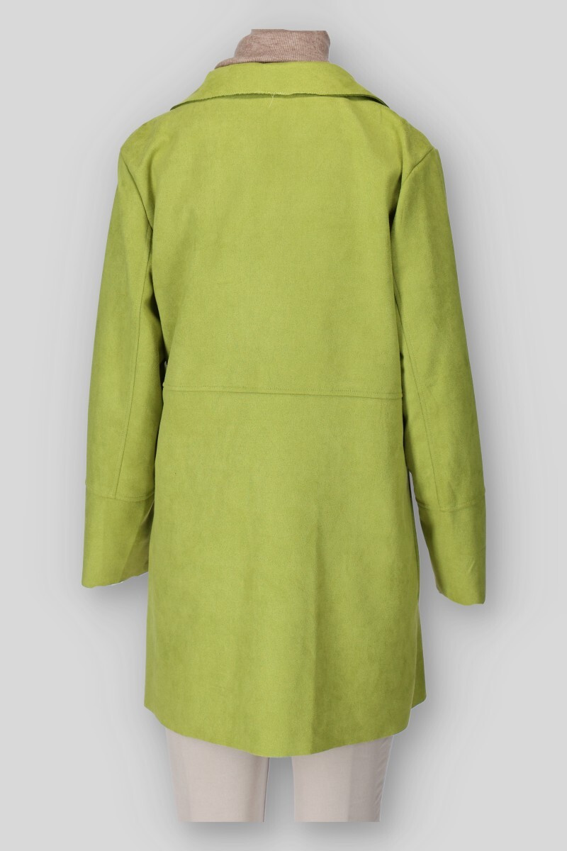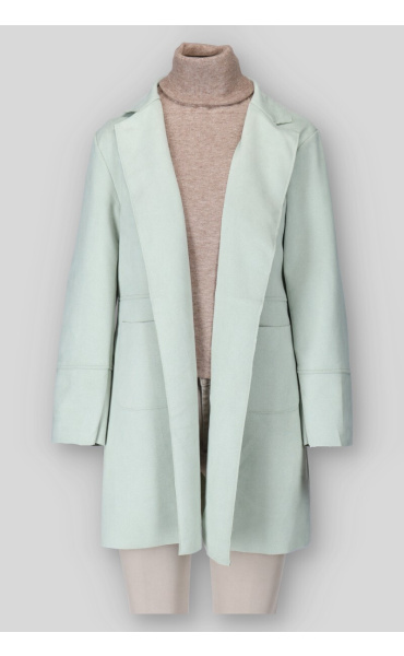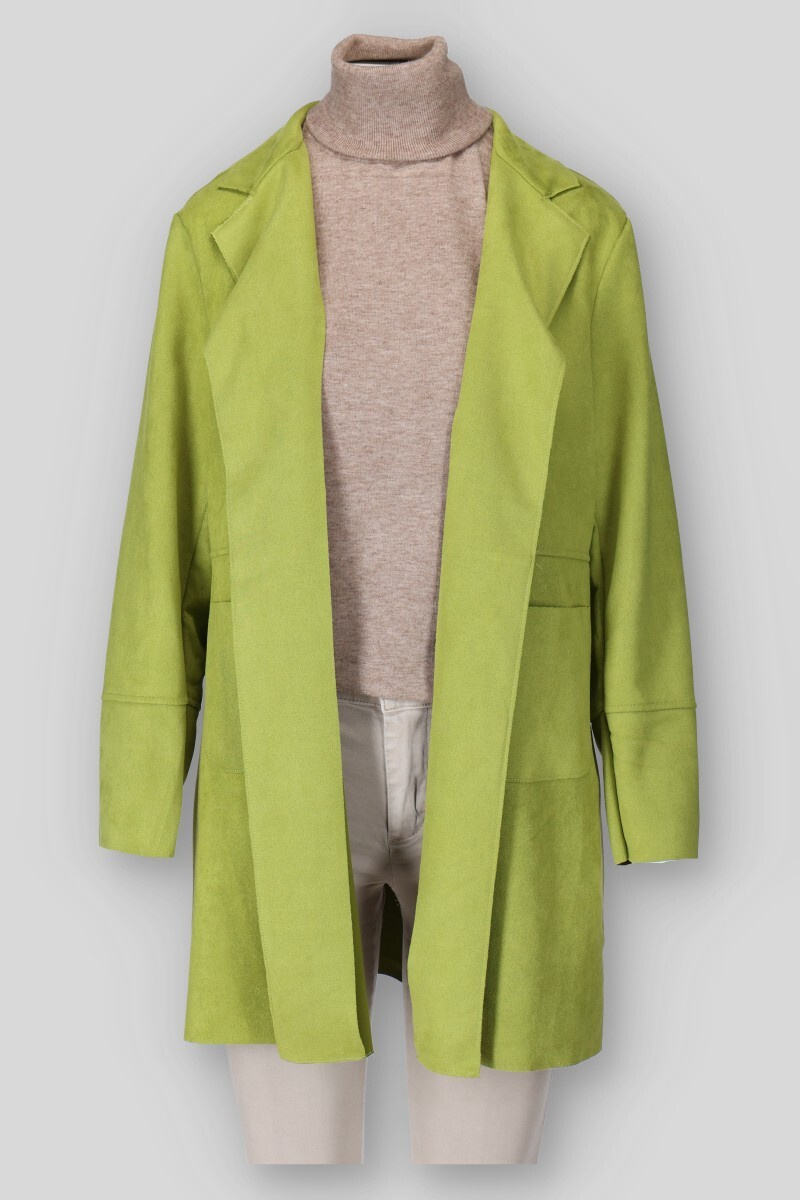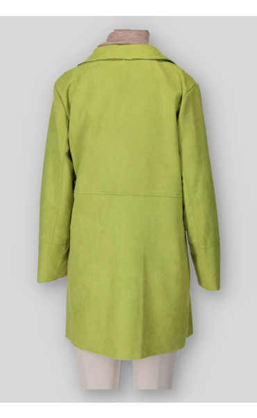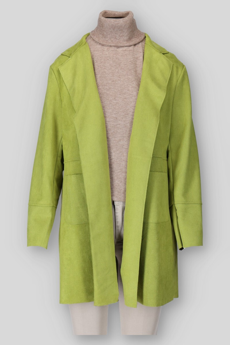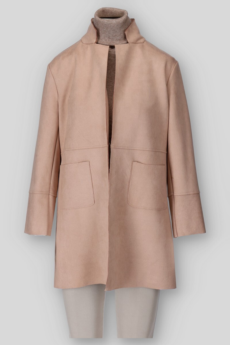 Dámský kardigan imitace broušené kůže s našitými kapsami na přední straně.