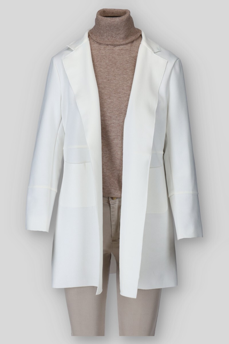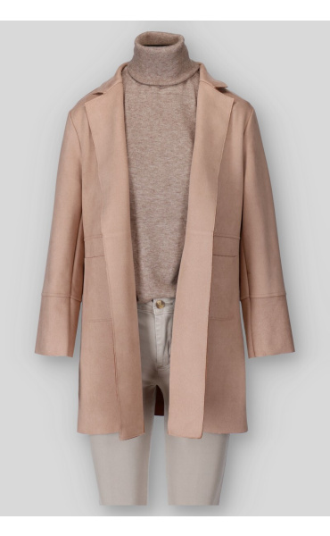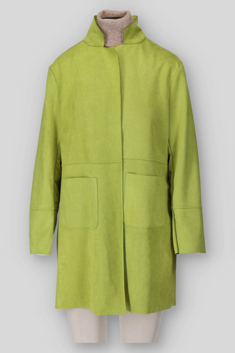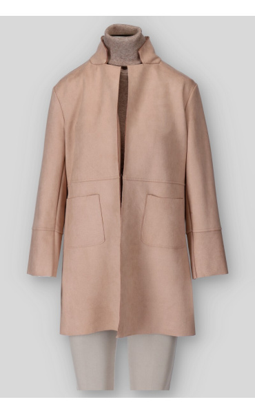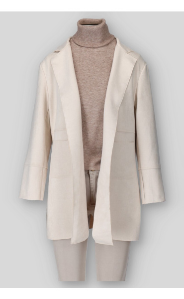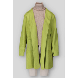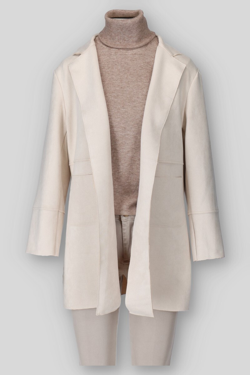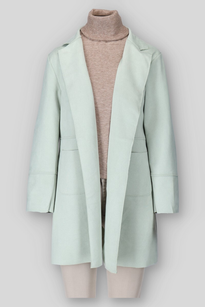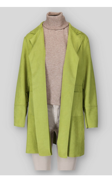 Dámský kardigan imitace broušené kůže s našitými kapsami na přední straně.