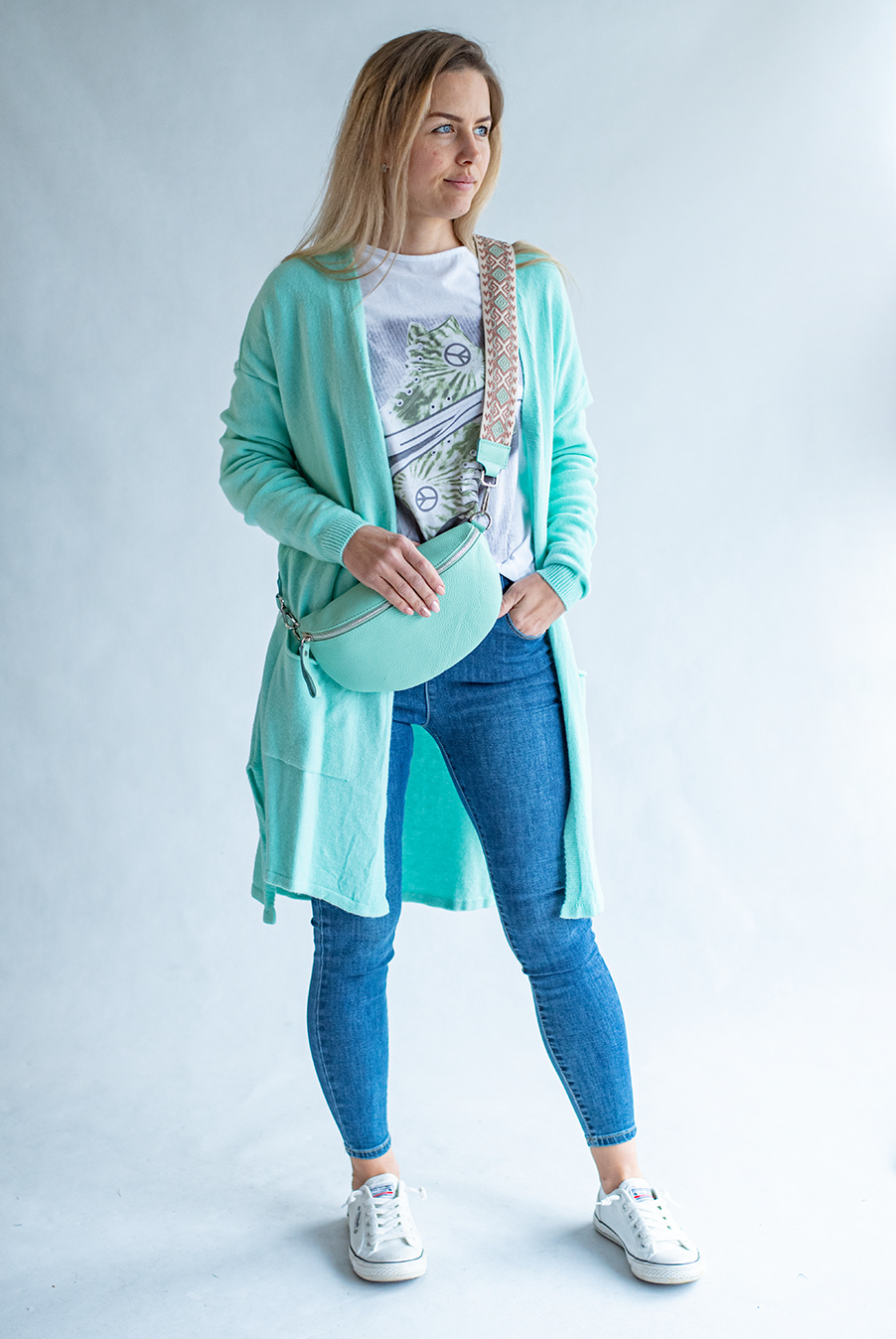 Elegantní delší kardigan ,pro denní nošení z lehkého a vzdušného materiálu Dovezeno z Itálie. Velikosti a rozměry: Univerzální-jedna velikost ONE SIZE. Složení materiálu: ,akryl 55% modal 45% .