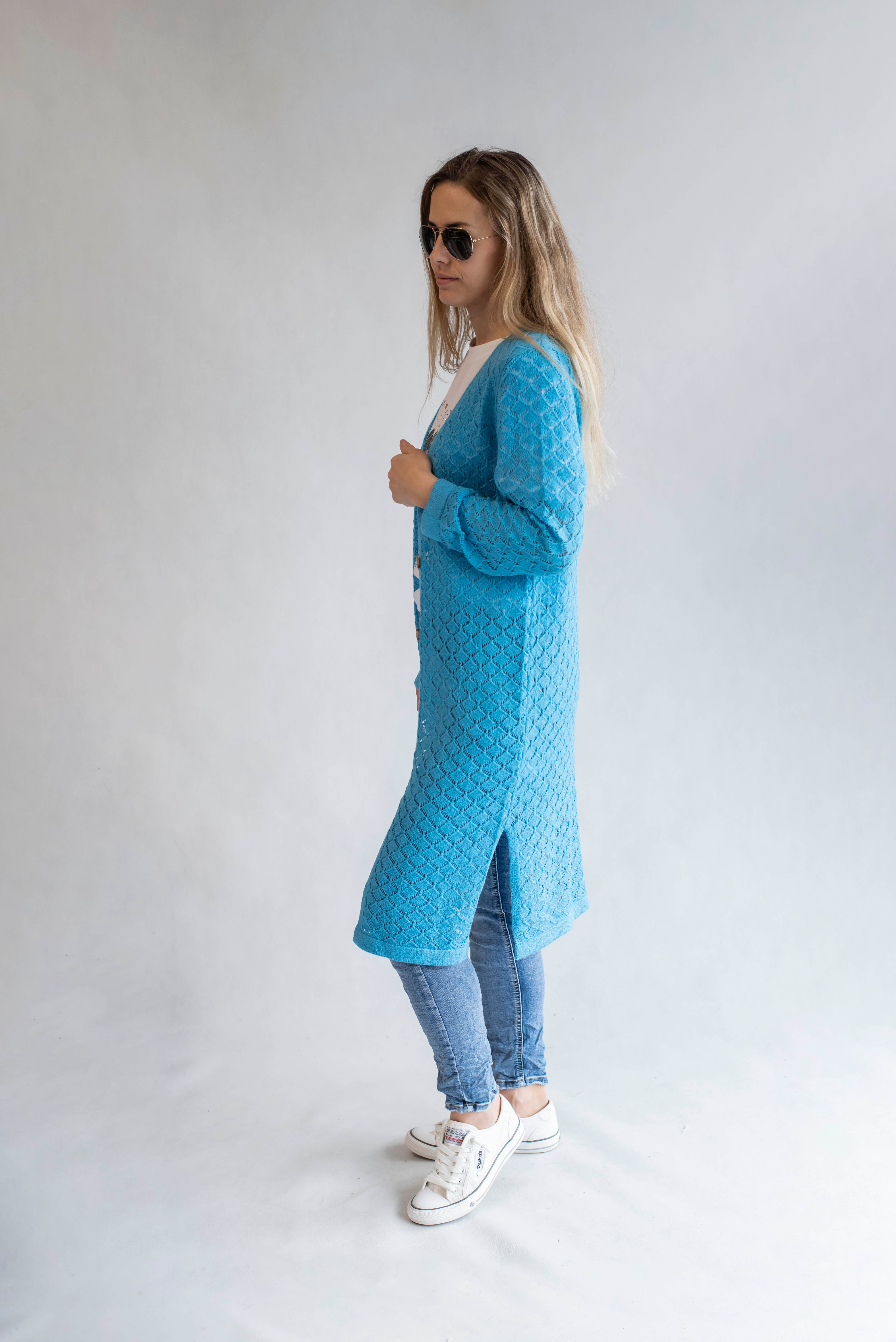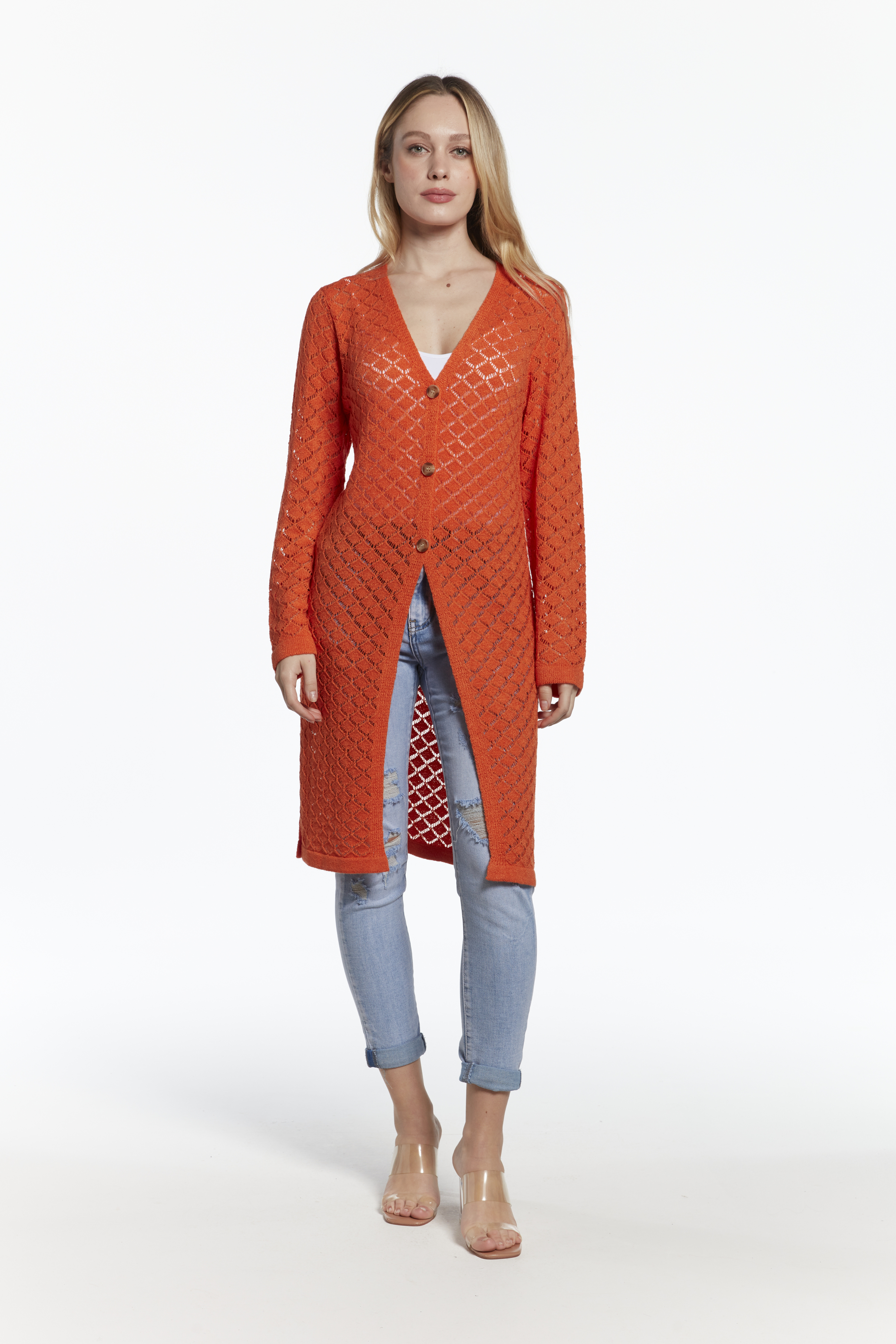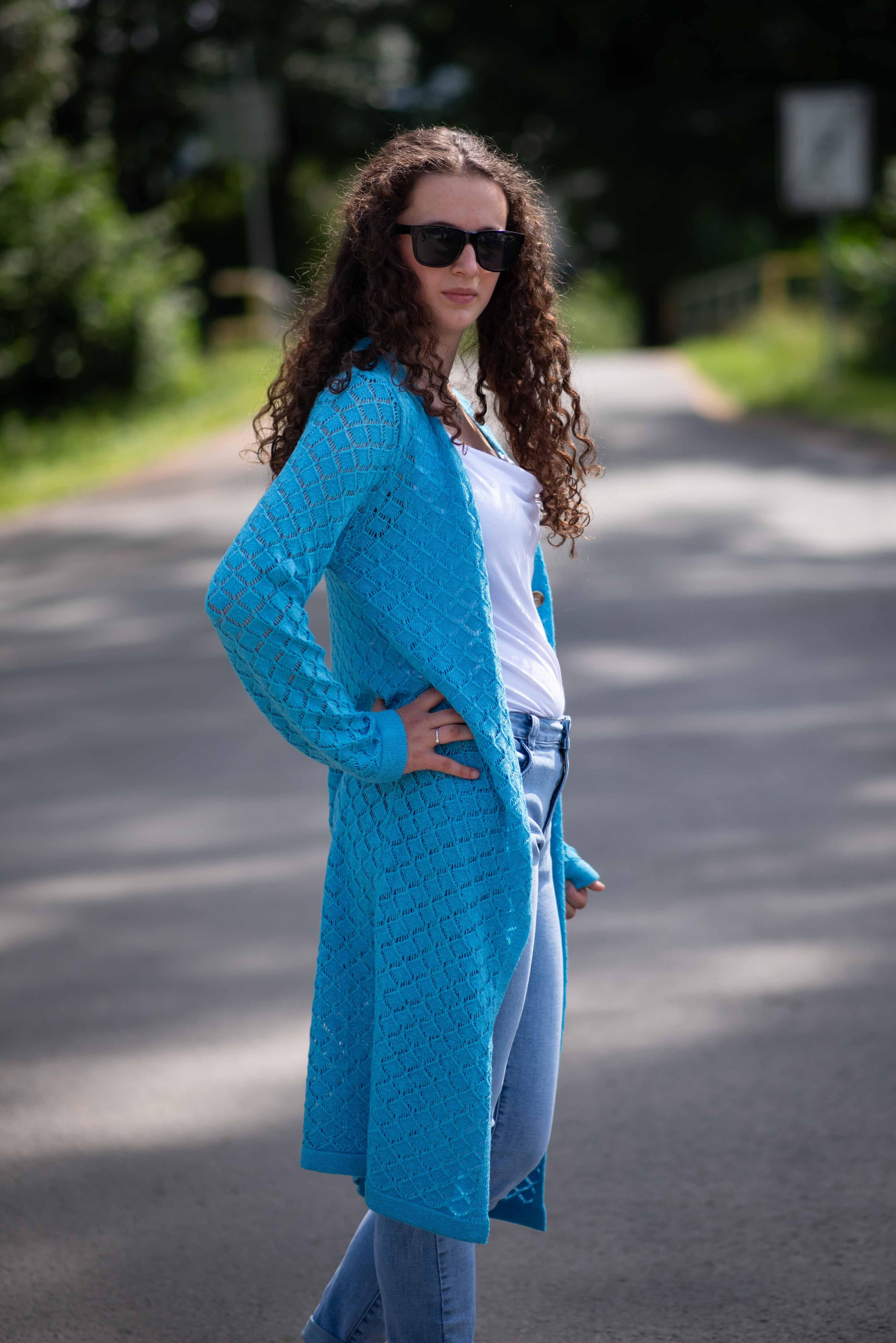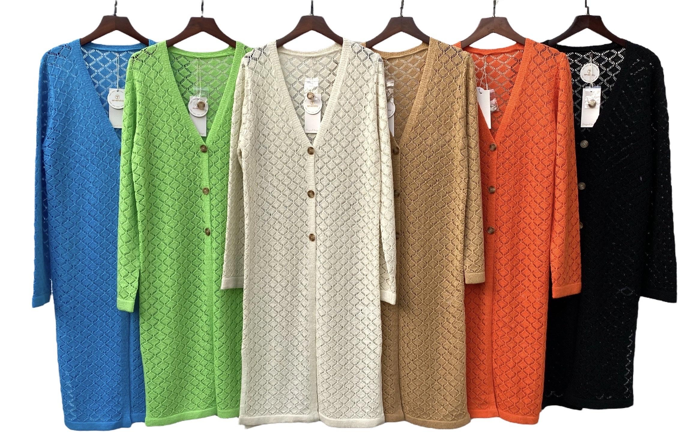 Delší kardigan s propínáním dlouhý rukáv, dovoz Itálie