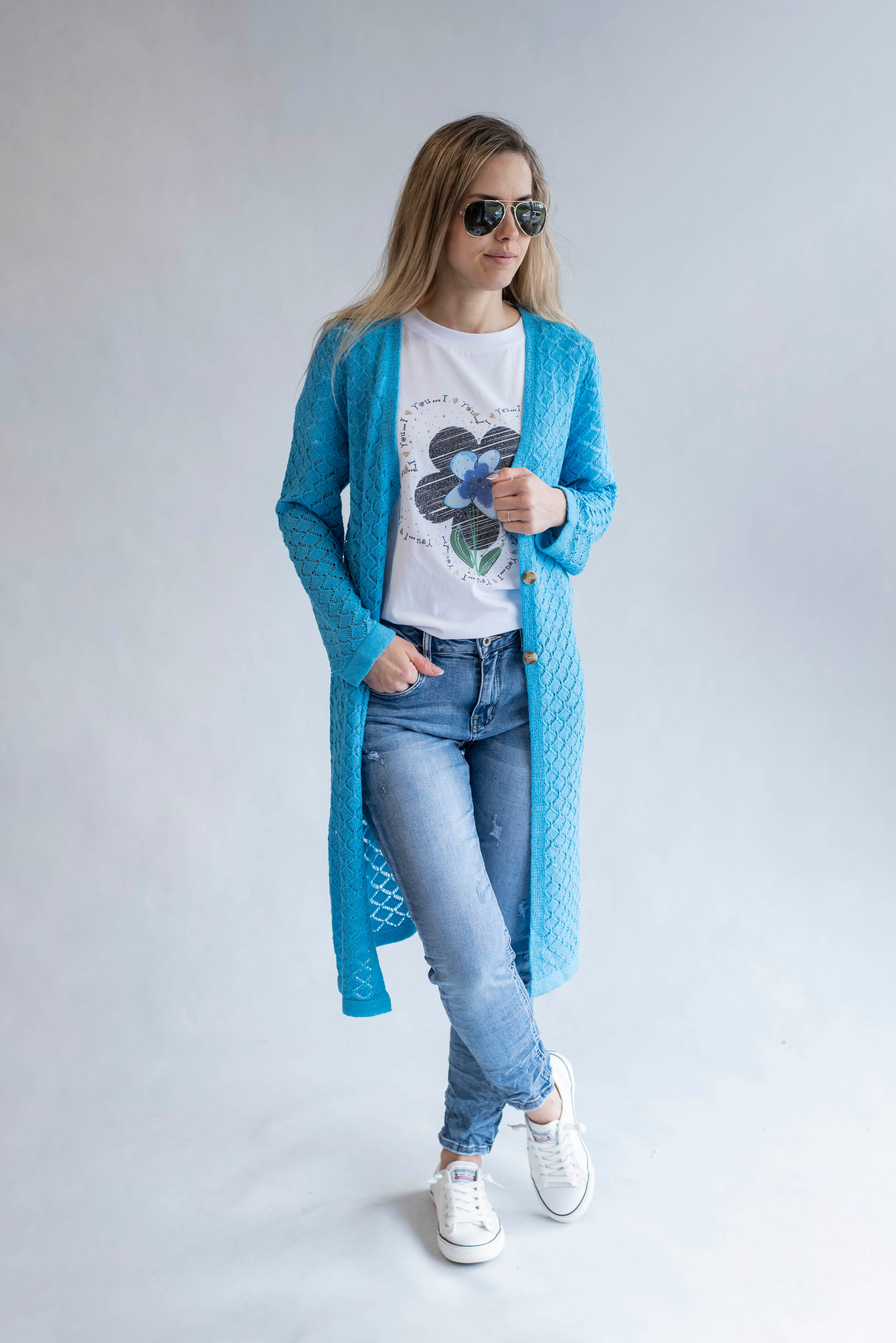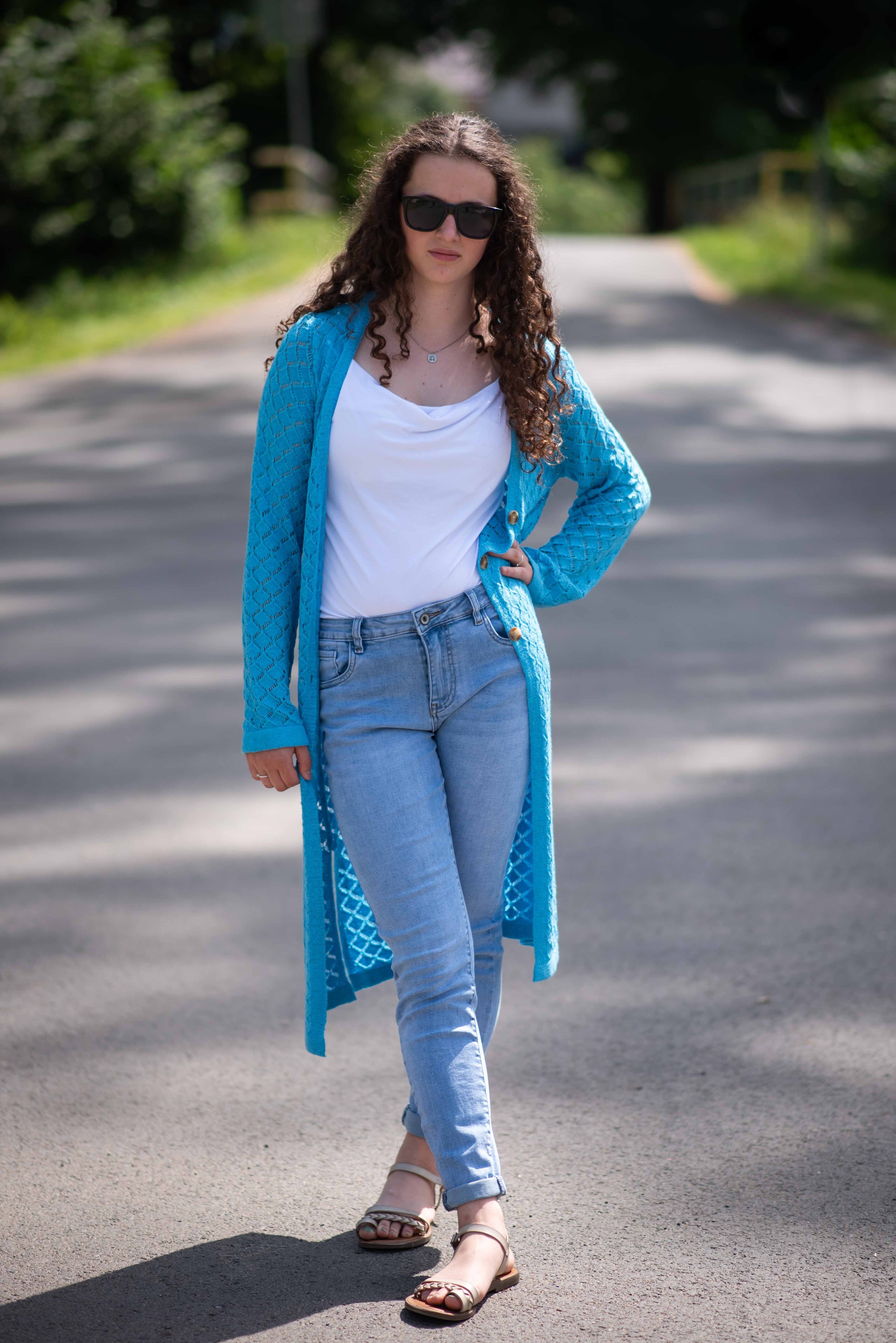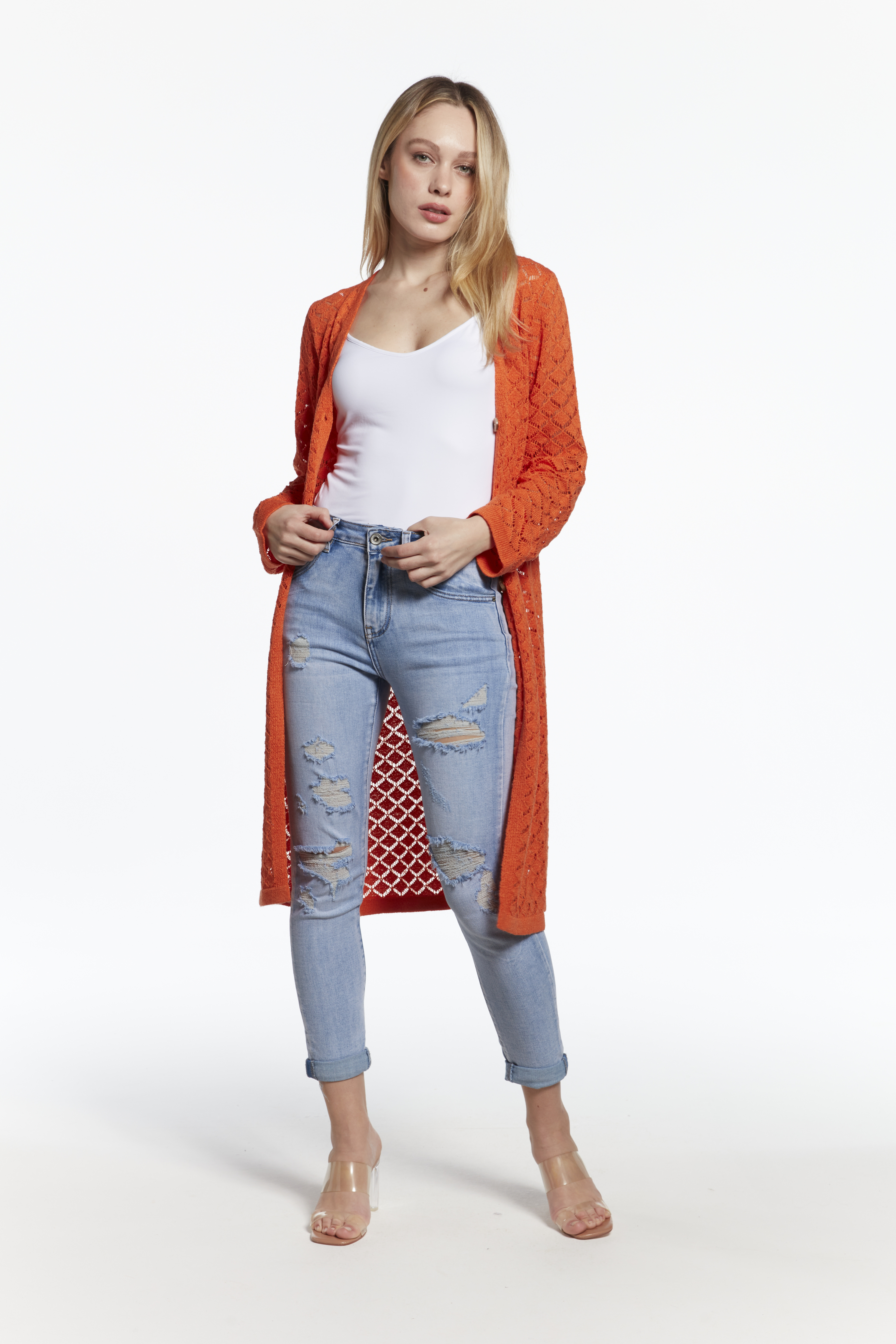 Delší kardigan s propínáním dlouhý rukáv, dovoz Itálie