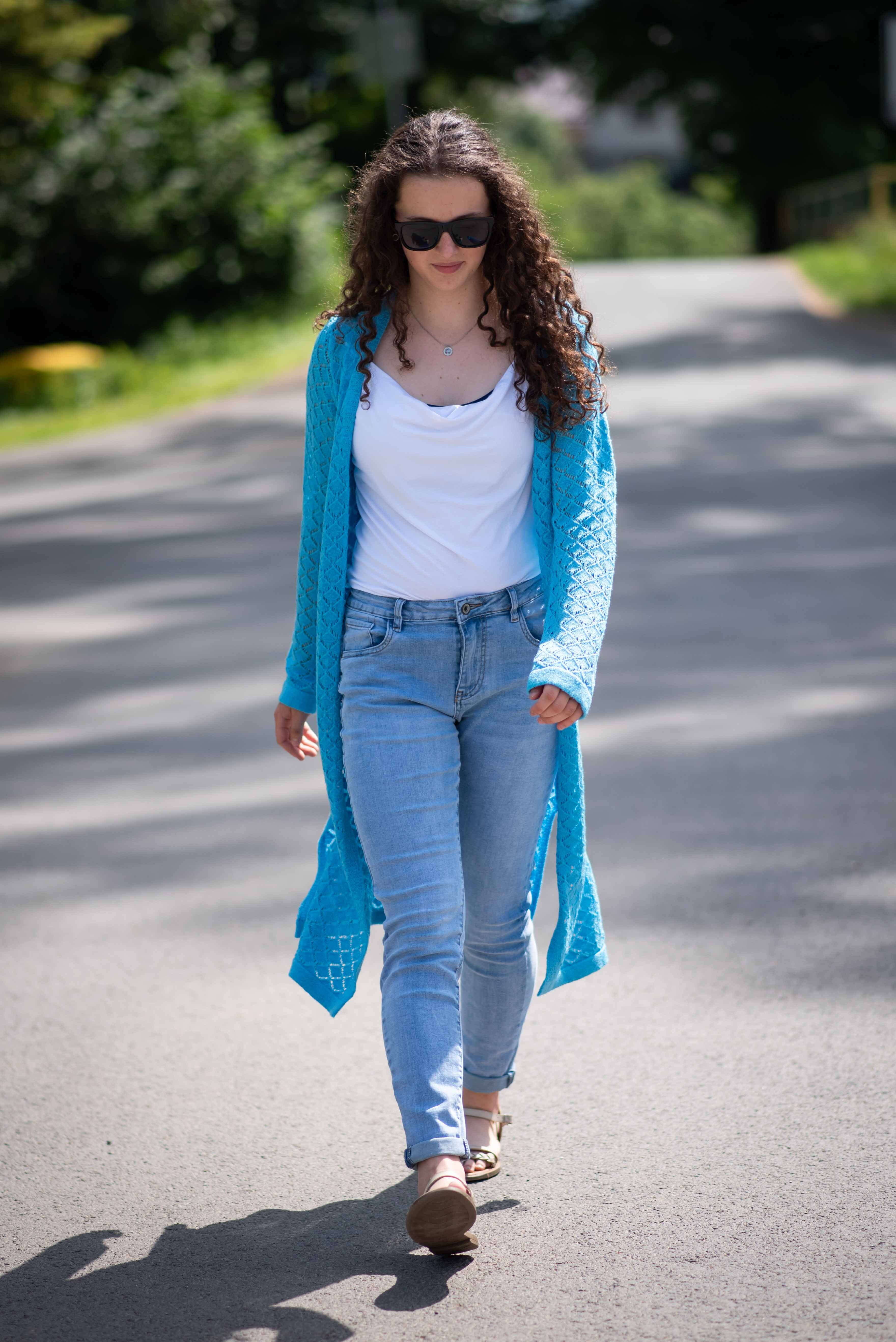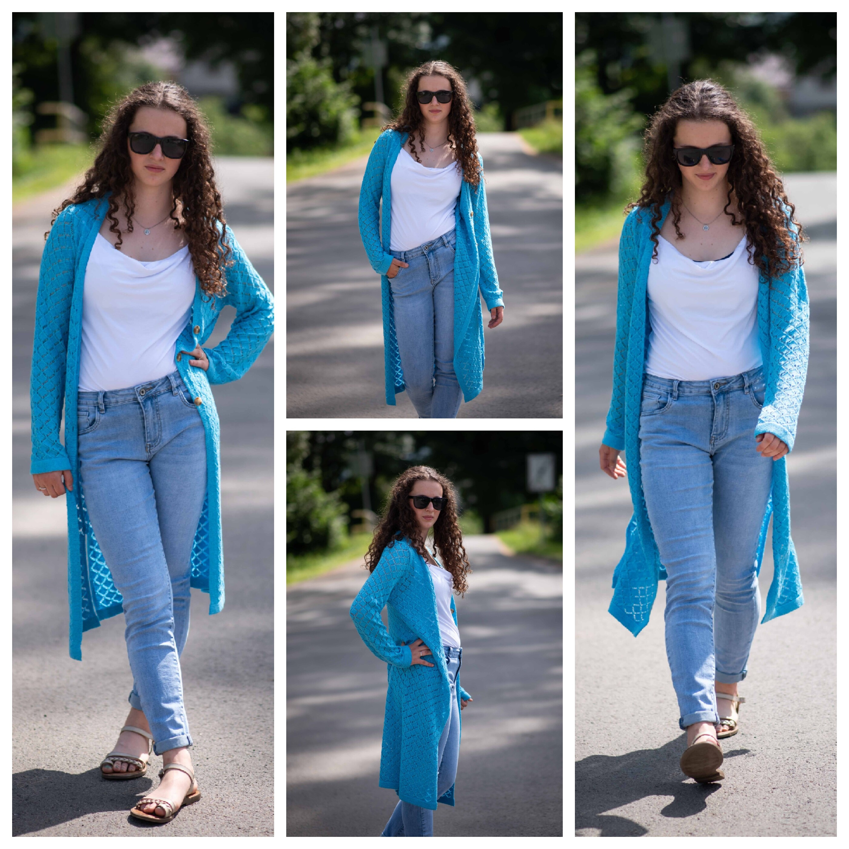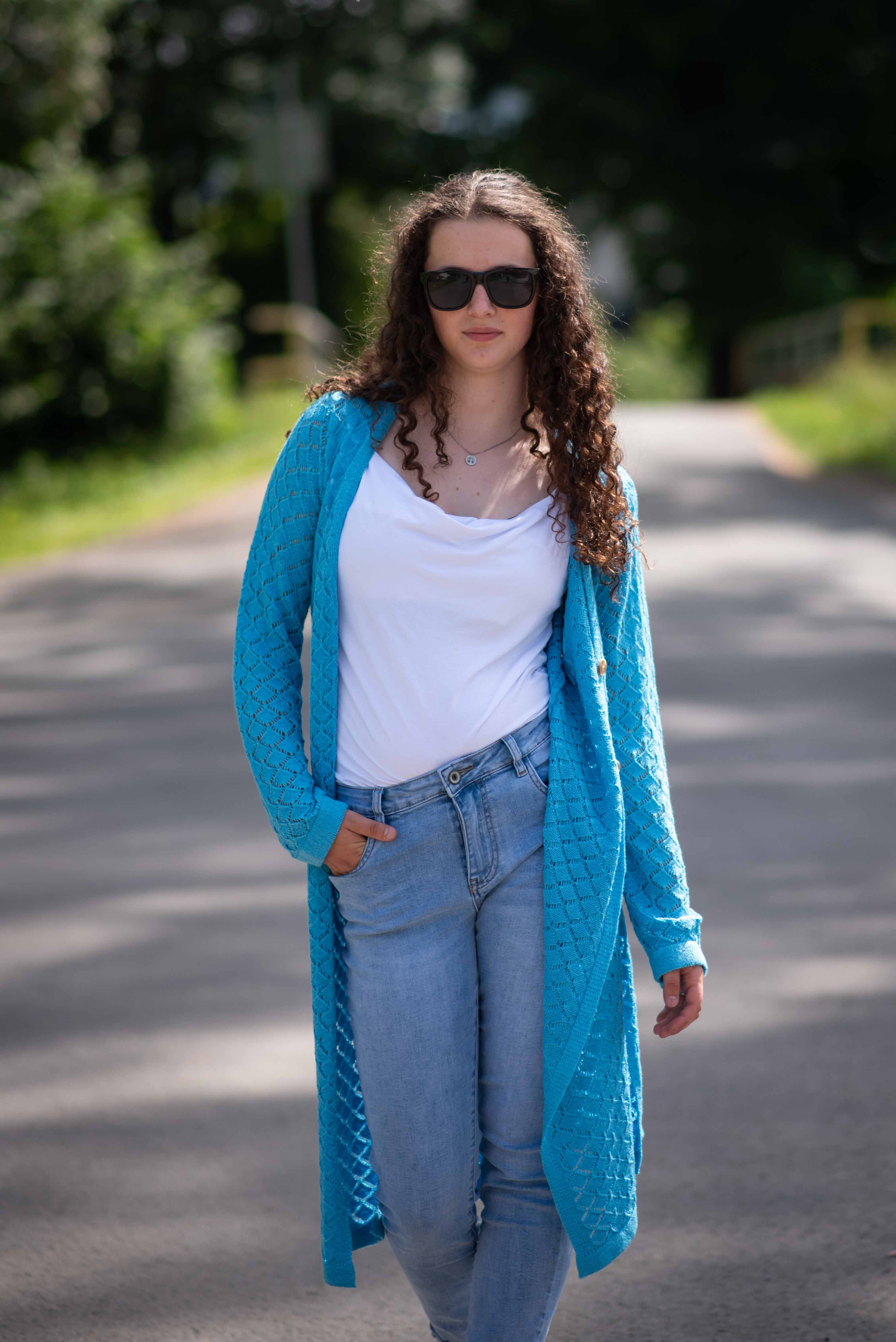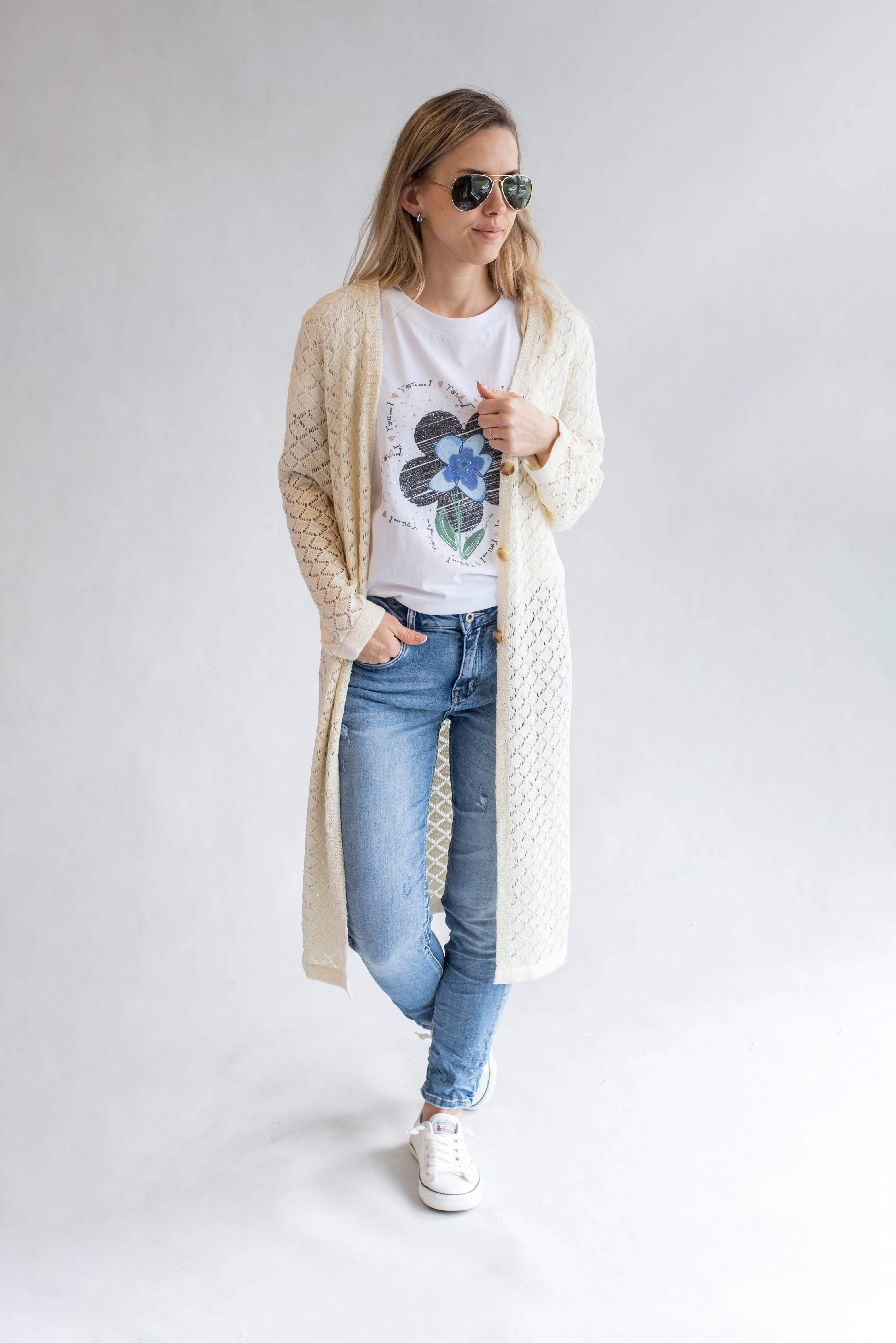 Delší kardigan s propínáním dlouhý rukáv, dovoz Itálie