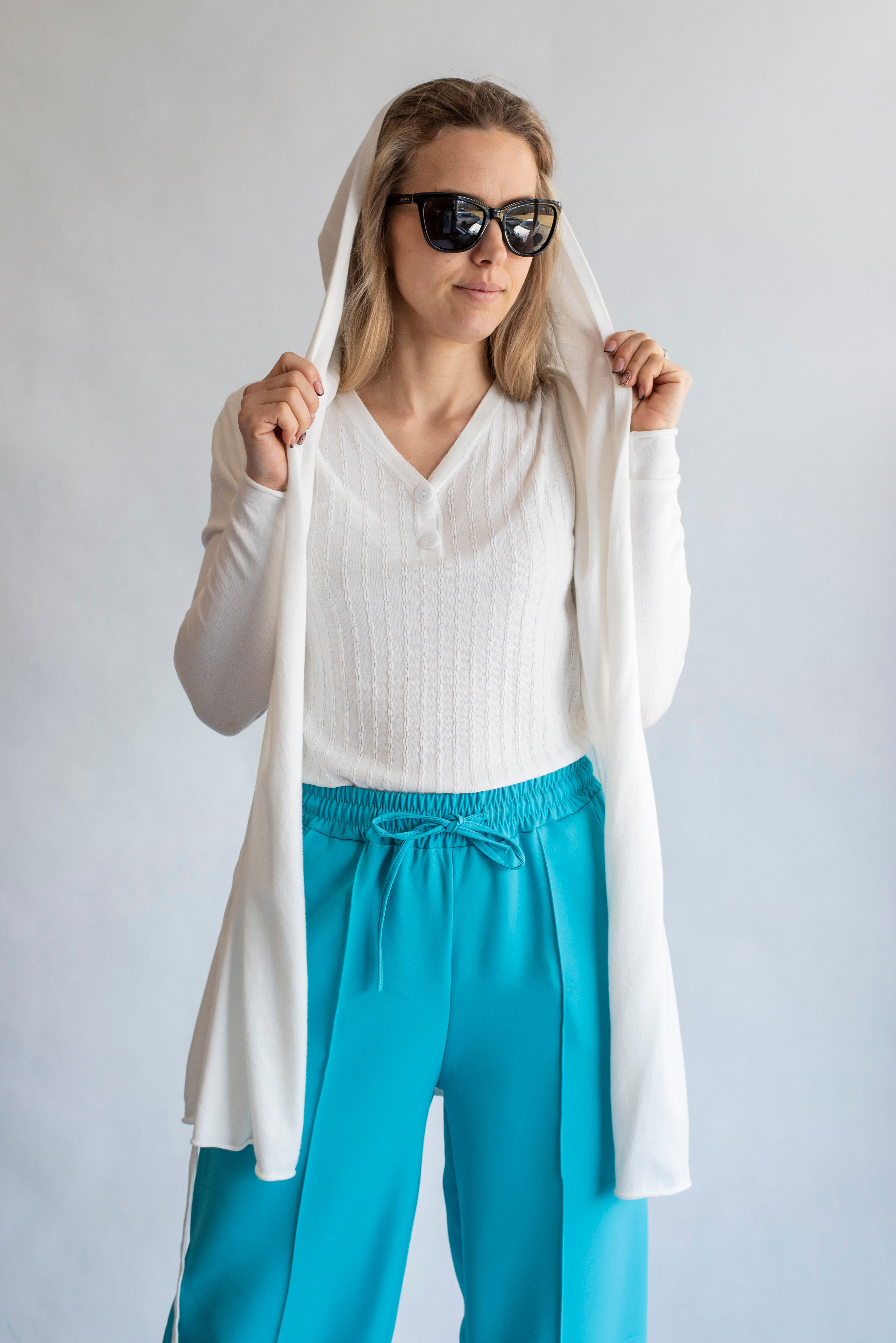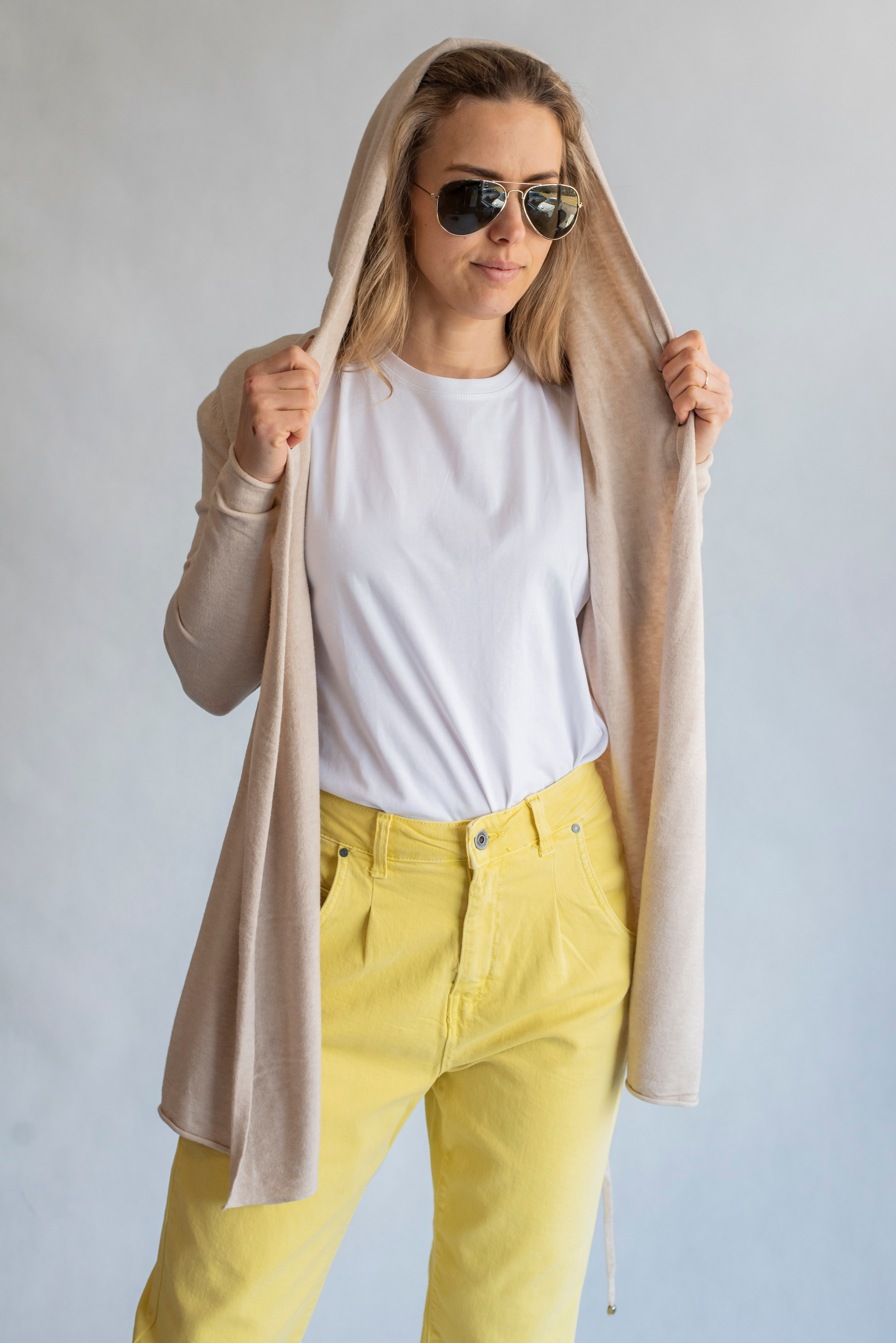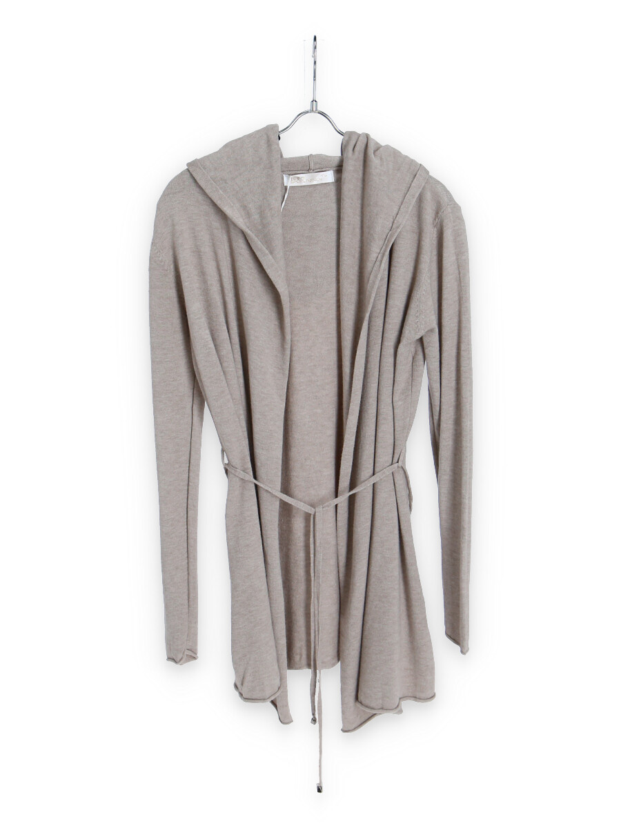 Kardigan úpletový dlouhý s kapucí, vázaní v pase, dovoz Francie