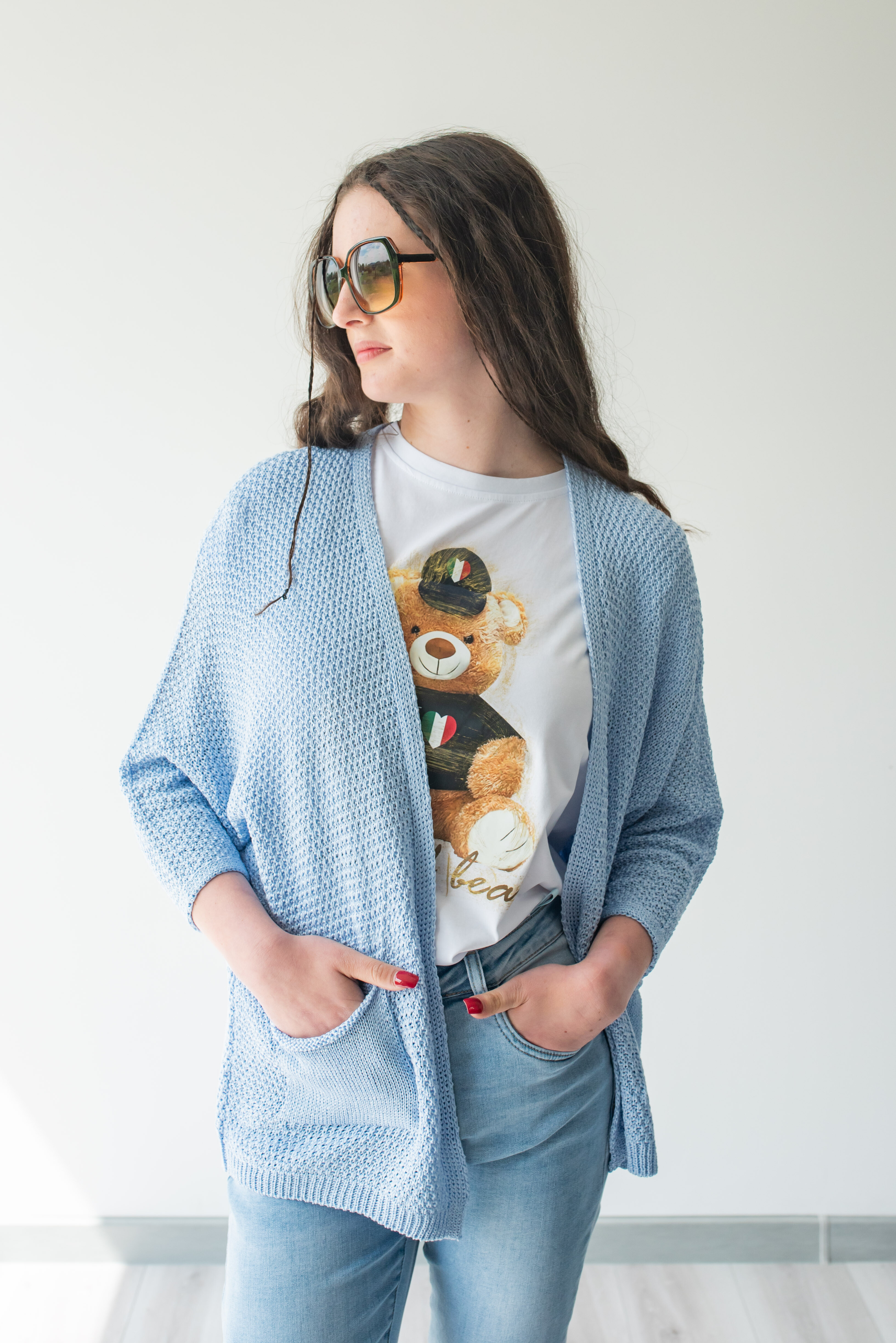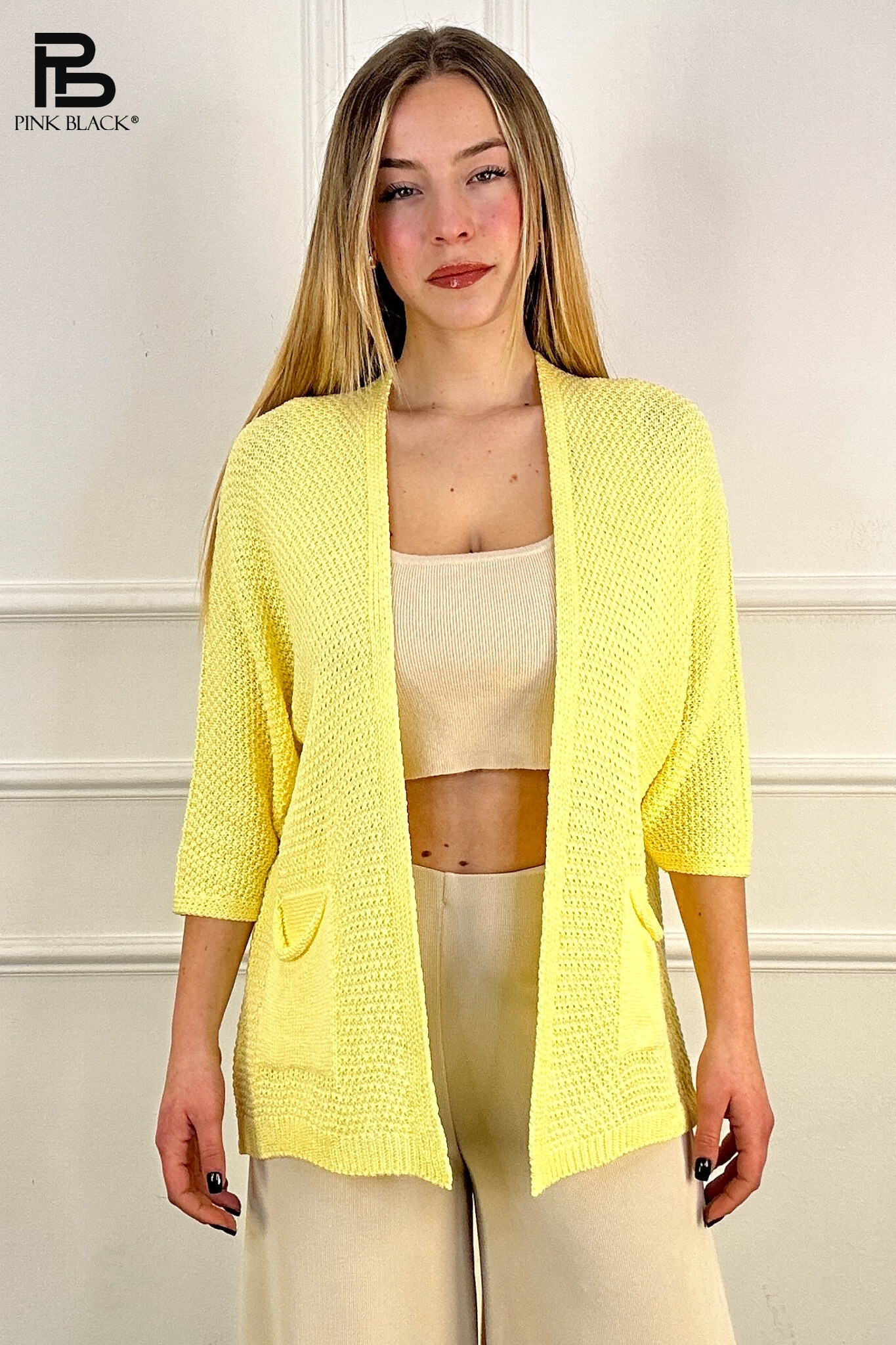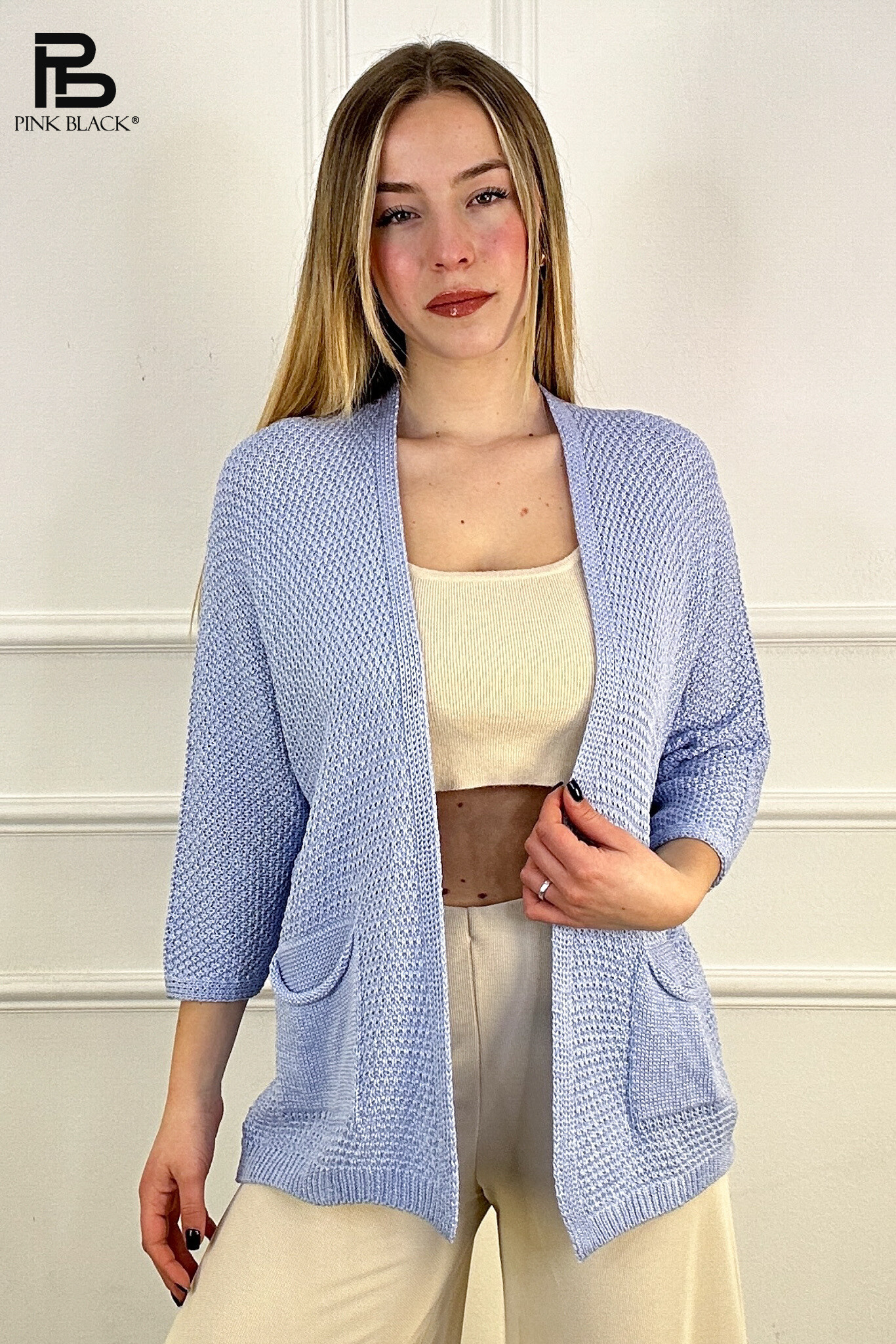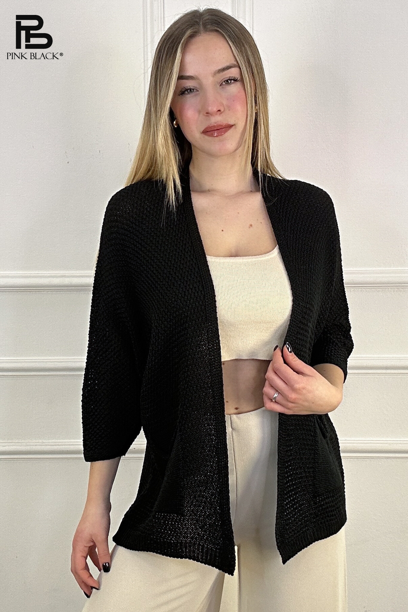 Módní úpletový kardigan s kapsami