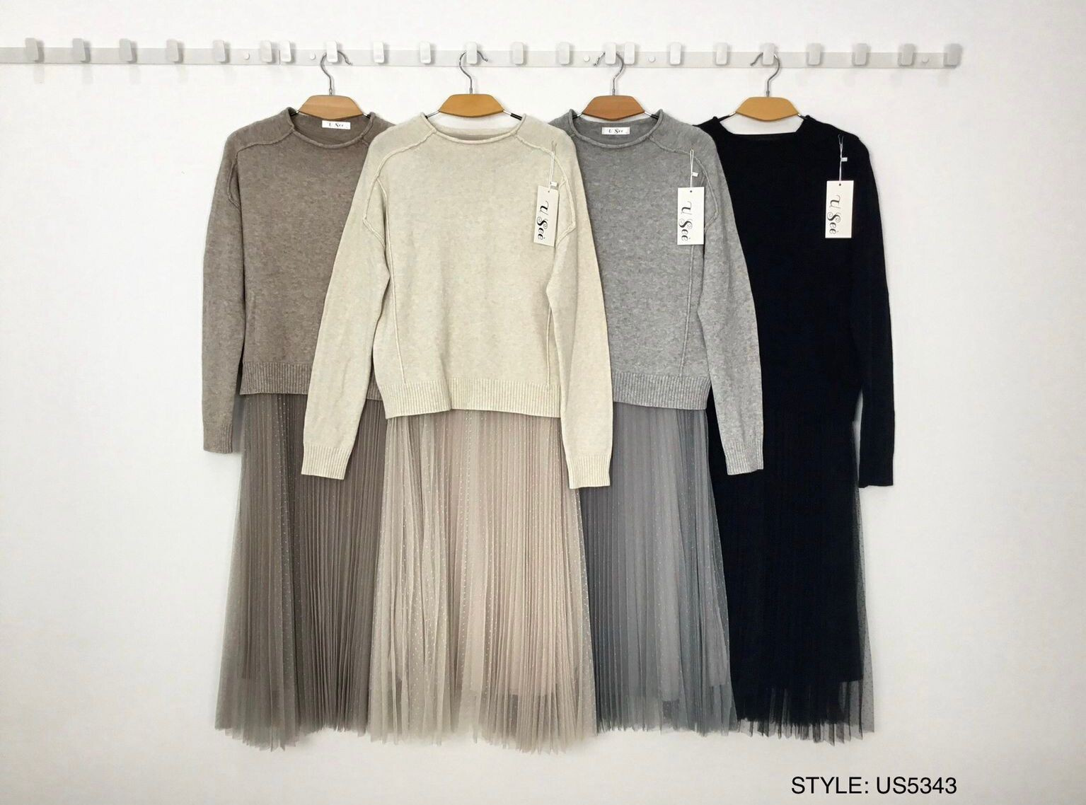Kombinované plisé šaty se stojáčkem z úpletu.