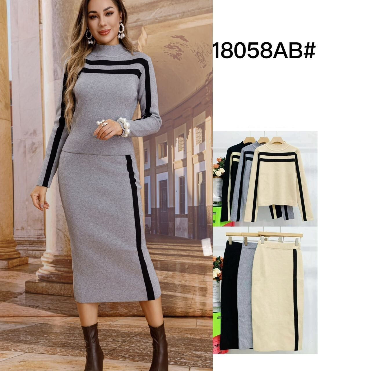 Komplet úplet svetřík se stojáčkem a sukně v midi délce s rozparkem na zadní straně. Dovoz Itálie.
