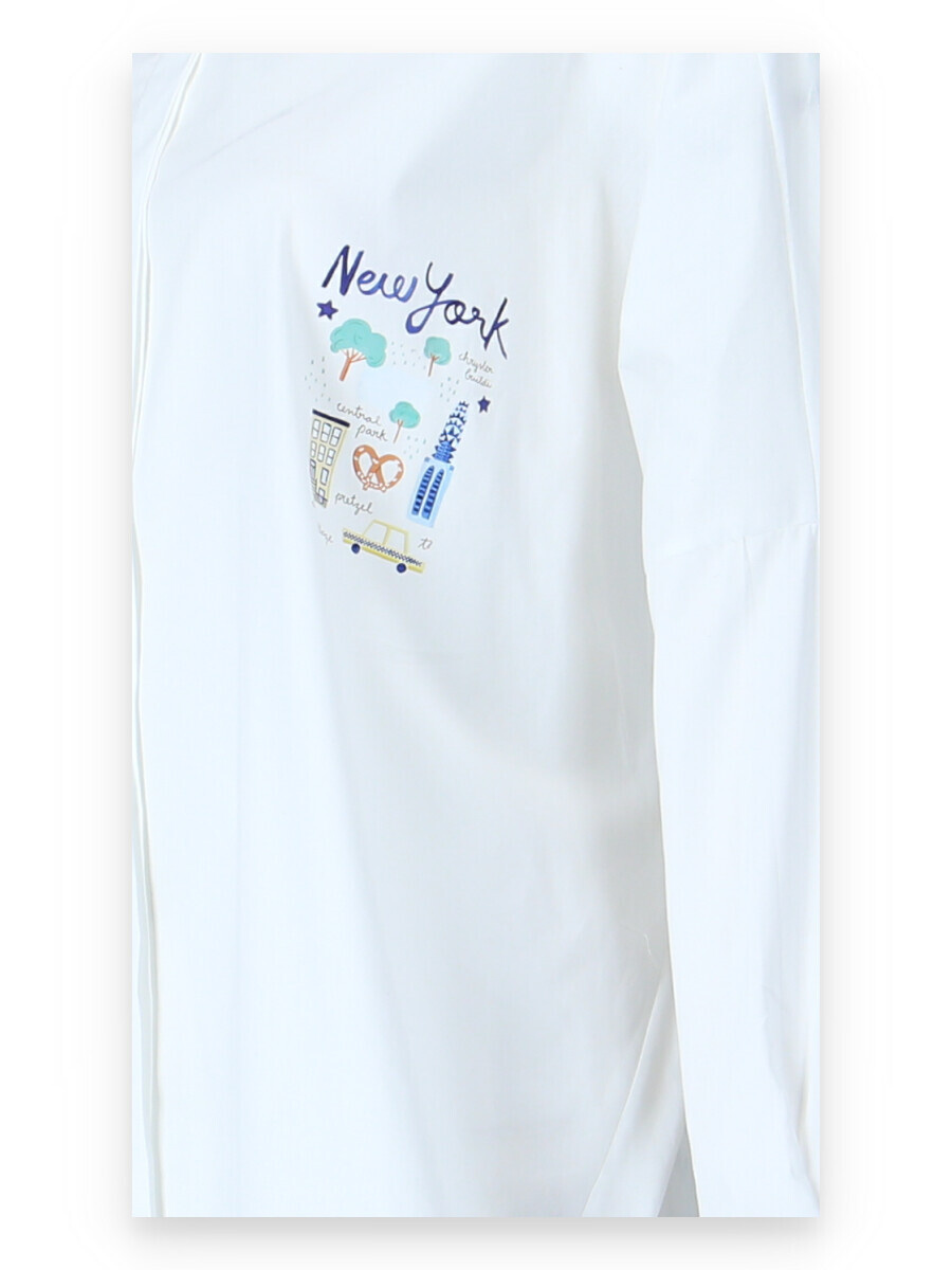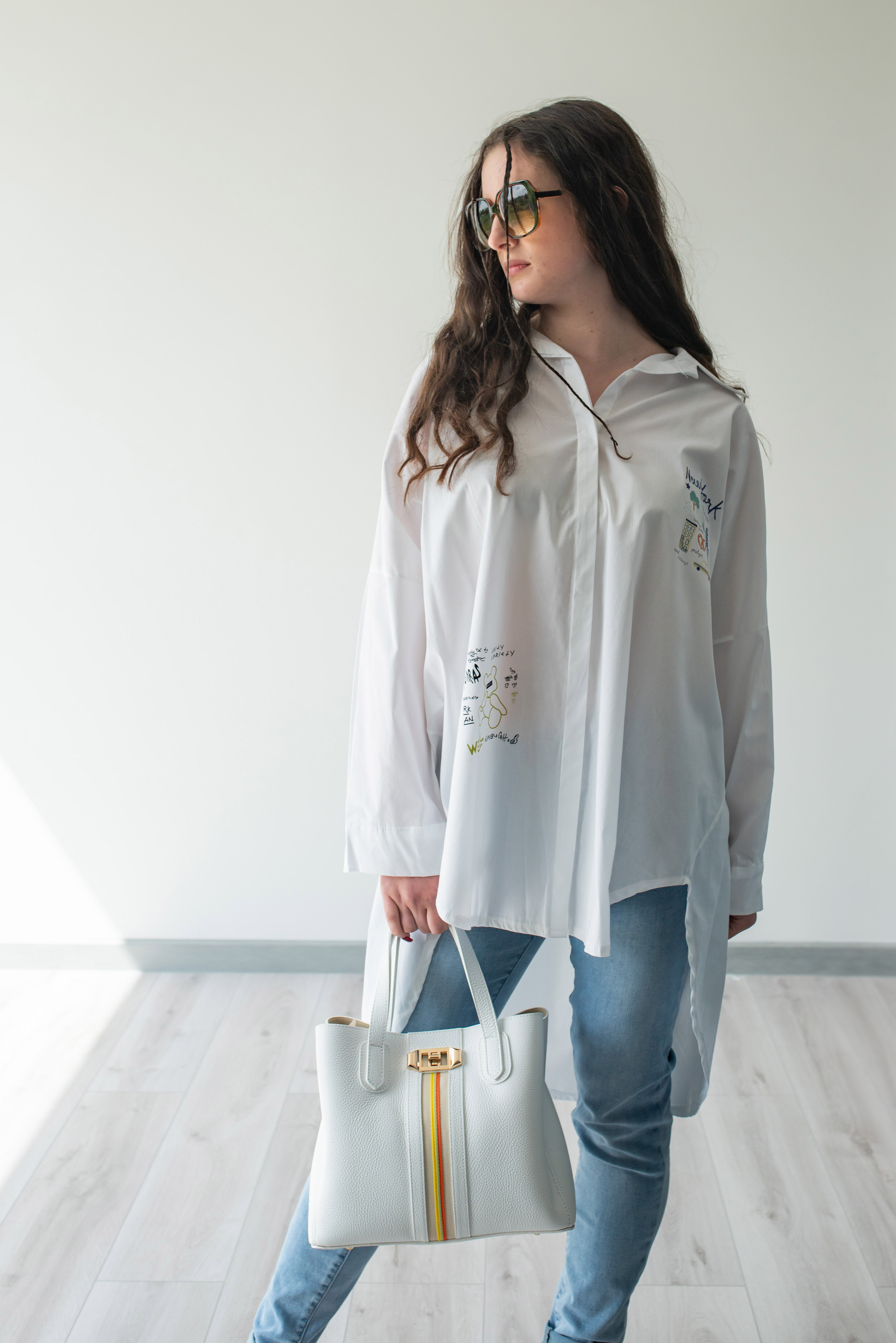 Dámská stylová košile oversize střihu s aplikací. Košile má 3/4 rukáv, je propínací a má prodlouženou zadní délku.