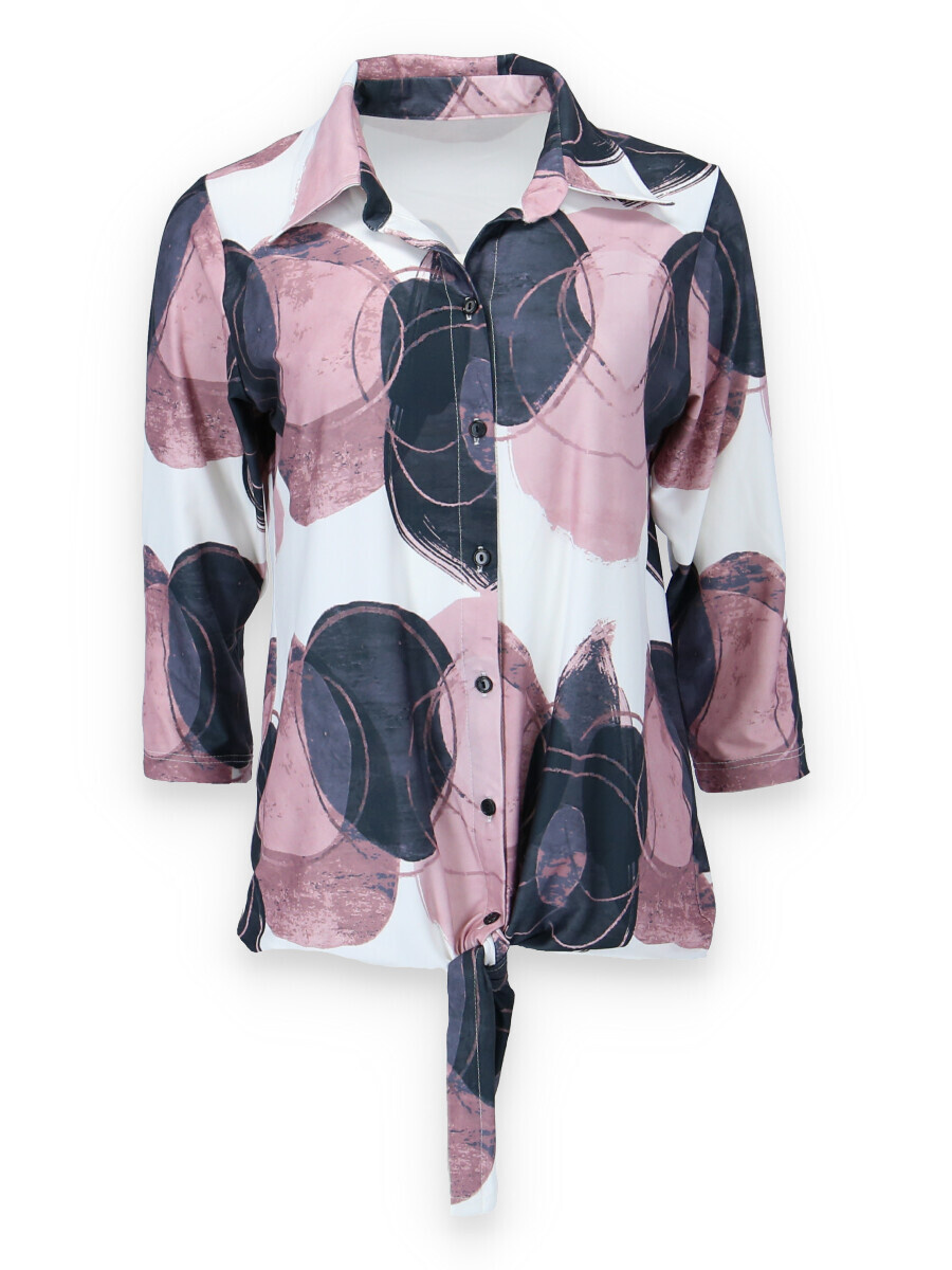 Módní dámská propínací košile s 3/4 rukávem a vázáním v pase