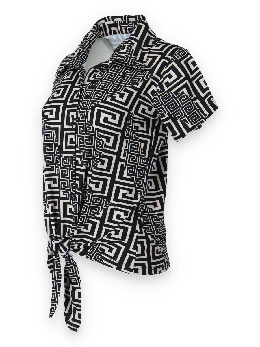 Módní dámská propínací košile s krátkým rukávem a vázáním v pase