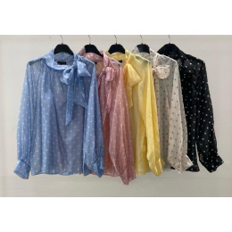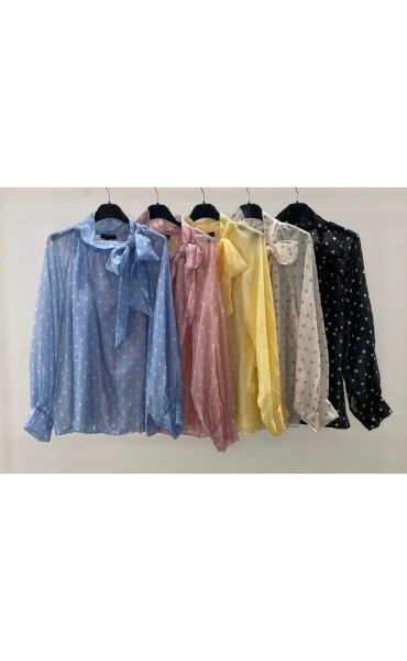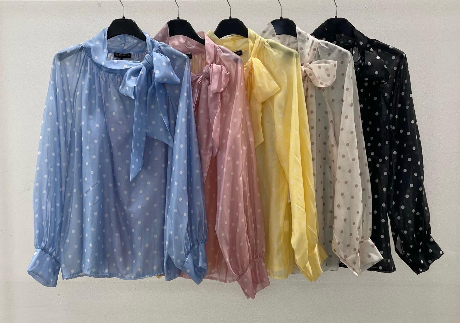 Elegantní košile s puntíkem a vázačkou u krku. Košile je z velmi jemného odlehčeného materiálu.
