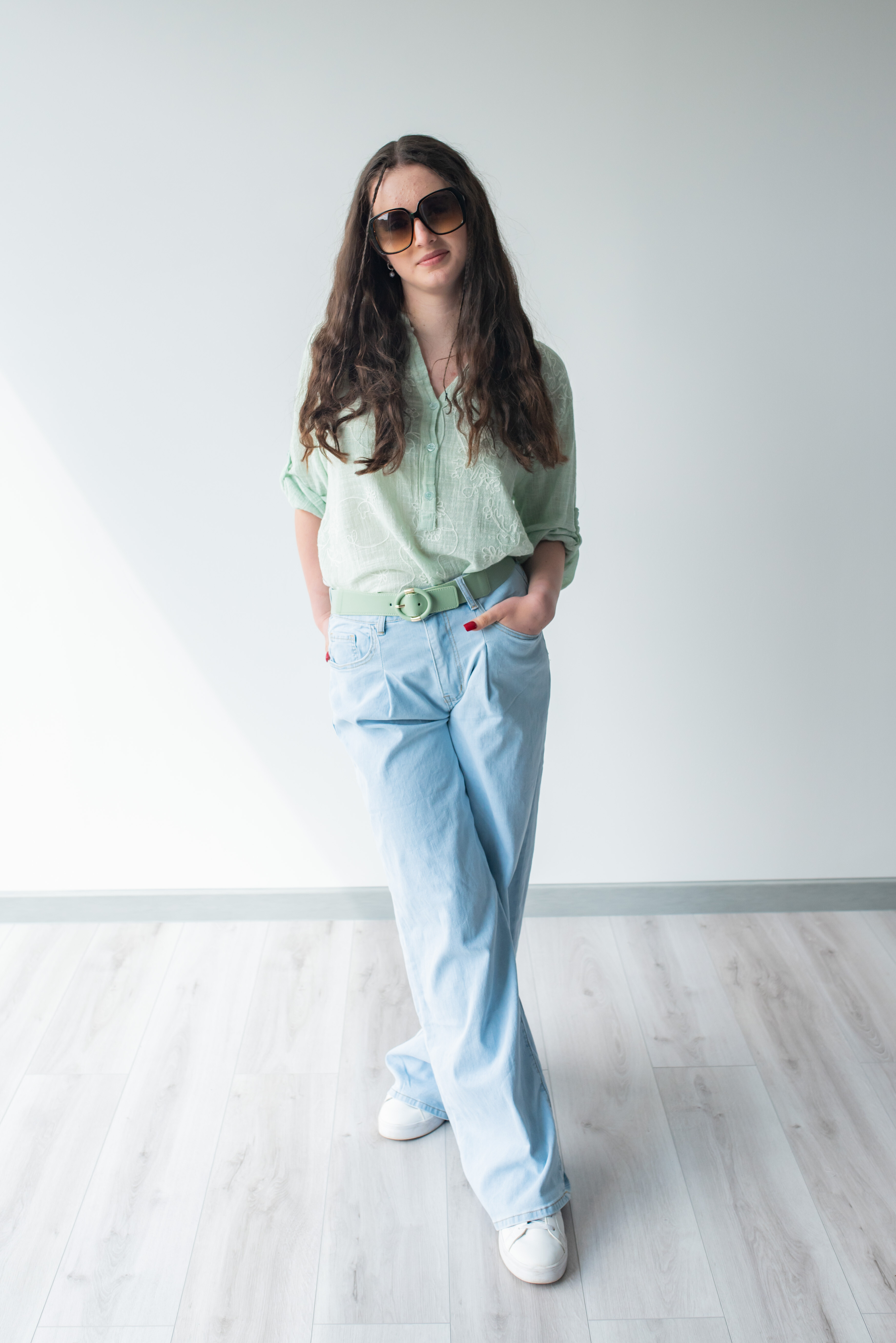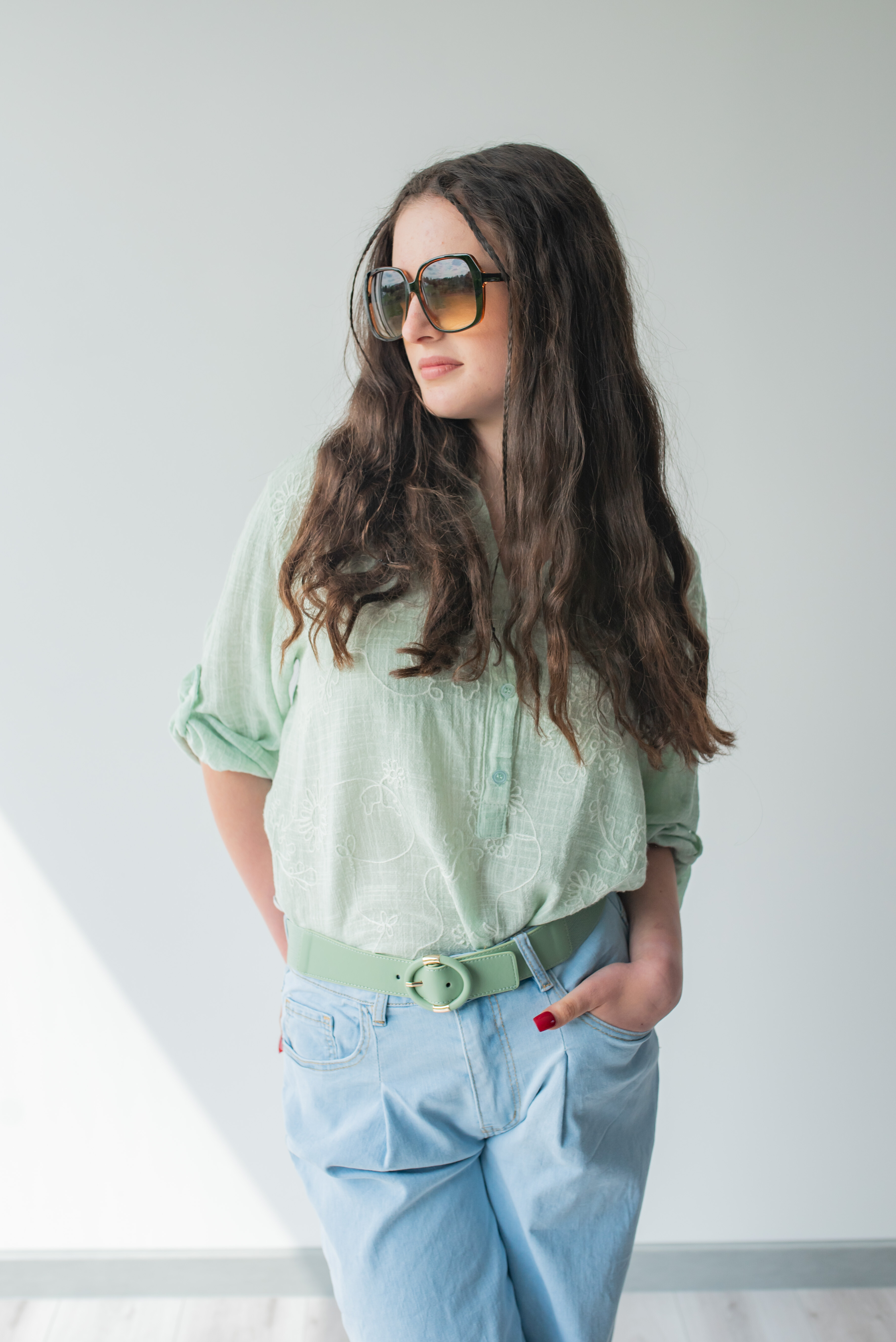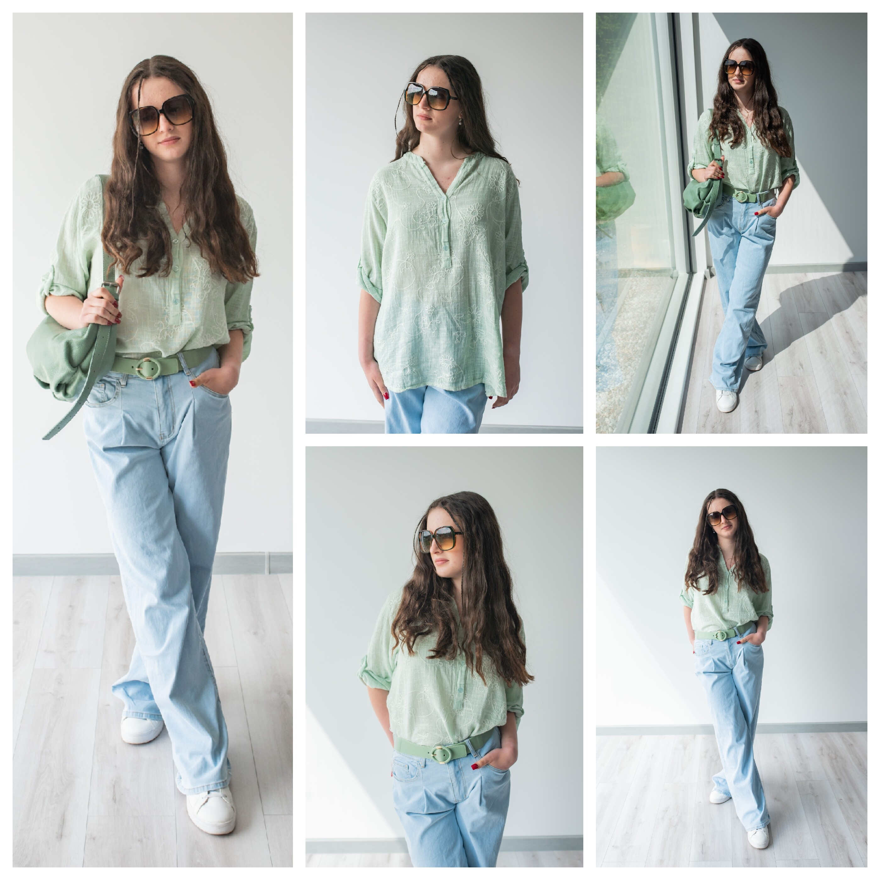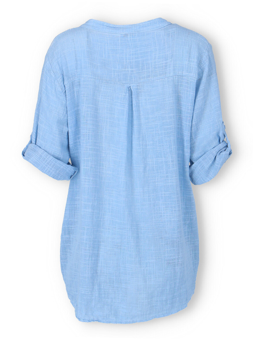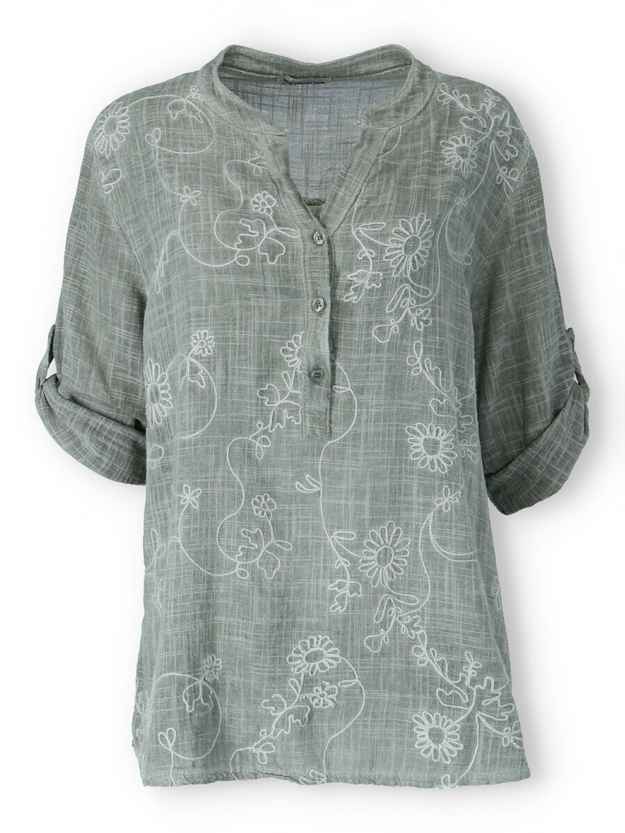 Dámská vyšívaná košile s 3/4 rukávem s regulací. Košile má kulatý výstřih na knoflíčky a prodlouženou zadní délku. Vyrobeno v Itálii.