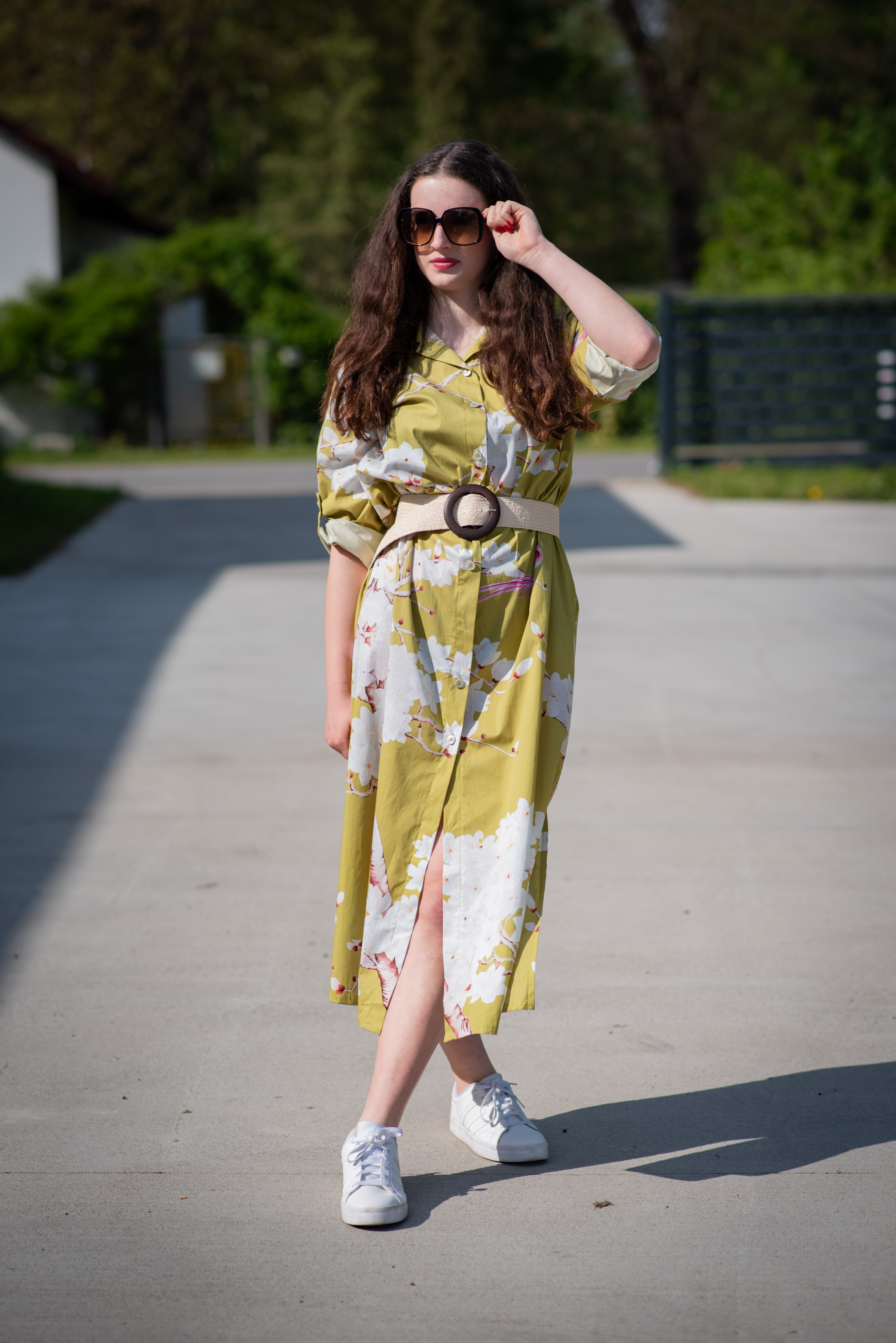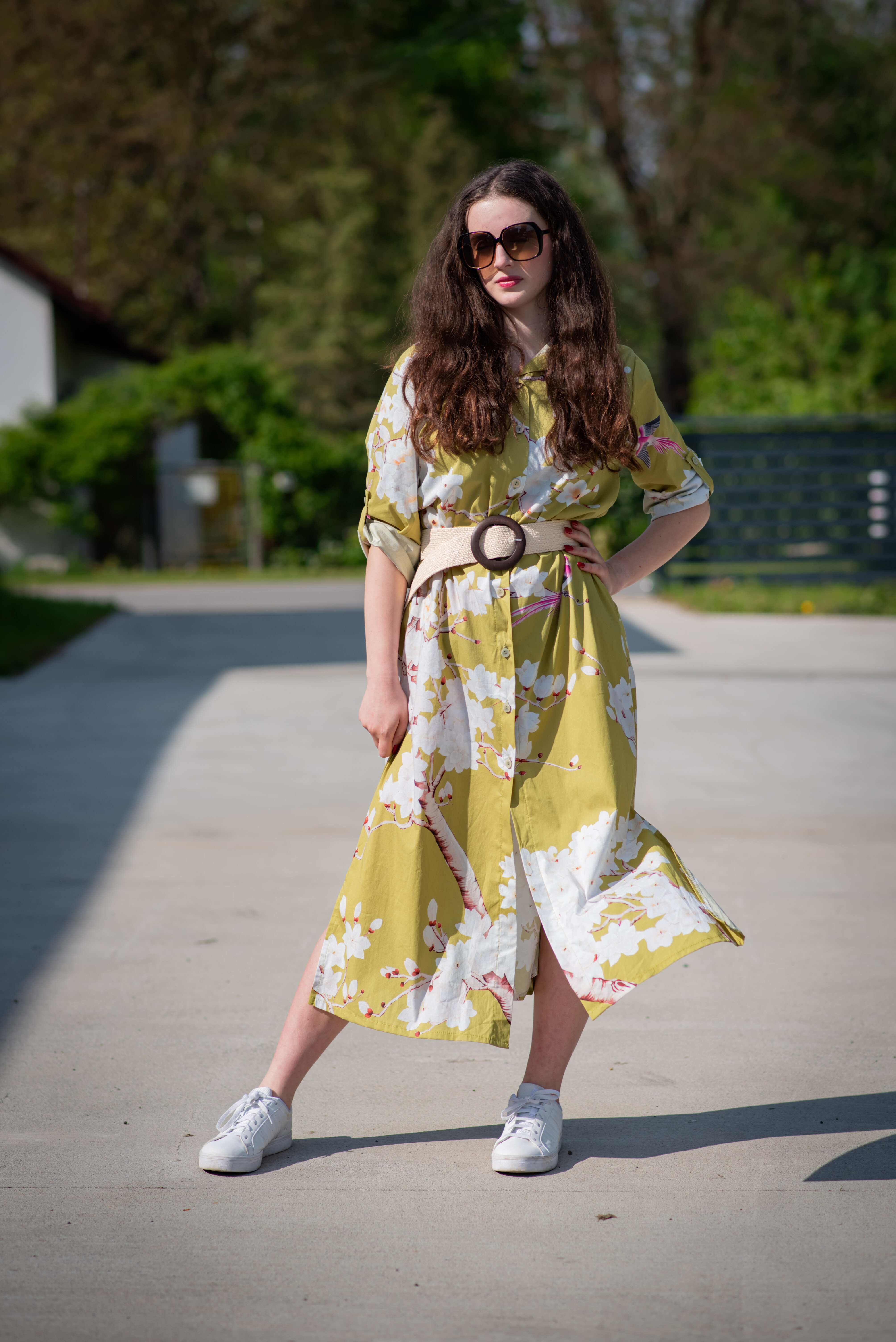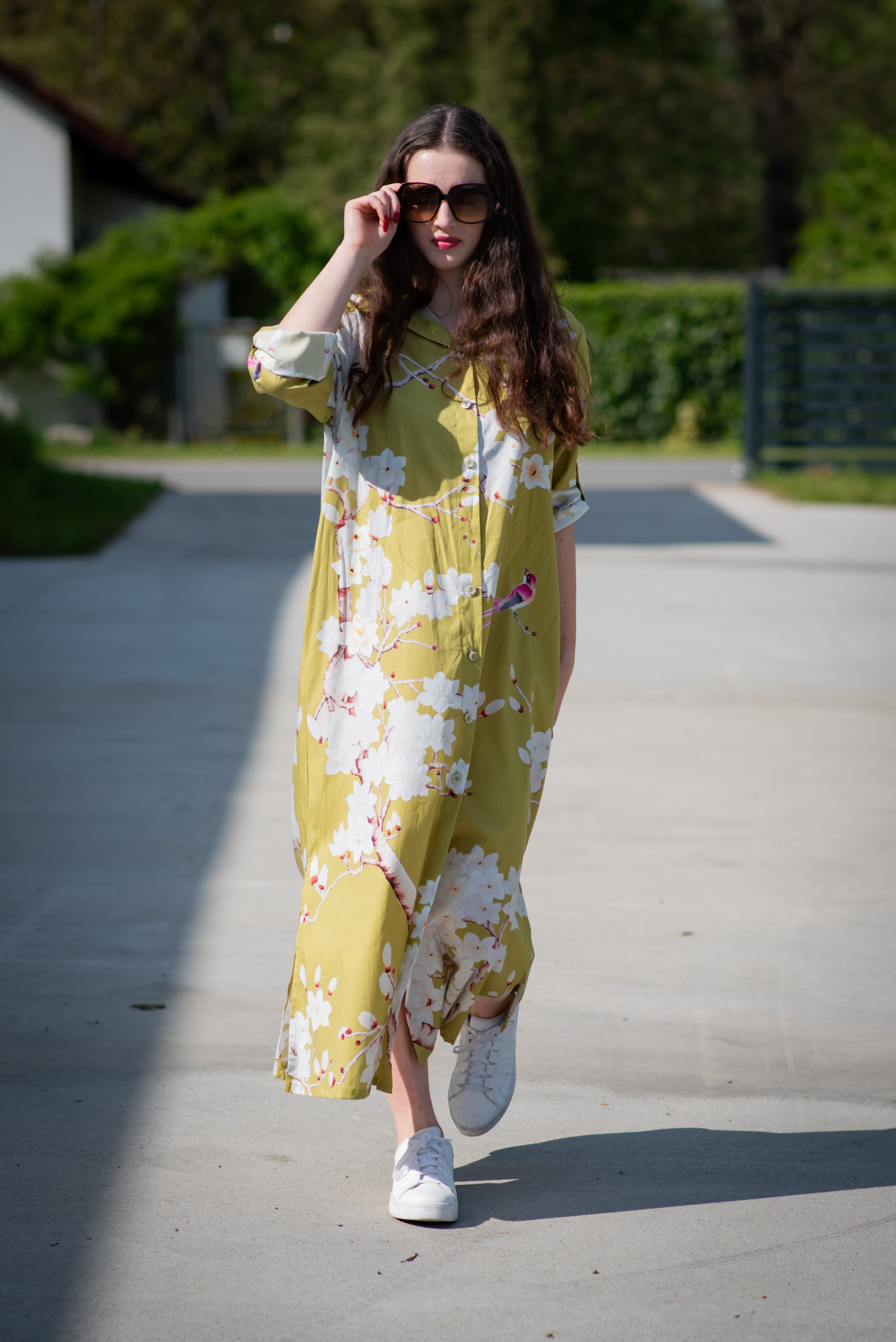 Dlouhé košilové propínací šaty s potiskem. Šaty mají regulaci na rukávu a všité kapsy po stranách. Dovoz Itálie