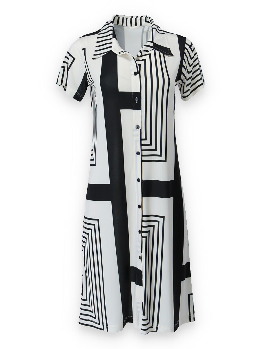 Módní letní košilová dámské šaty s krátkým rukávem