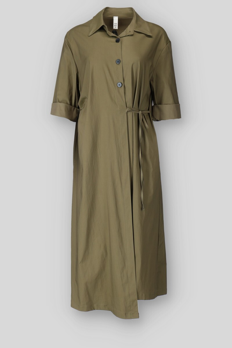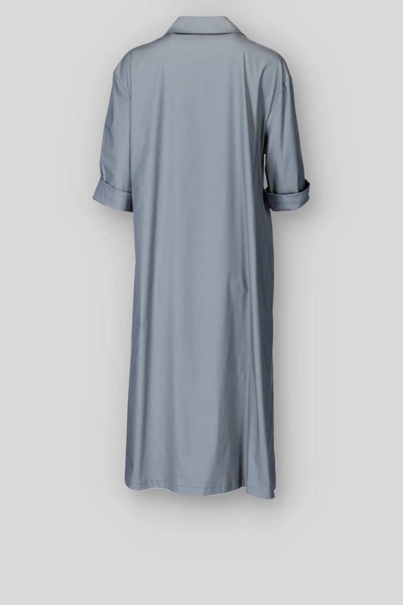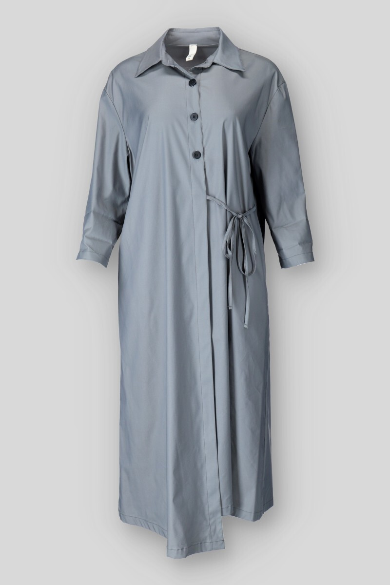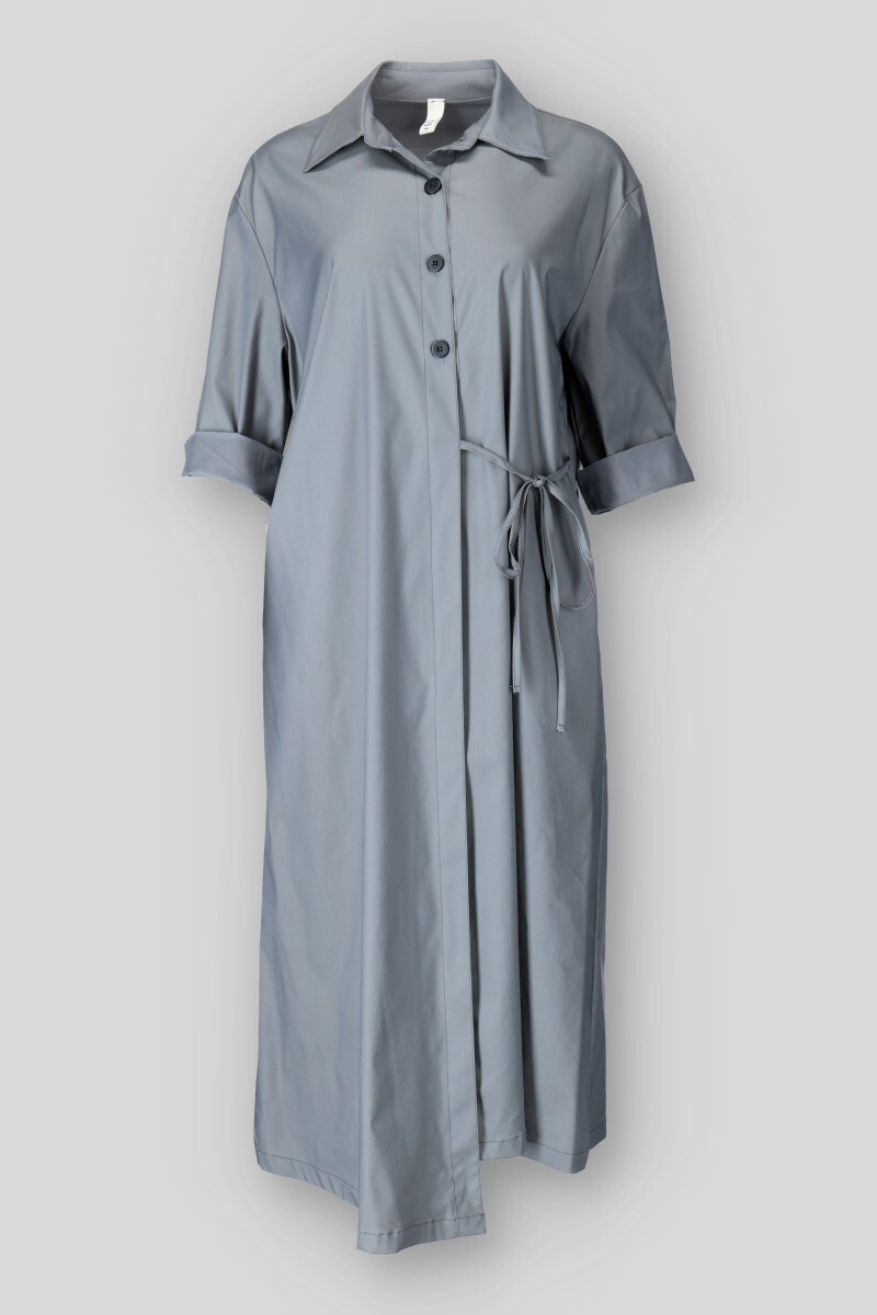 Dámské dlouhé košilové šaty s 3/4 rukávem. Šaty mají v pase regulaci na šňůrku, po stranách mají všité kapsy. Vyrobeno v Itálii.