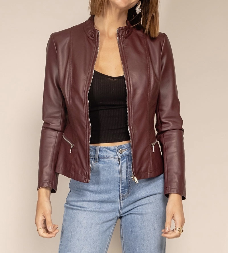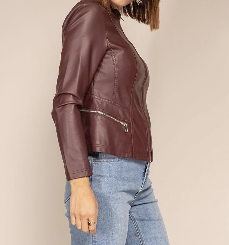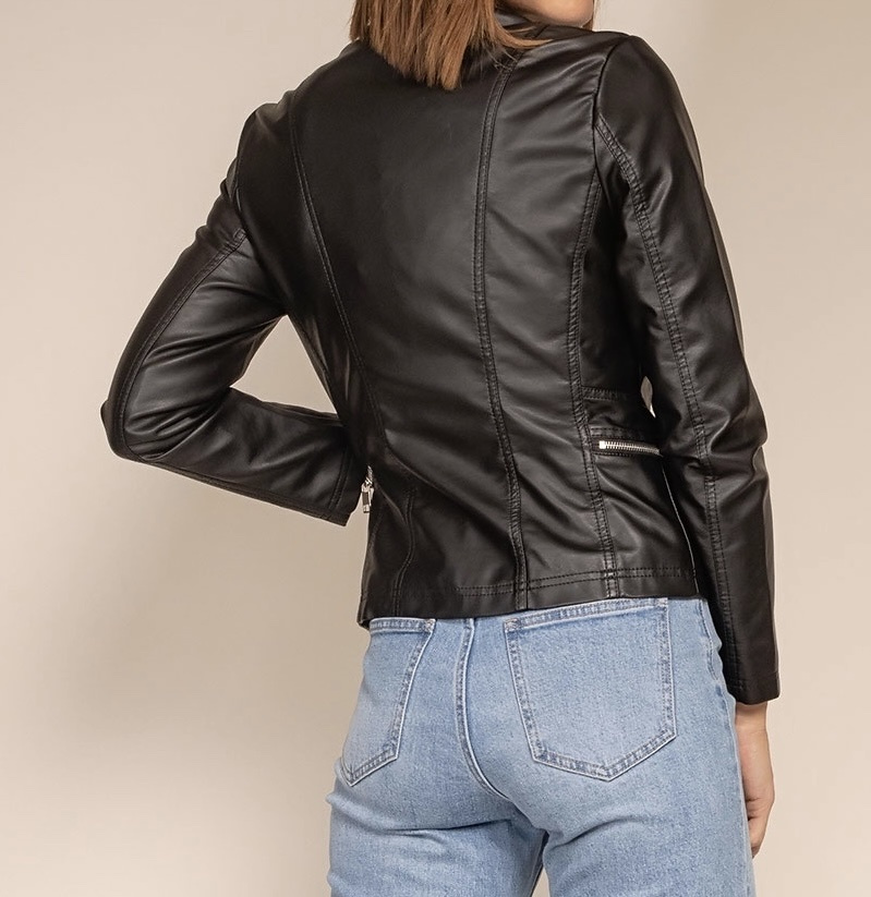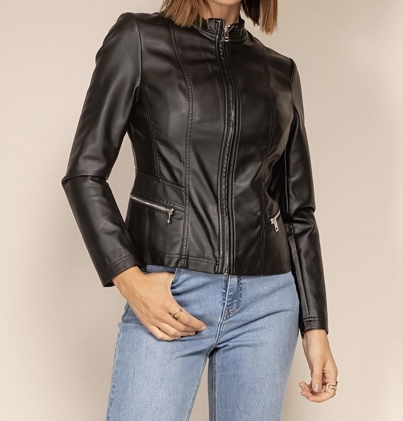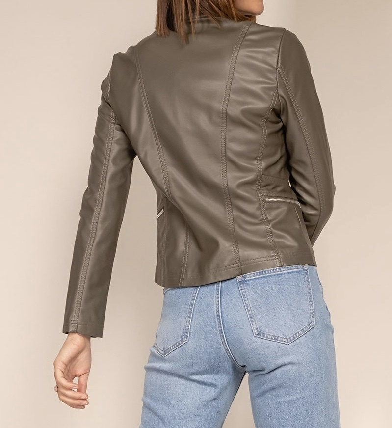 Módní koženková bunda se stojáčkem Lady velikost (nadměr), tento typ nesmí chybět v žádném šatníku slečny či dámy,