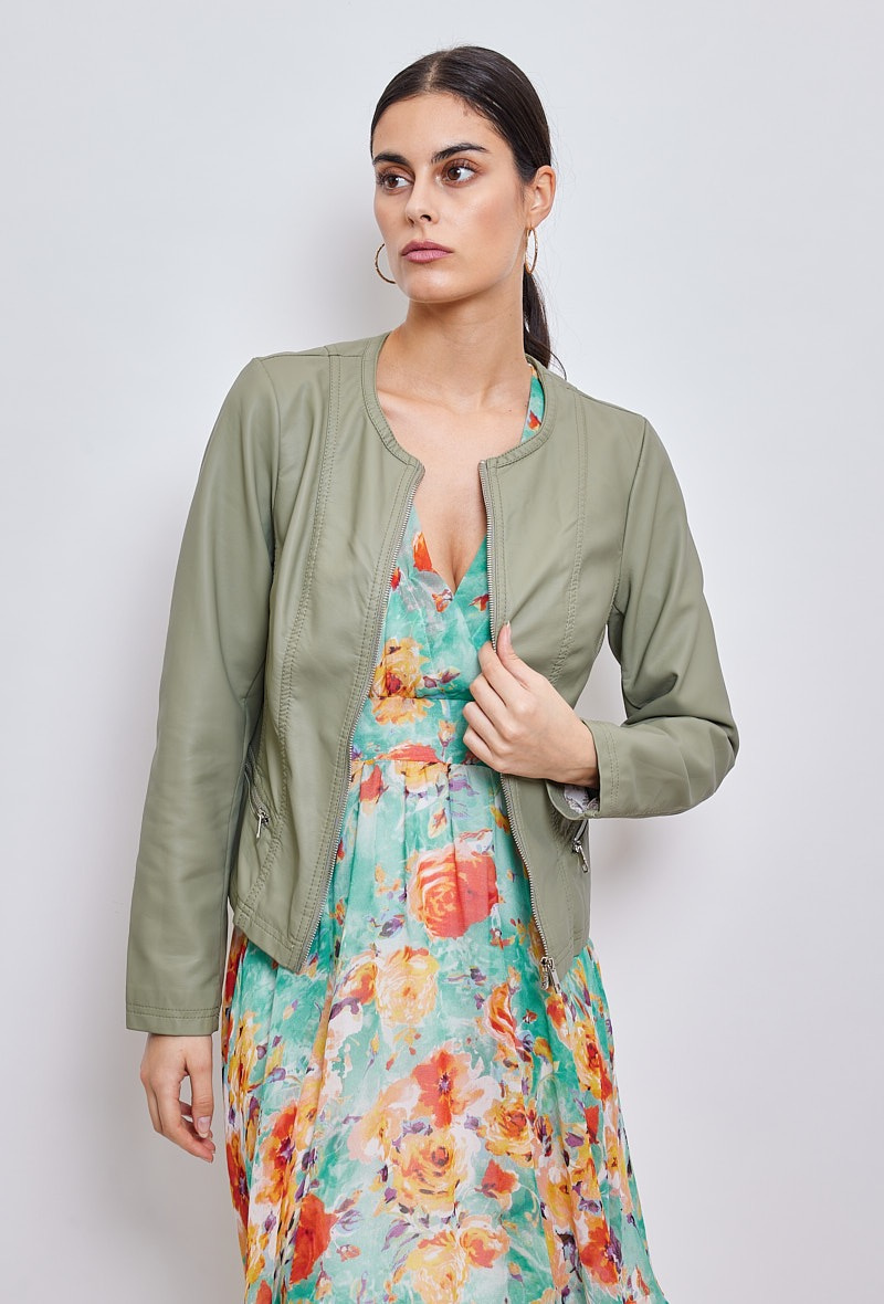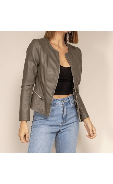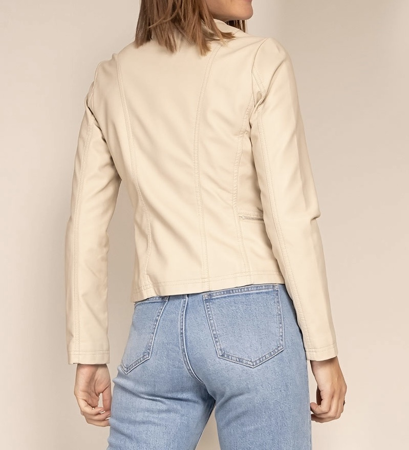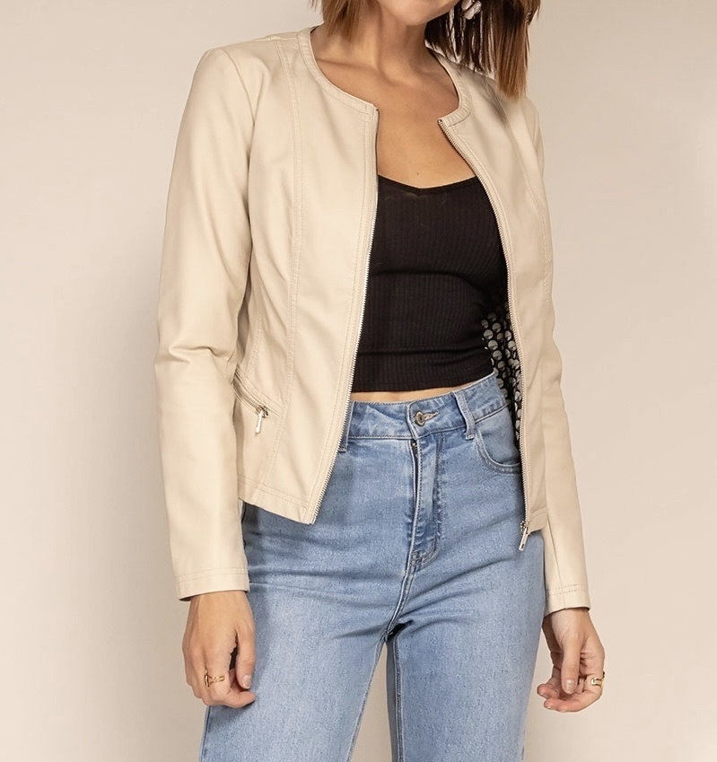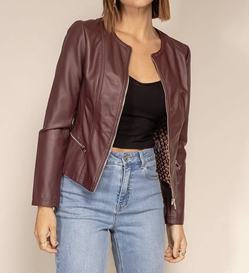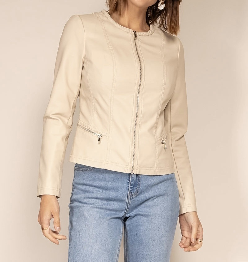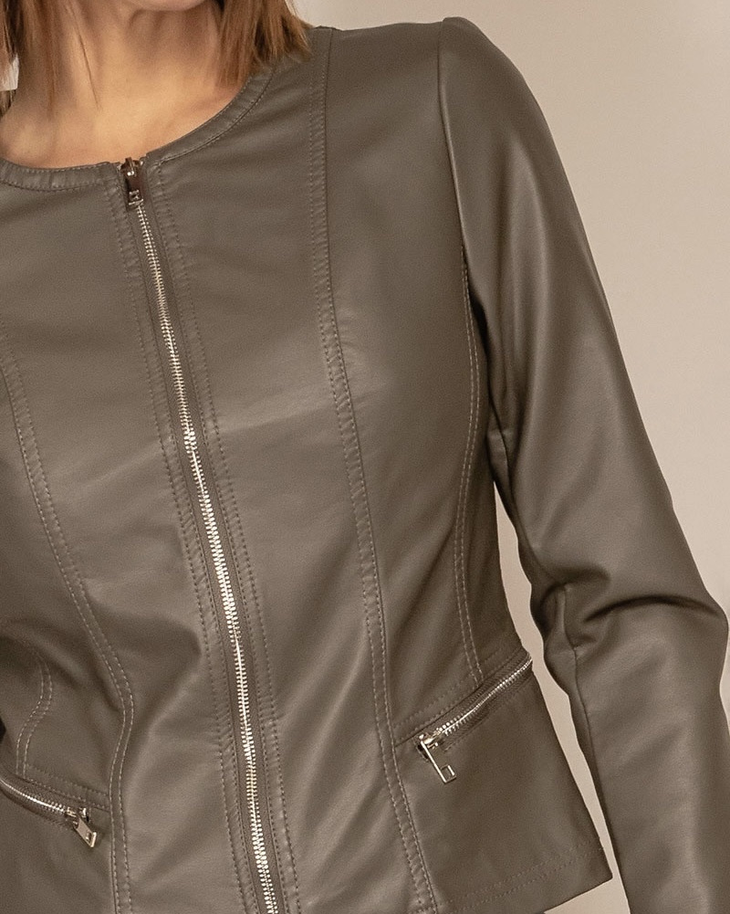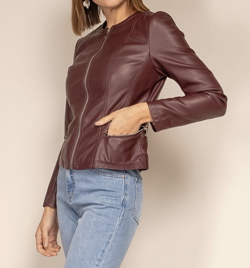 Módní koženková bunda bez límce-Channel střih Lady velikost (nadměr), tento typ nesmí chybět v žádném šatníku slečny či dámy,