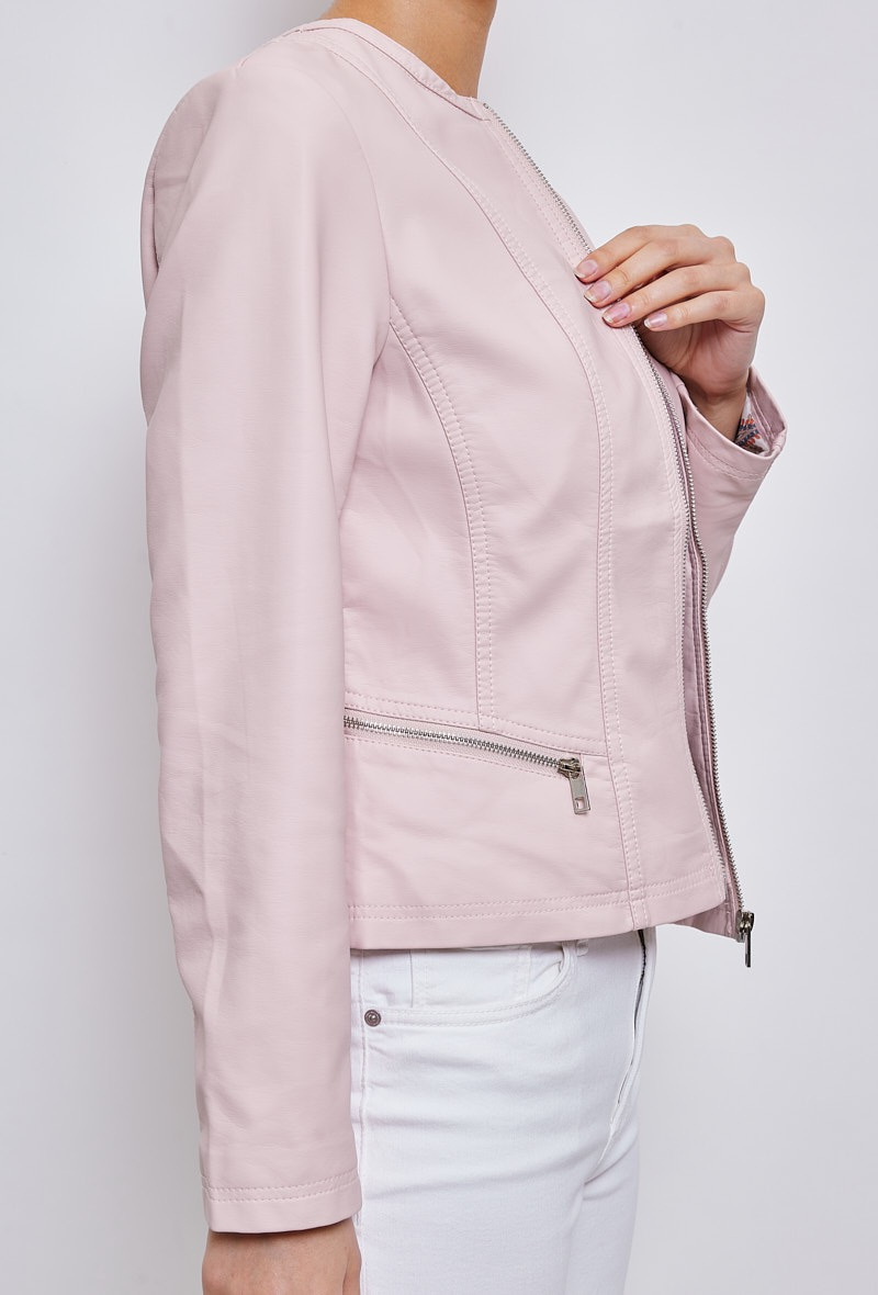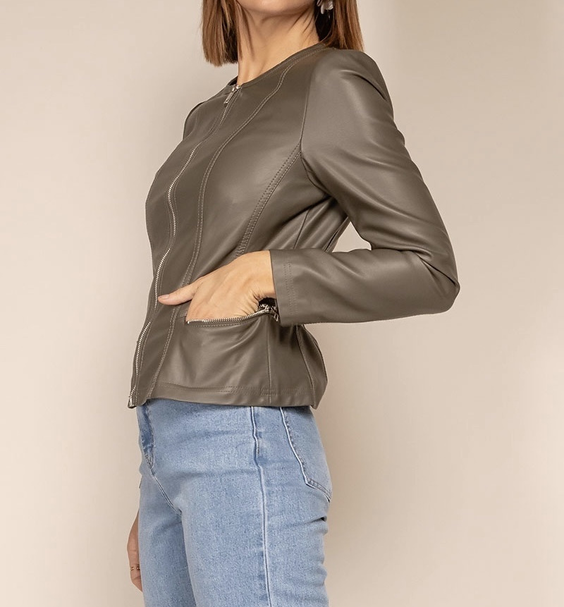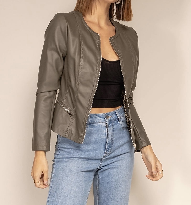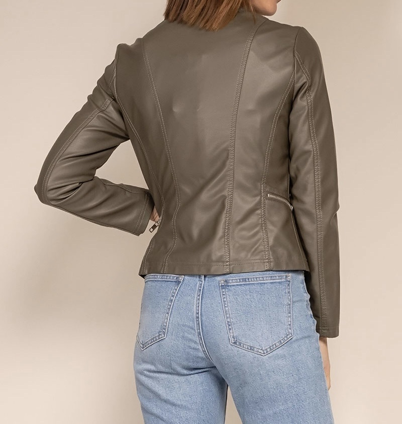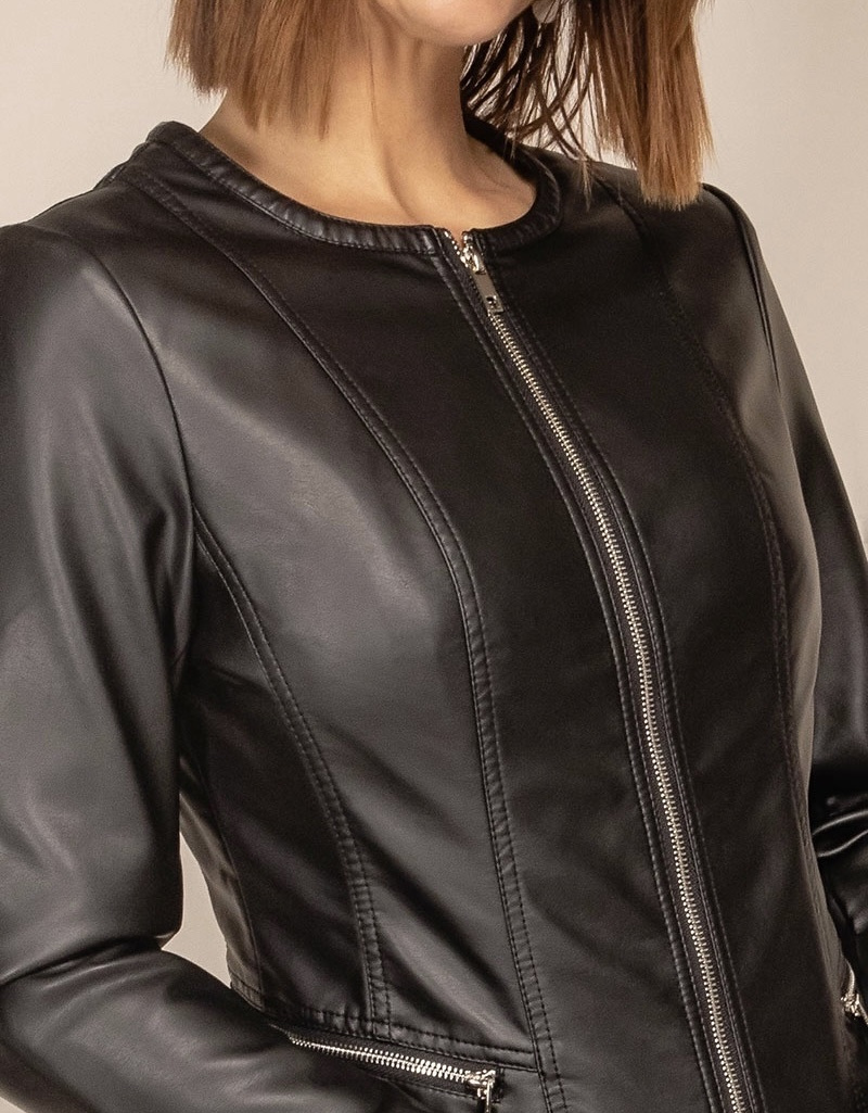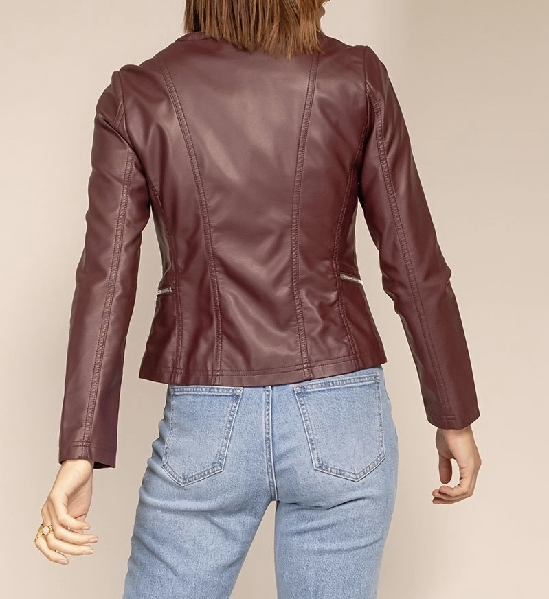 Módní koženková bunda bez límce-Channel střih , tento typ nesmí chybět v žádném šatníku slečny či dámy,