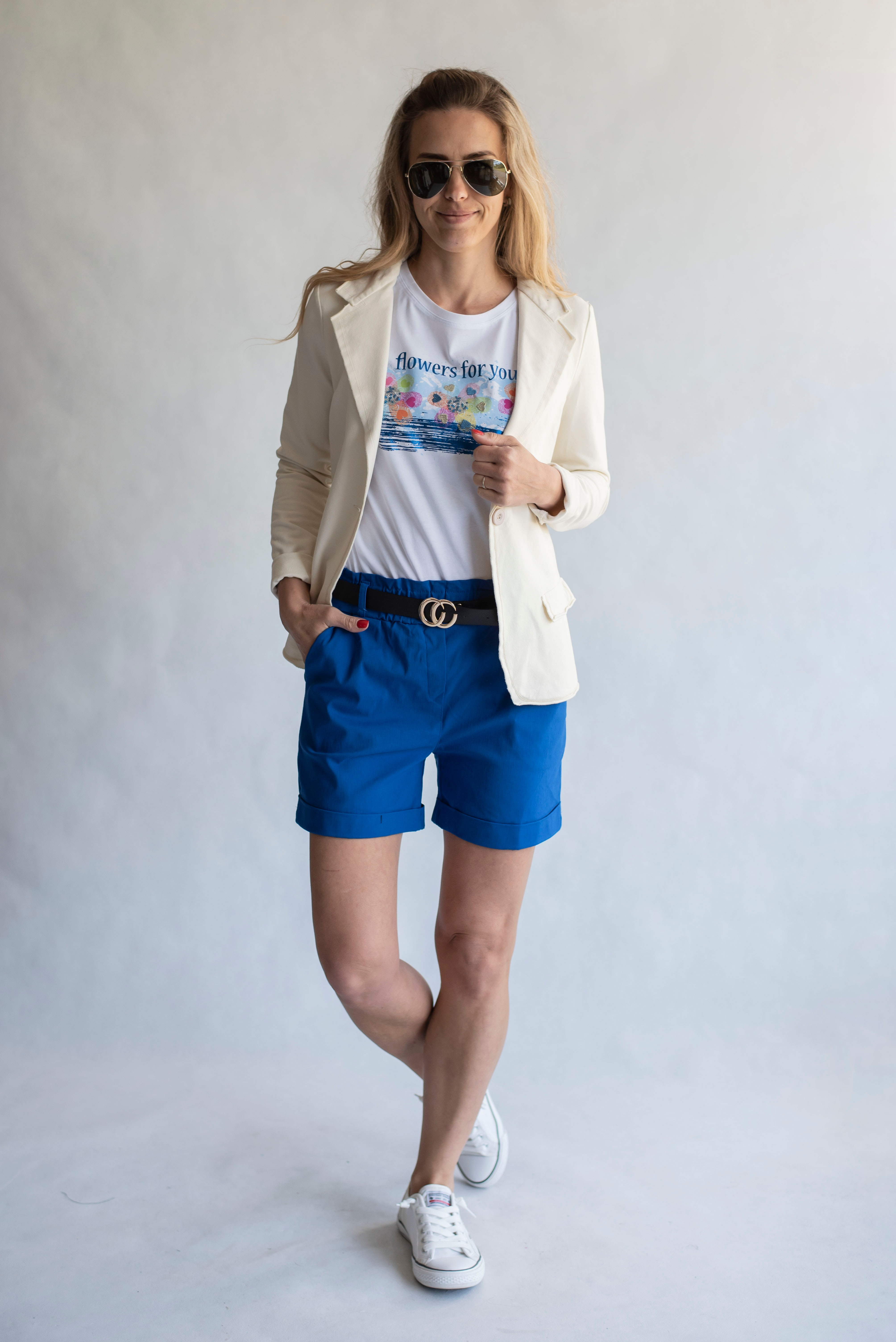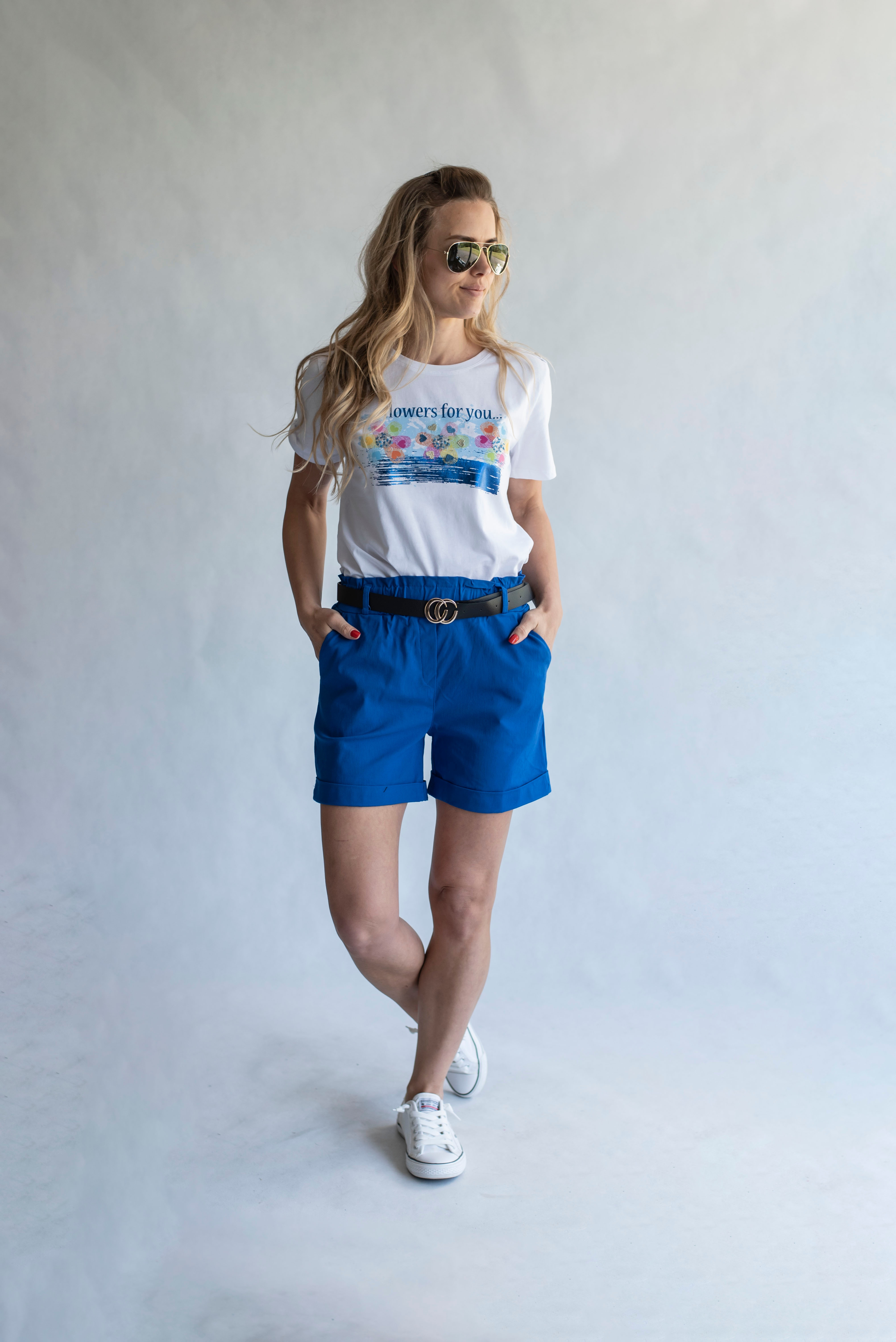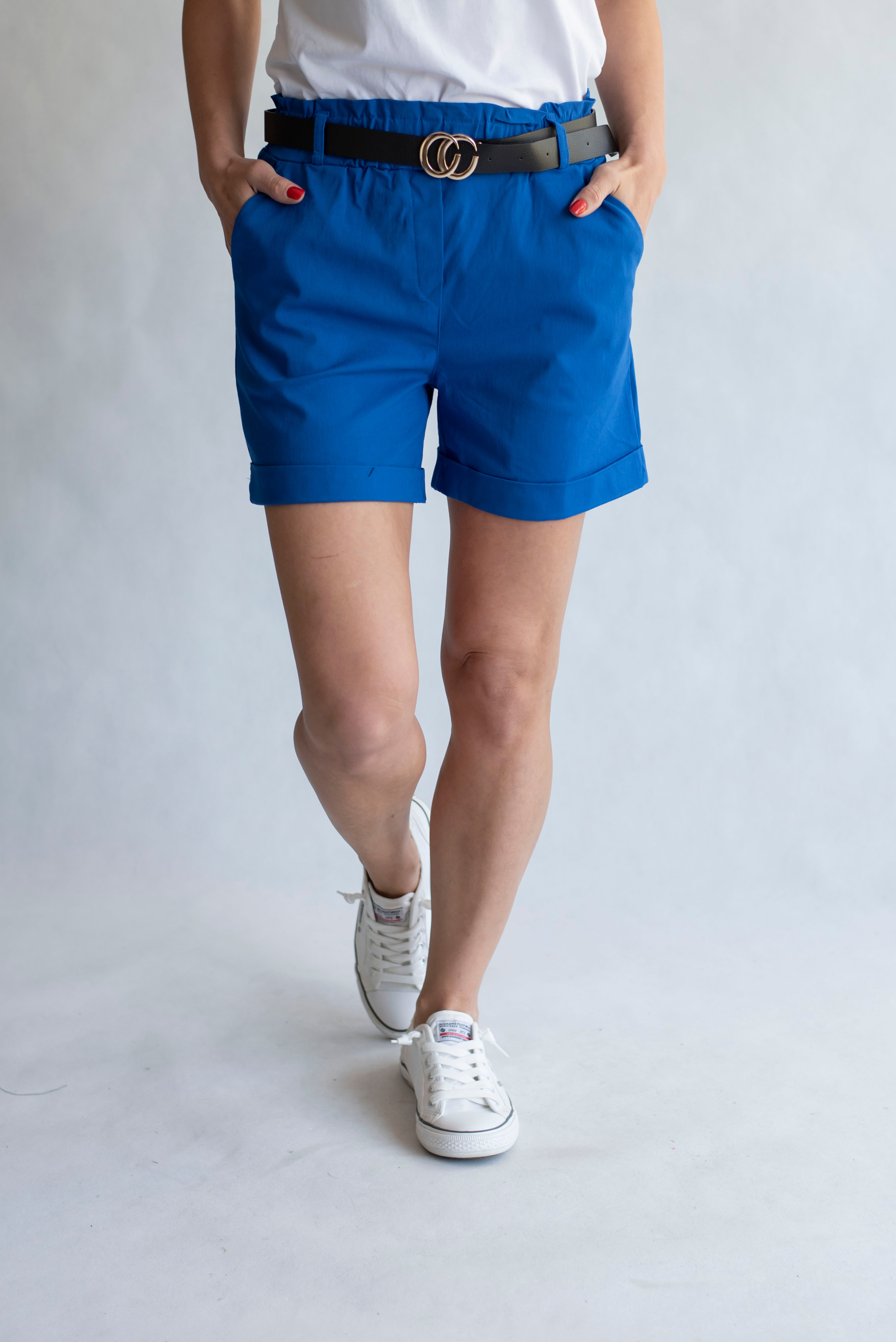 Módní kraťasy pohodlného střihu, Vyrobeno v Itálii, elastický pas, opasek a 2x přední kapsy