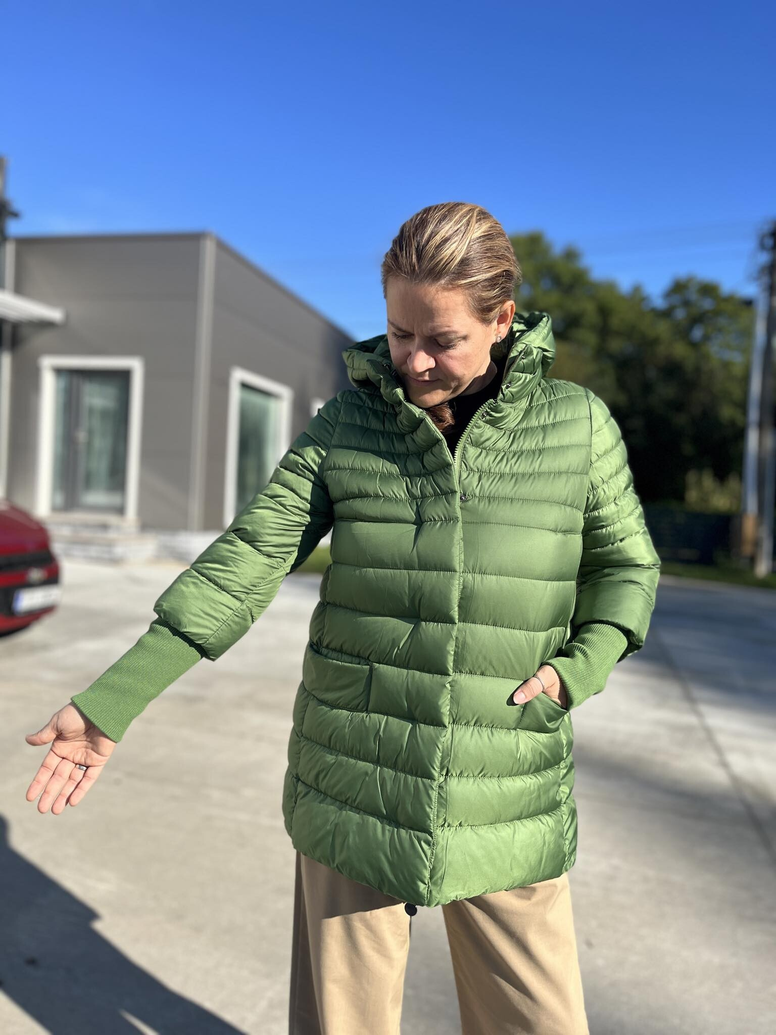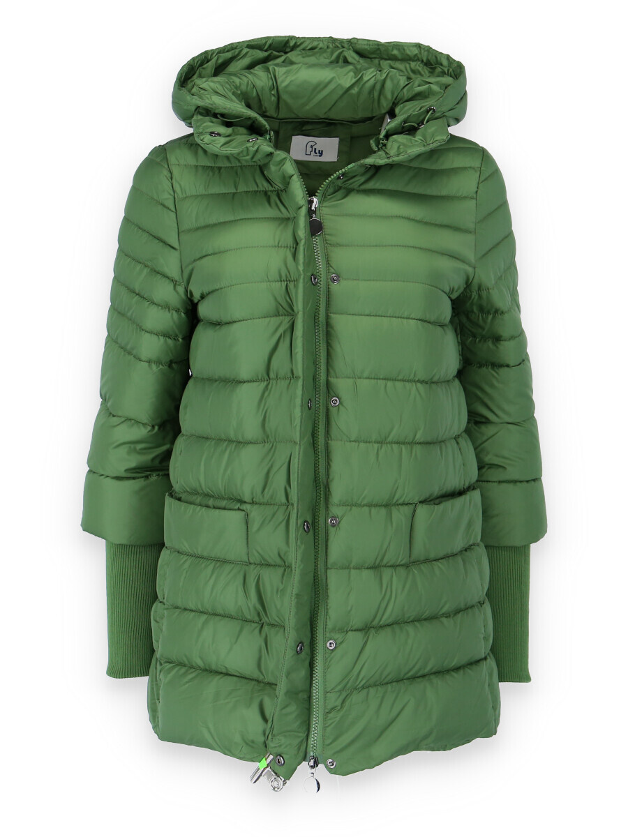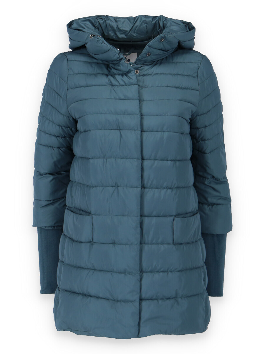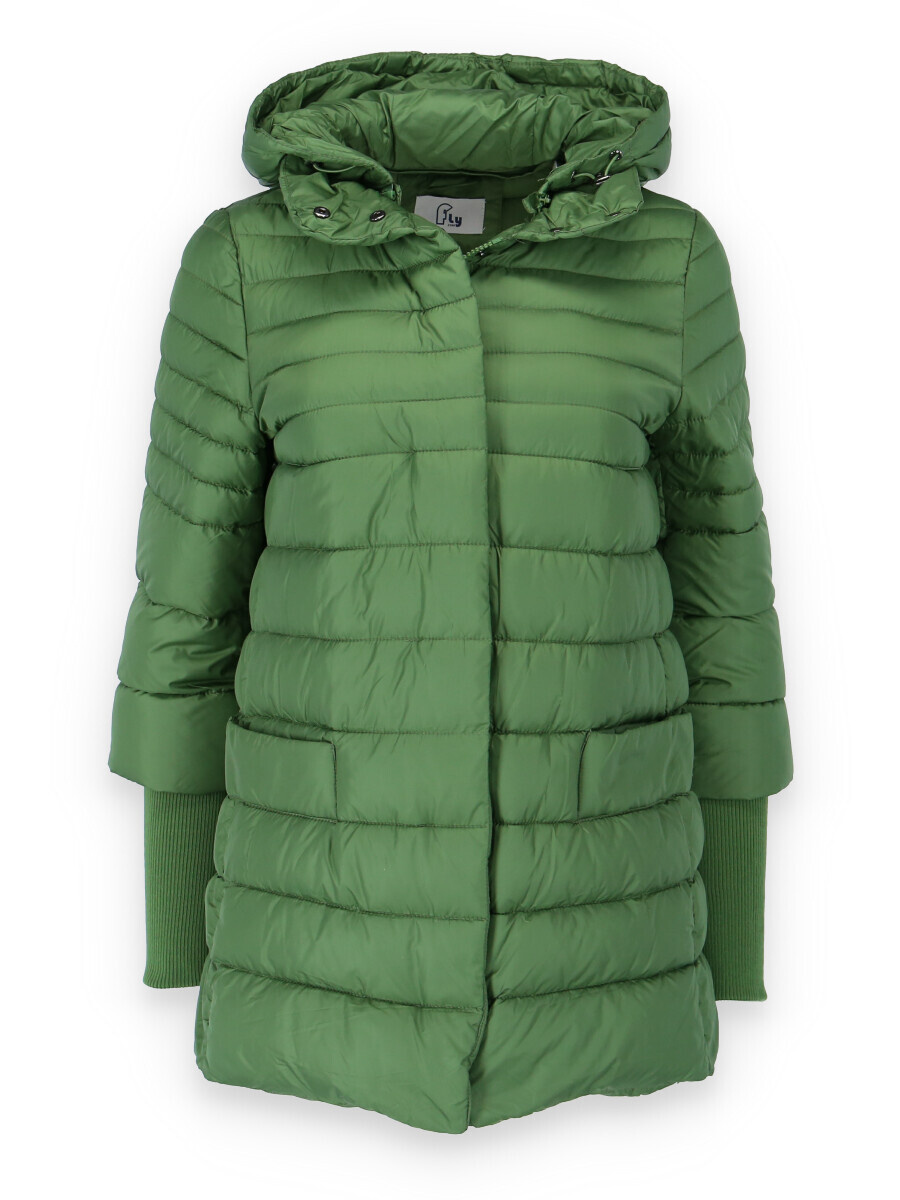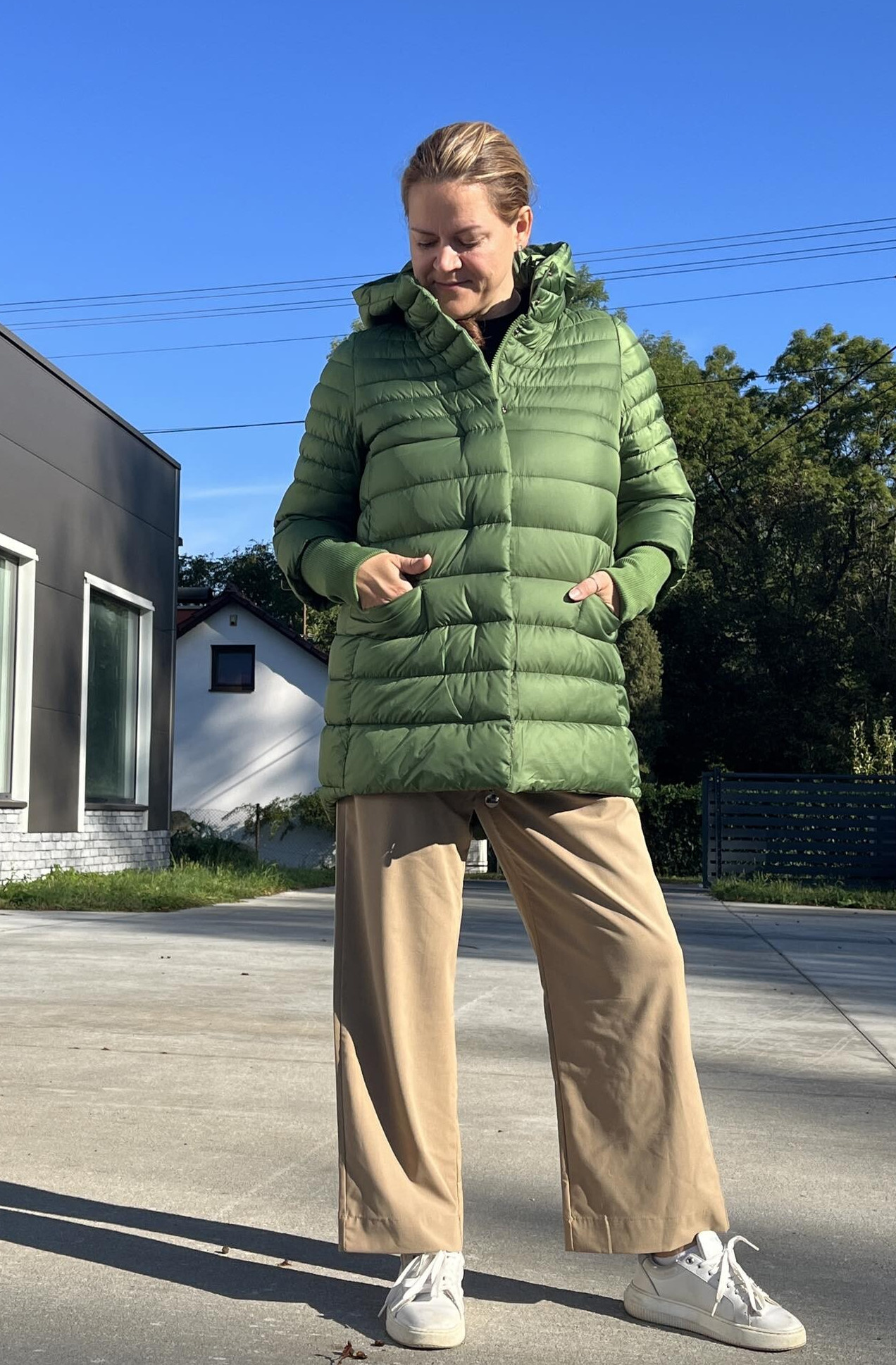 Krátká stylová bunda s kapucí, 3/4rukáv - zbývající délka doplněna úpletem.