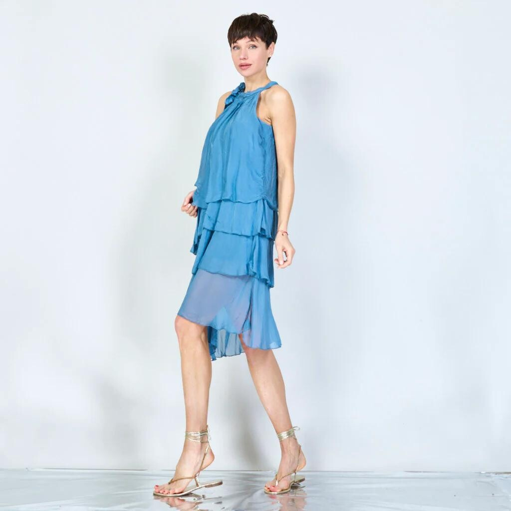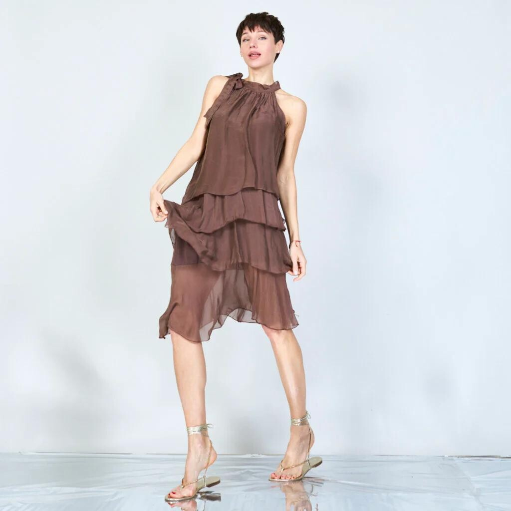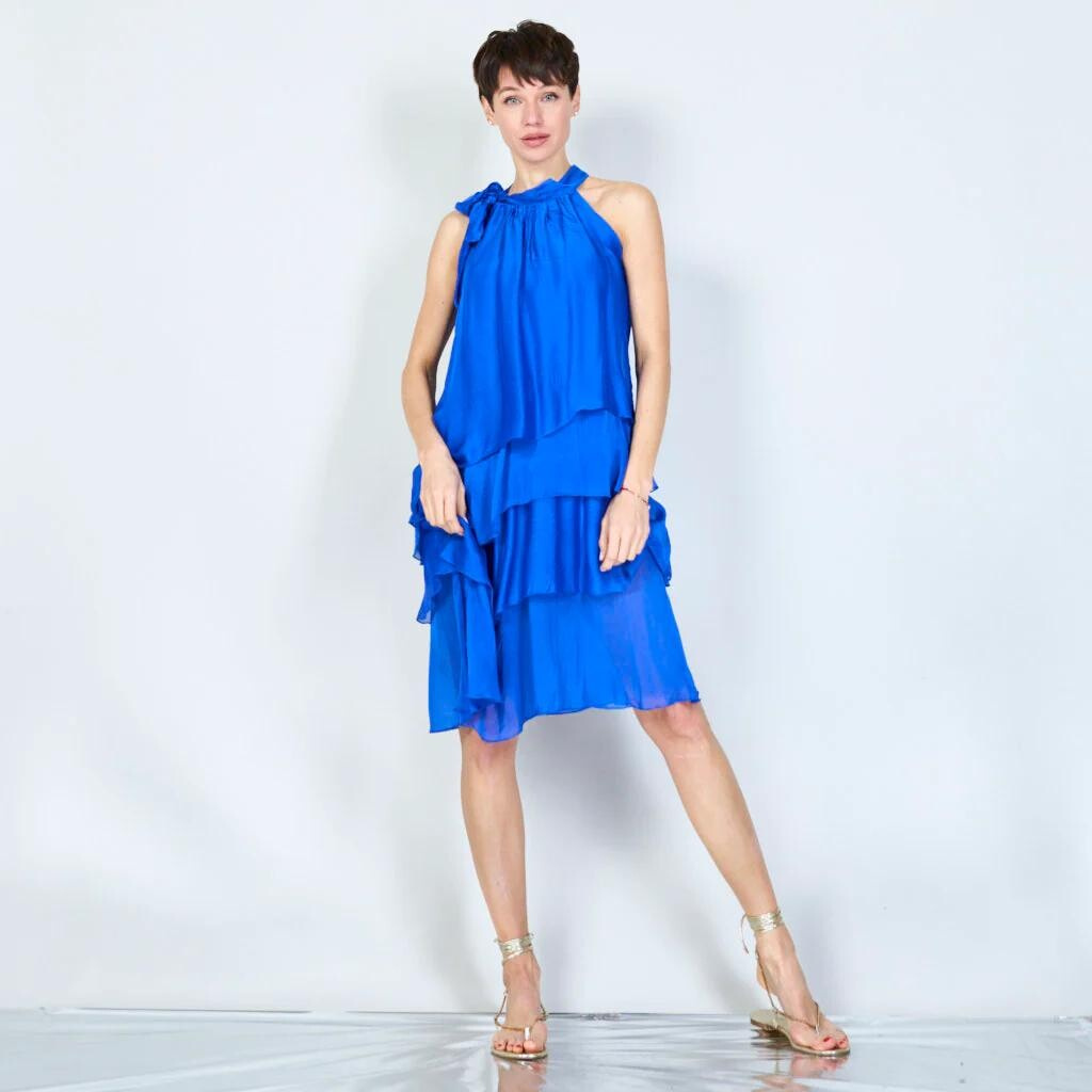 Krátké hedvábné volánové šaty 23112