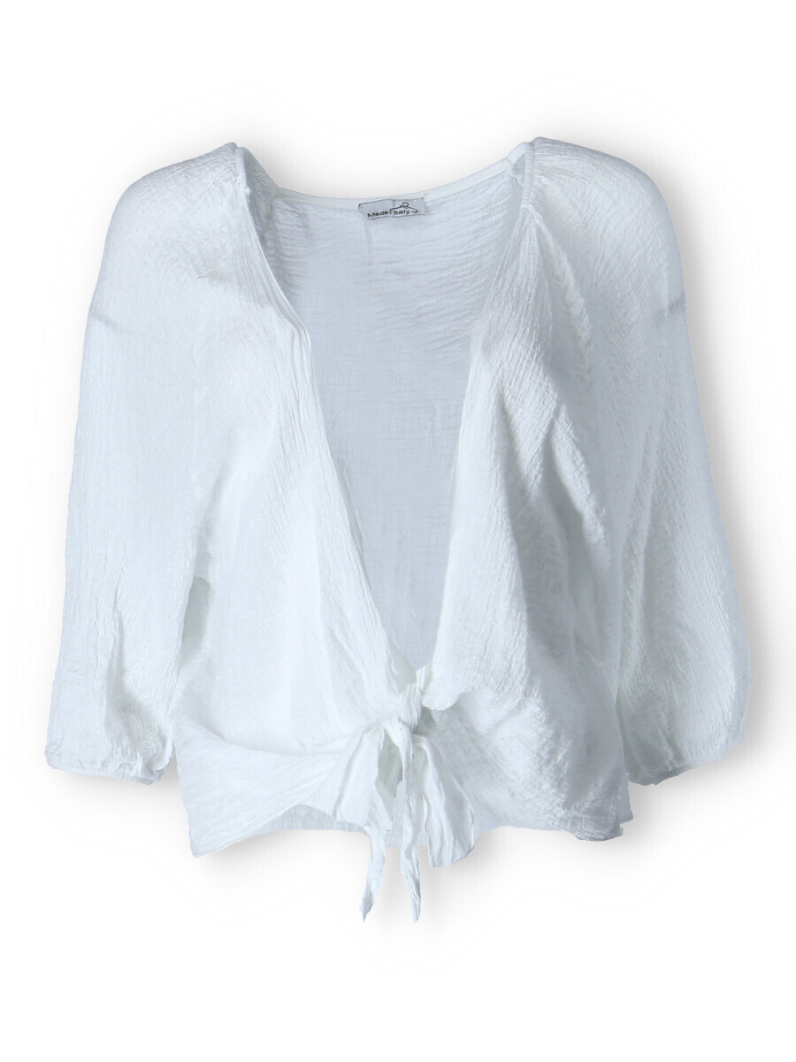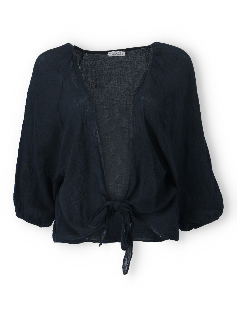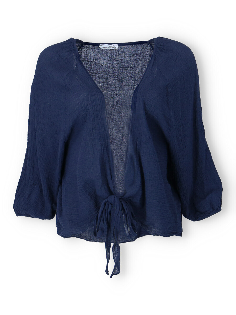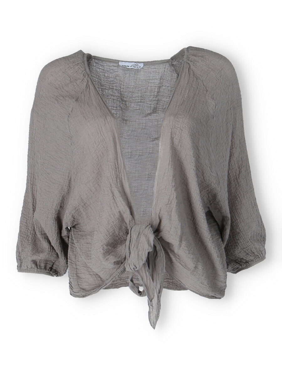 Krátký blejzr/bolerko s vázáním. Ideální přehoz pro chladnější letní večery.
