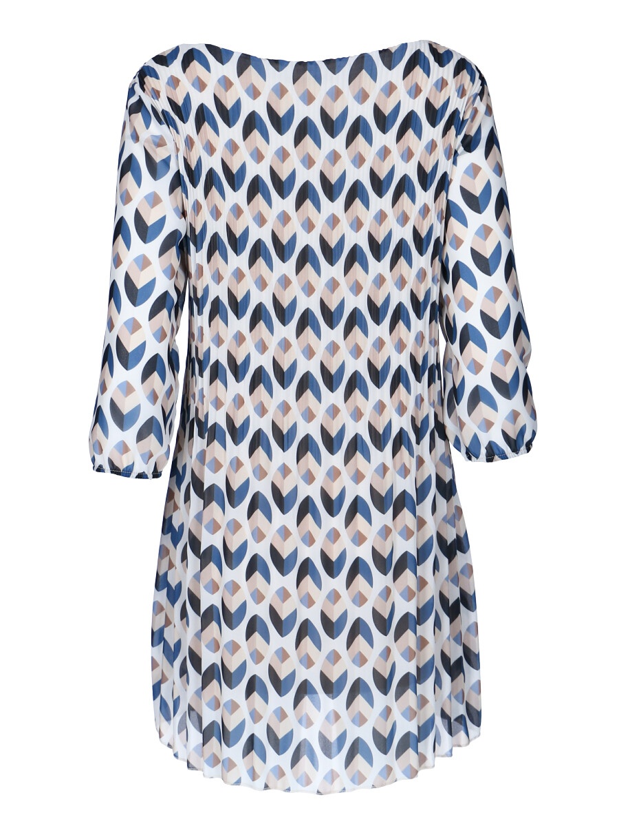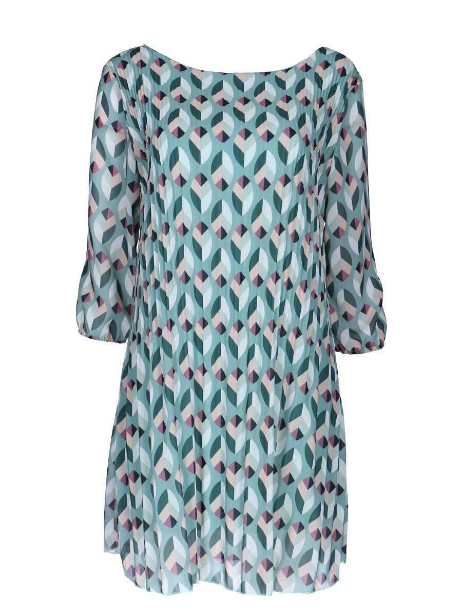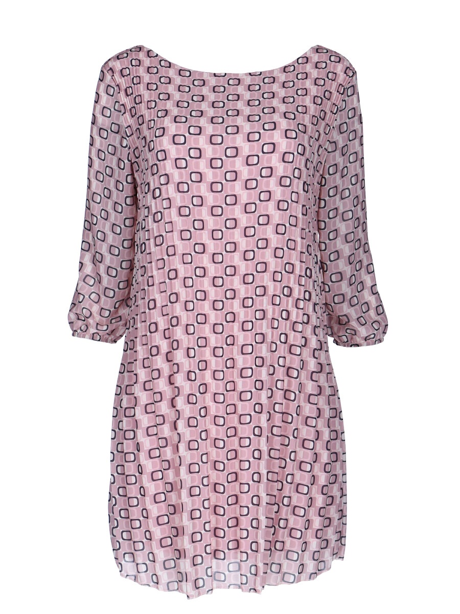 Módní vzorované krátké dámské šaty s 3/4 rukávem. Vyrobeno v Itálii