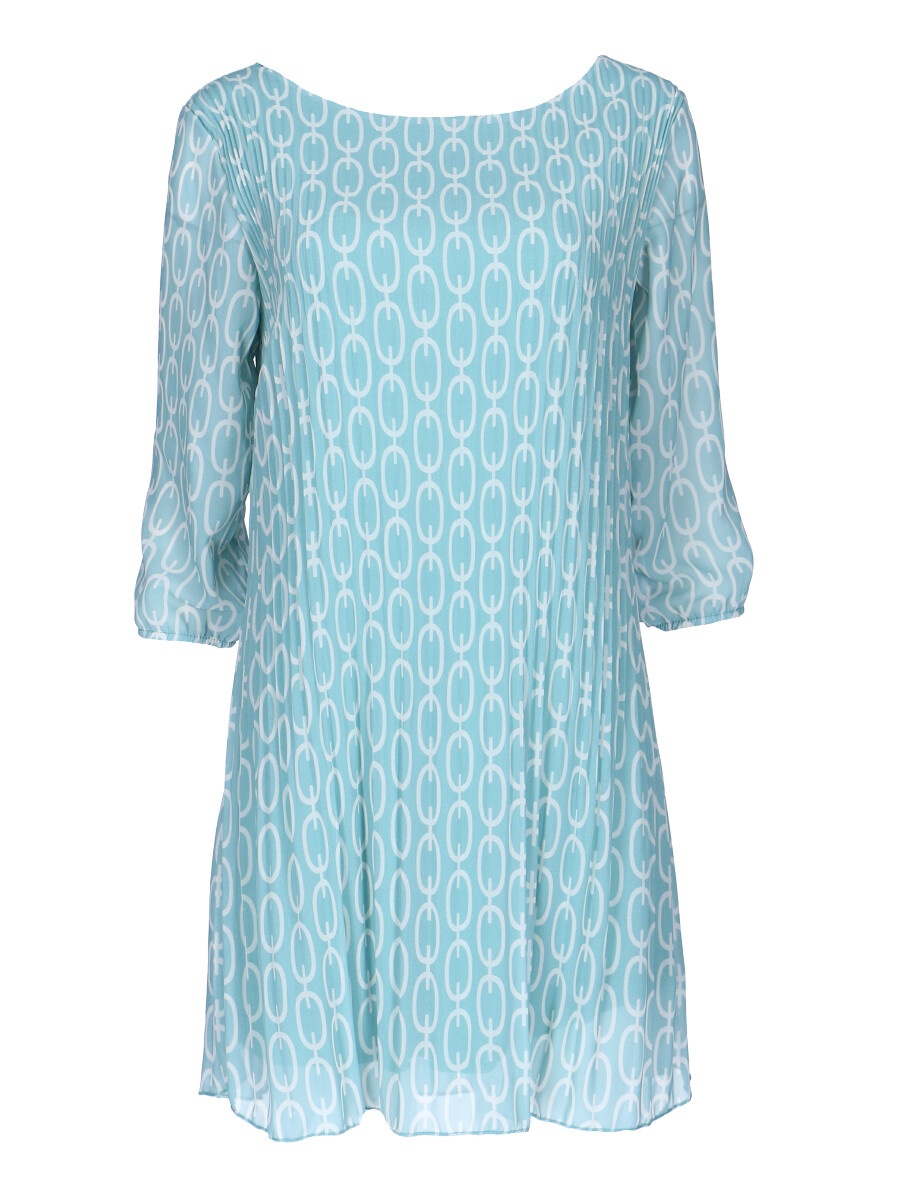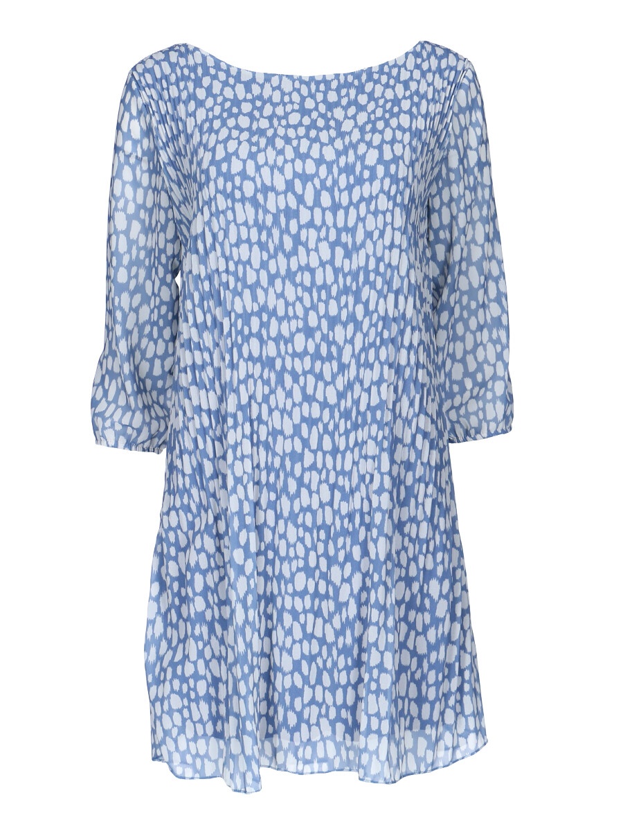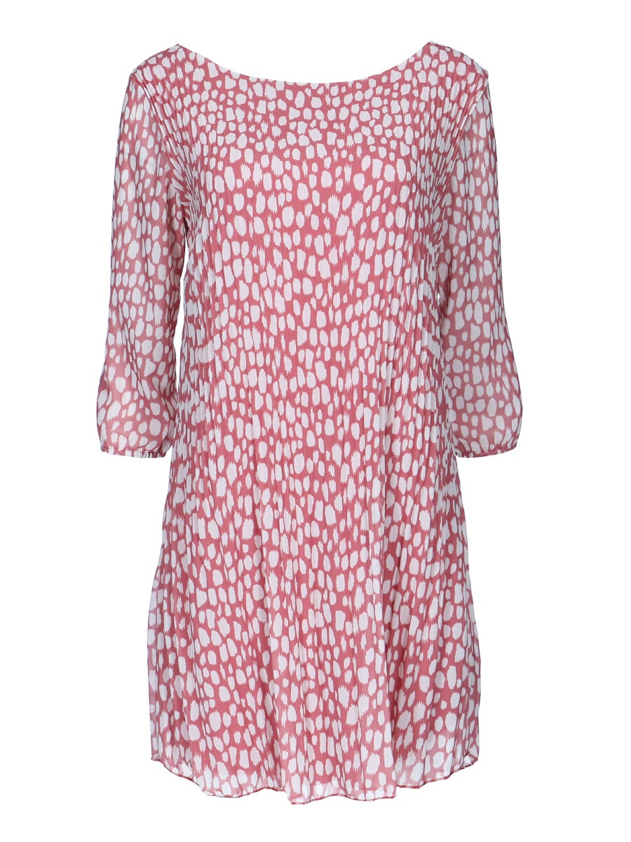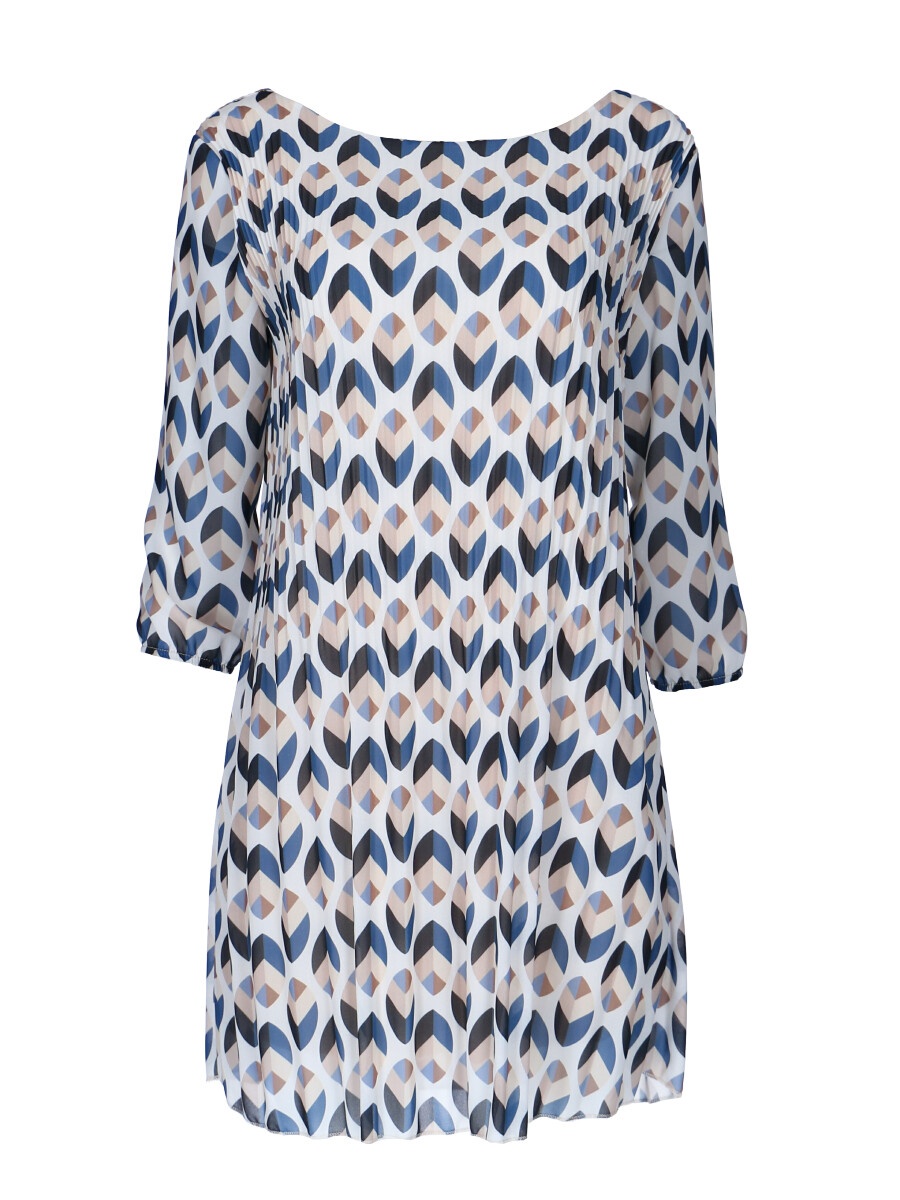 Módní vzorované krátké dámské šaty s 3/4 rukávem. Vyrobeno v Itálii