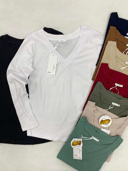 Módní triko s elegantním výstřihem do V, dlouhý rukáv.