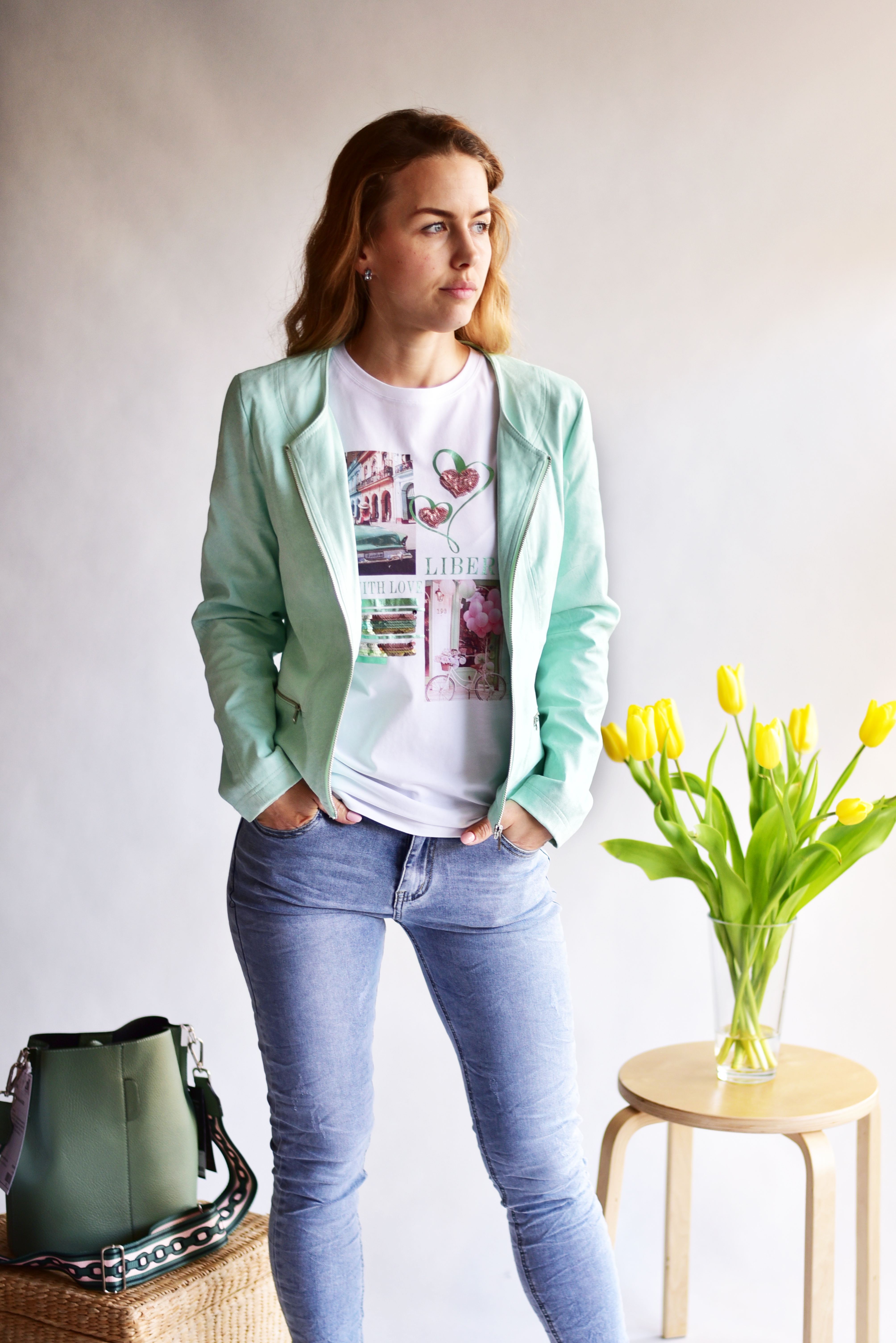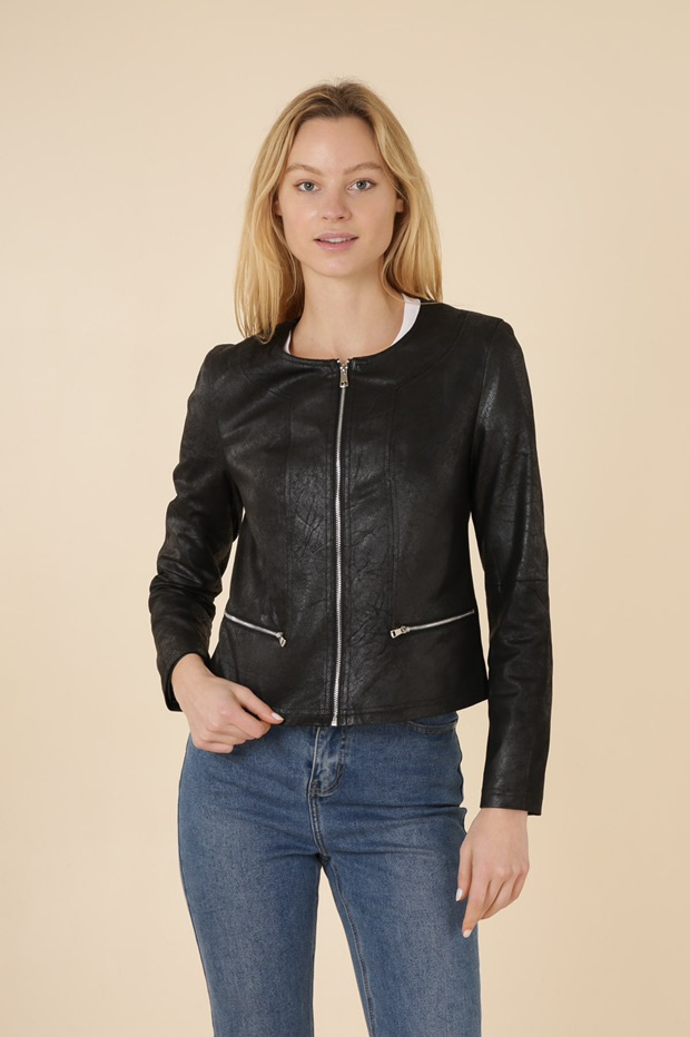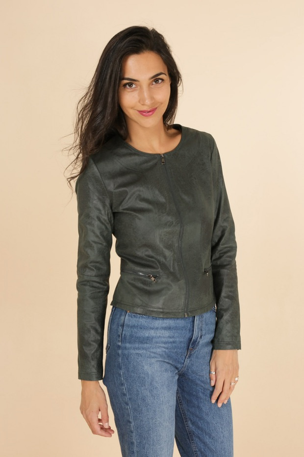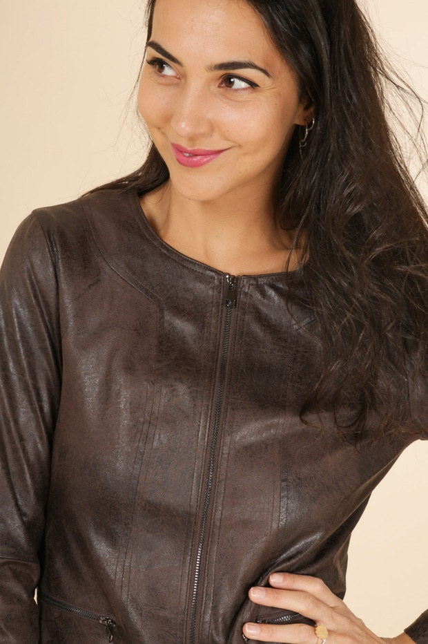 Módní bunda klasického střihu, imitace broušené kůže, střih je velmi nadčasový od francouzské módní firmy Laura Jo Paris