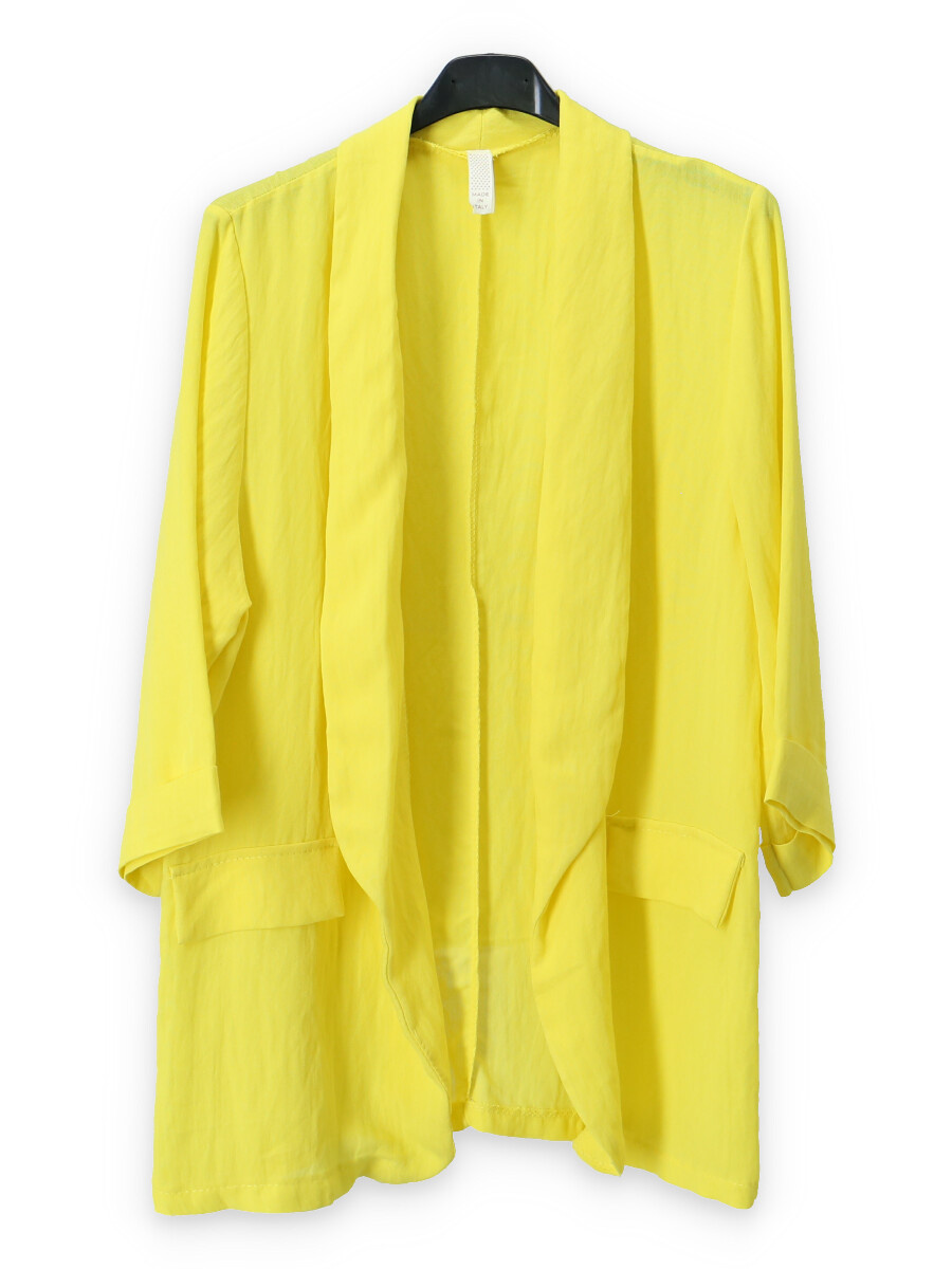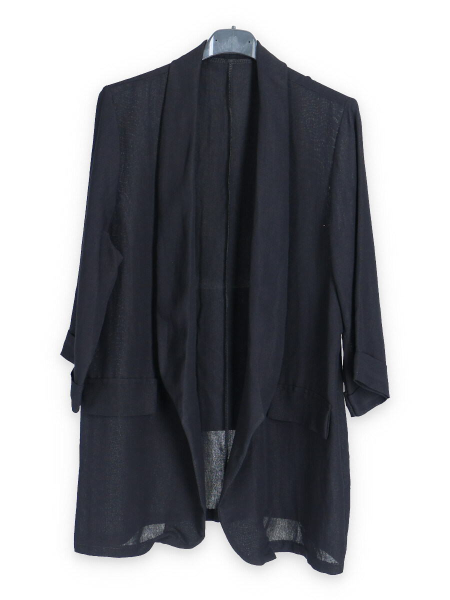 Elegantní letní sako kardigan s 3/4 rukávem a všitými imitacemi kapes v přední části z lehkého a vzdušného materiálu.