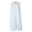 Dámské letní šaty se stojáčkem a výstřihem do V, s aplikací knoflíků. Šaty jsou volánového oversize střihu, vyrobeno v Itálii