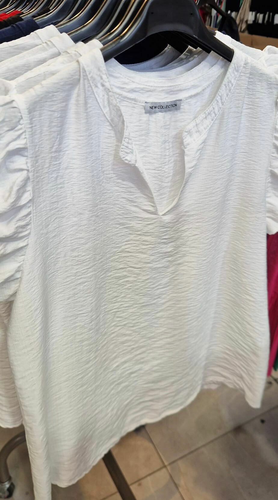 Dámský letní top/halenka s volánkovým rukávem, výstřih do V. vyrobeno v Italii