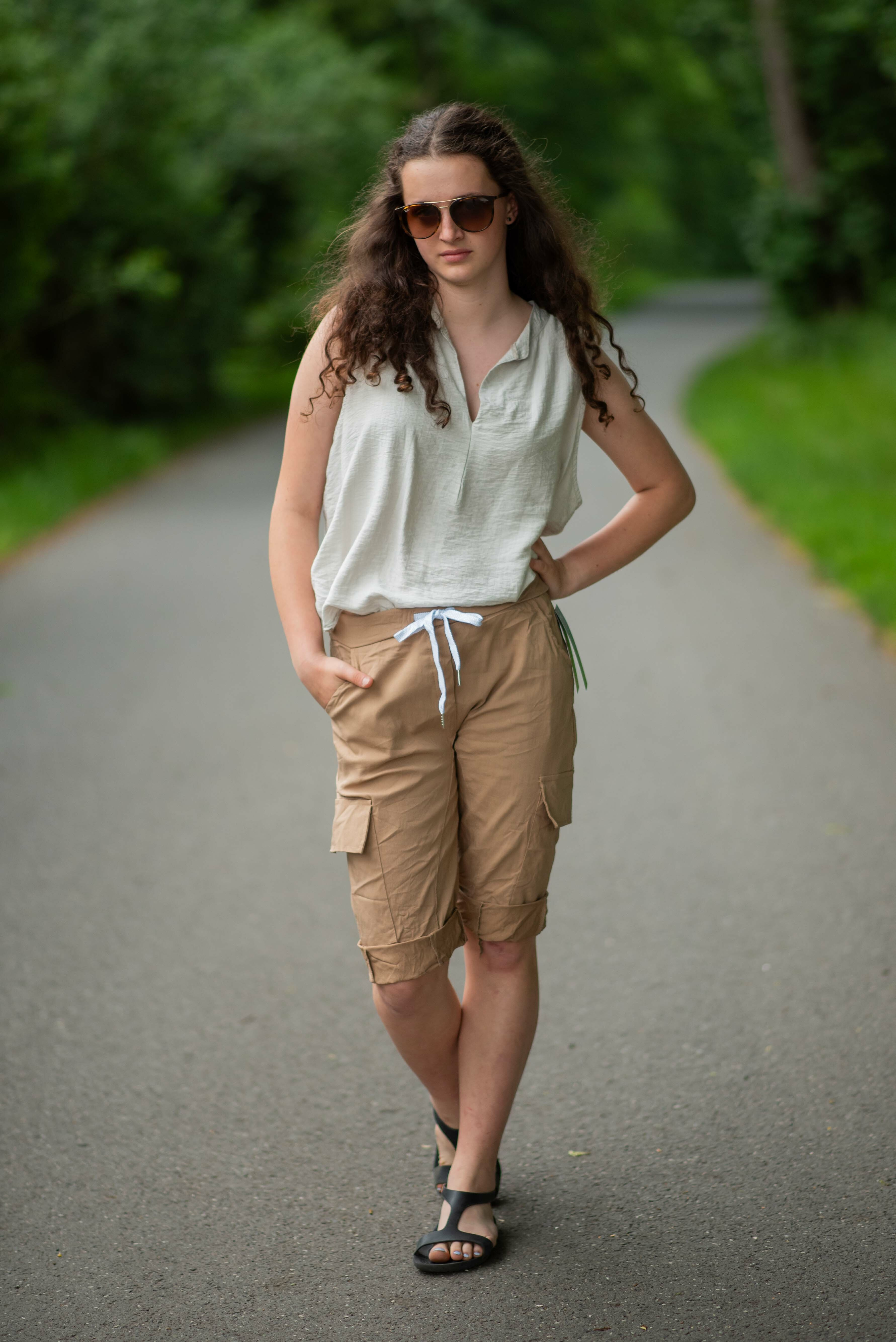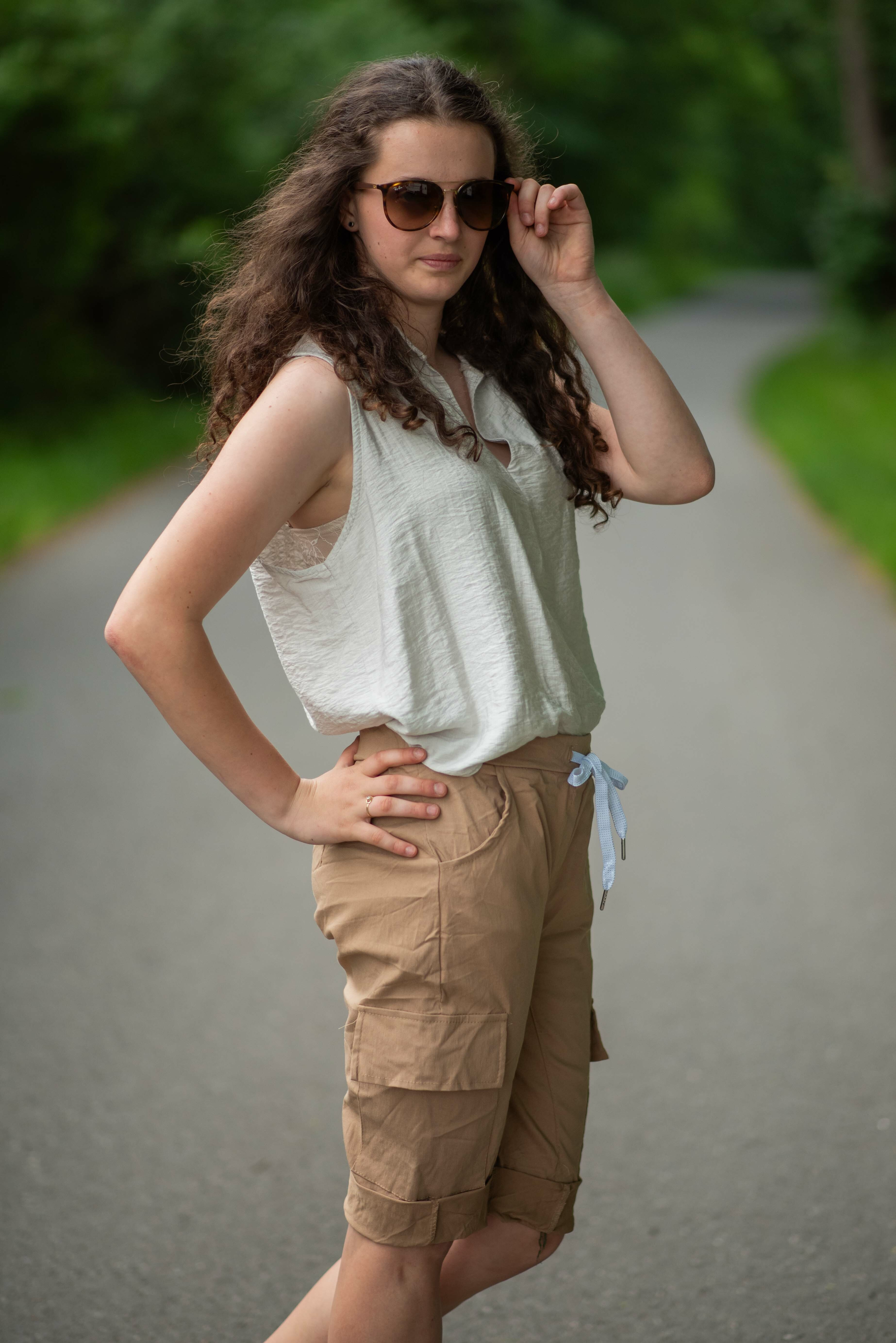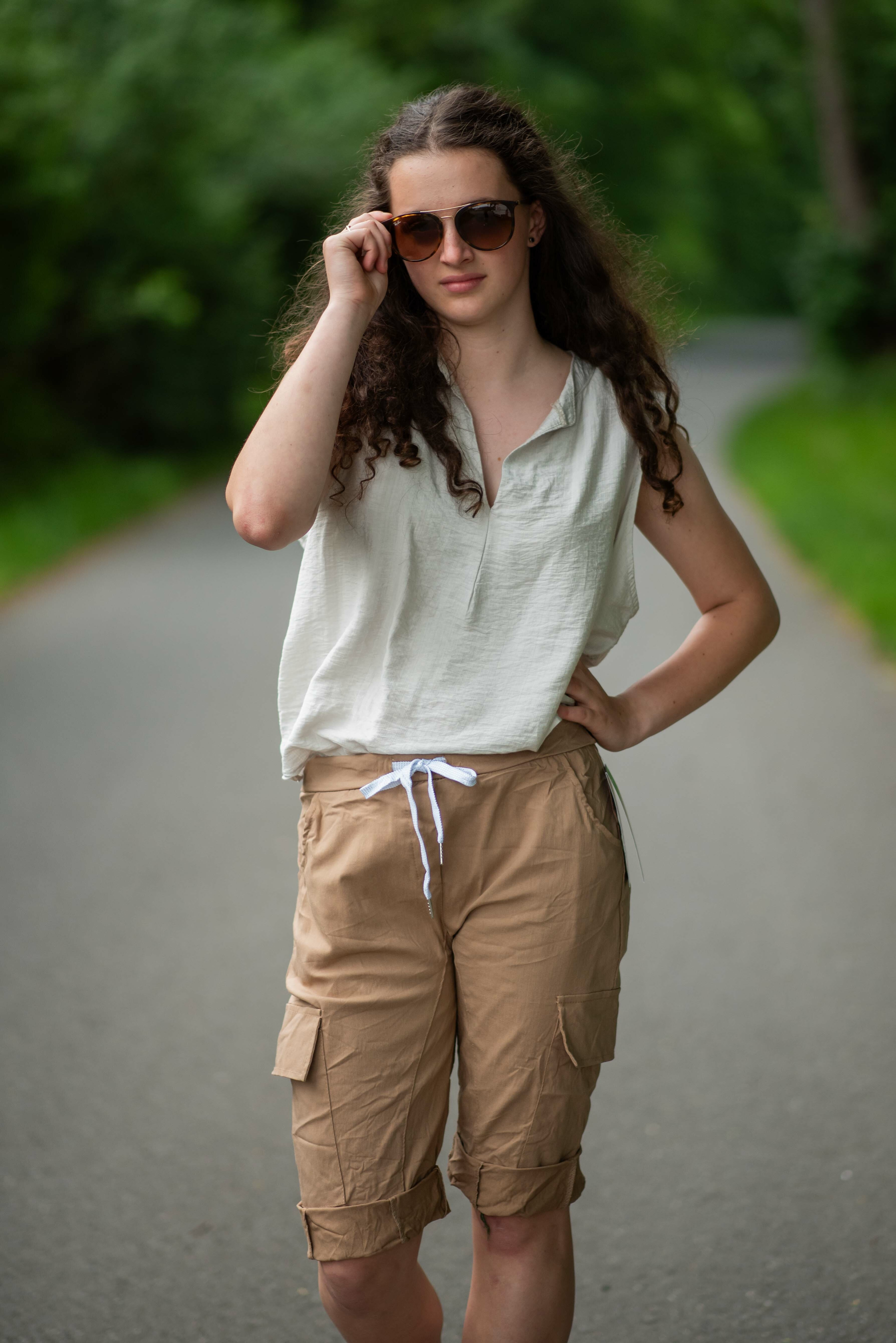 Dámský letní top bez rukávu s výstřihem do V, vyrobeno v Itálii
