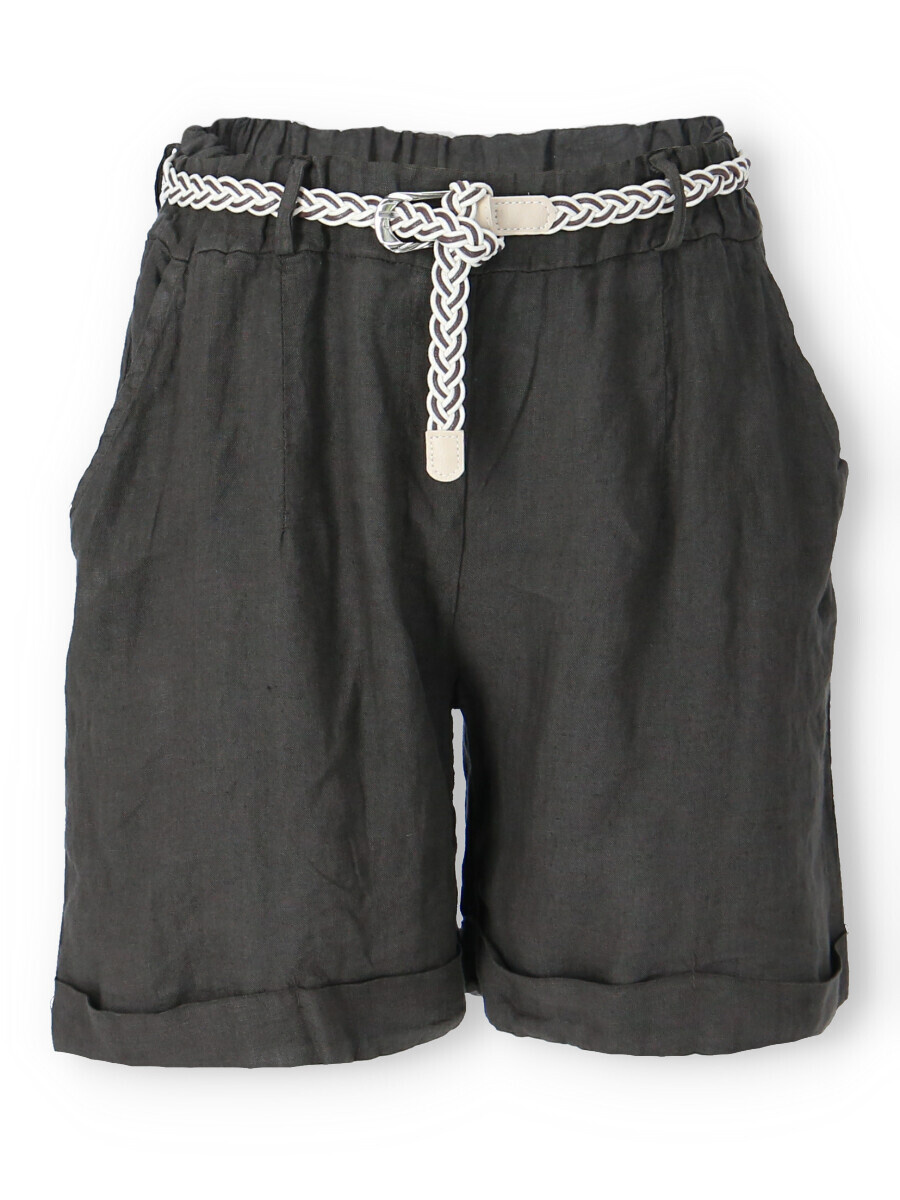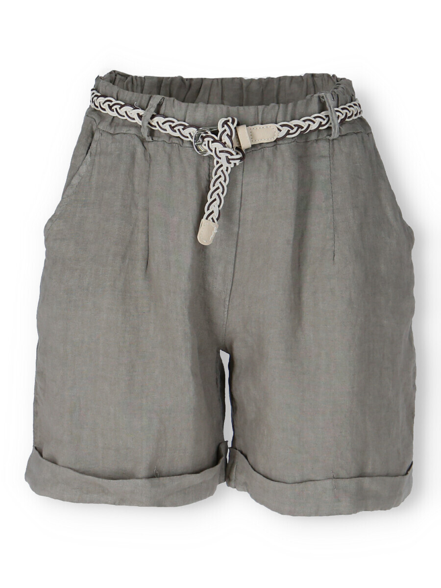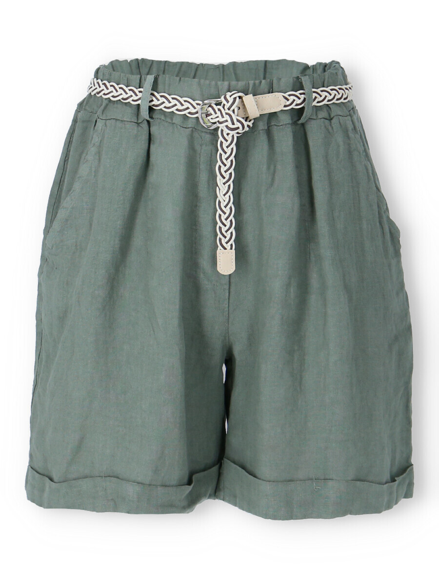 Módní lněné kraťasy s páskem v pase do gumy: Kraťasy mají všité kapsy po stranách, jednu falešnou kapsu na zadní straně. Jsou velice příjemné na každodenní nošení v letních měsících.