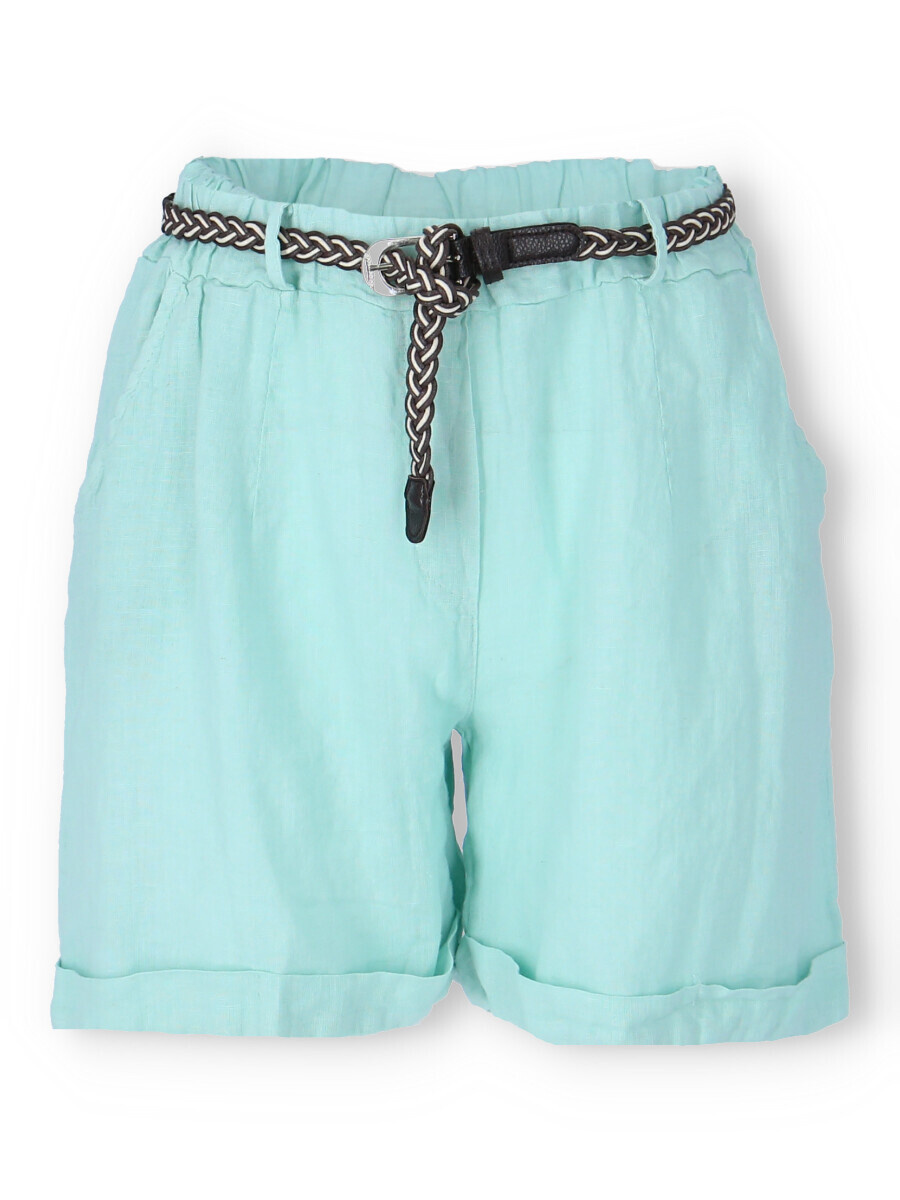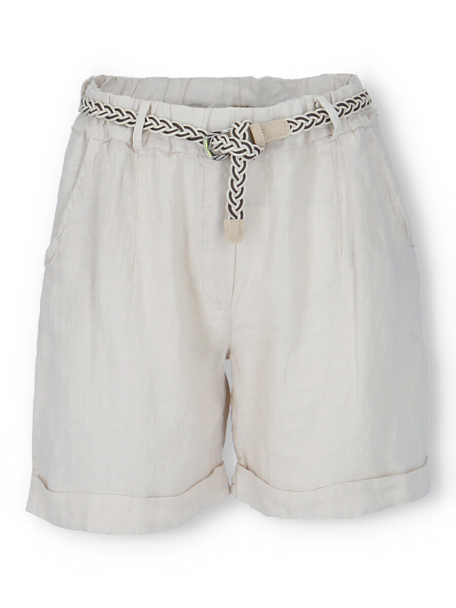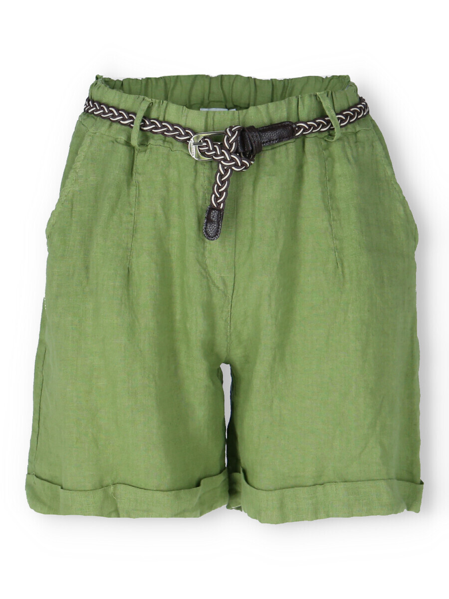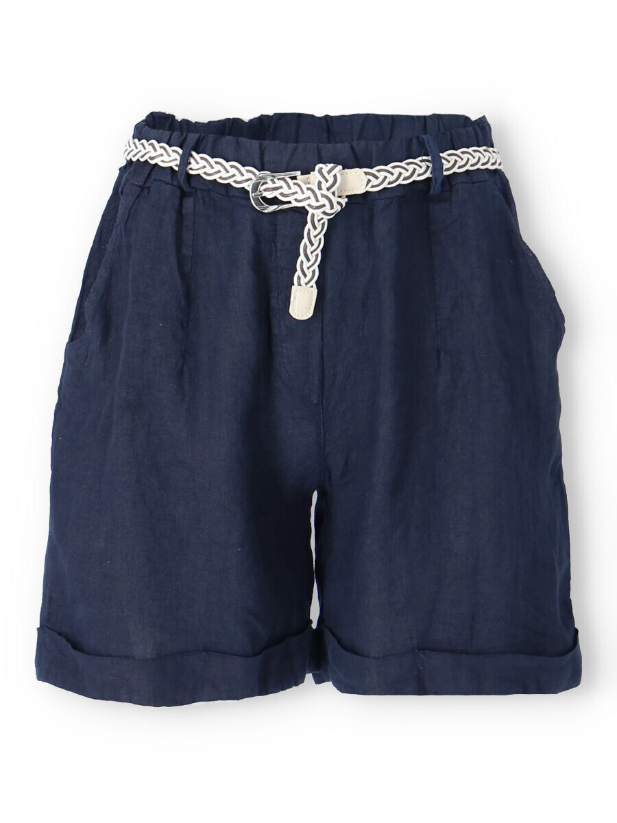 Módní lněné kraťasy s páskem v pase do gumy: Kraťasy mají všité kapsy po stranách, jednu falešnou kapsu na zadní straně. Jsou velice příjemné na každodenní nošení v letních měsících.