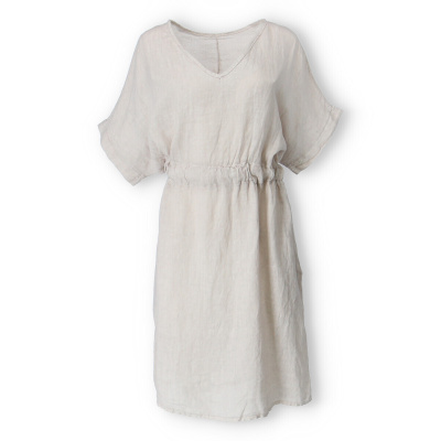 Lněné šaty kr. rukáv 9764 barva: béžová