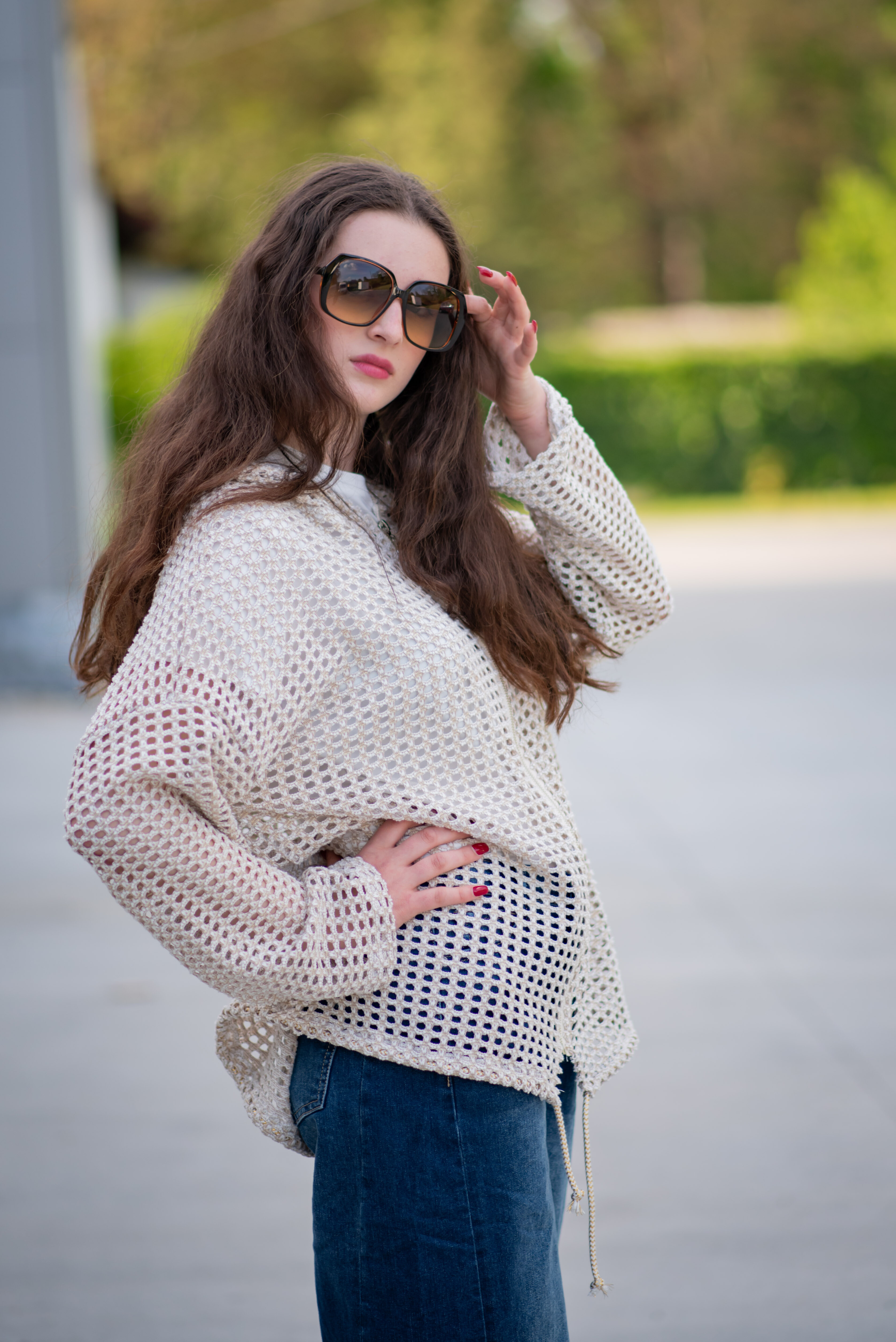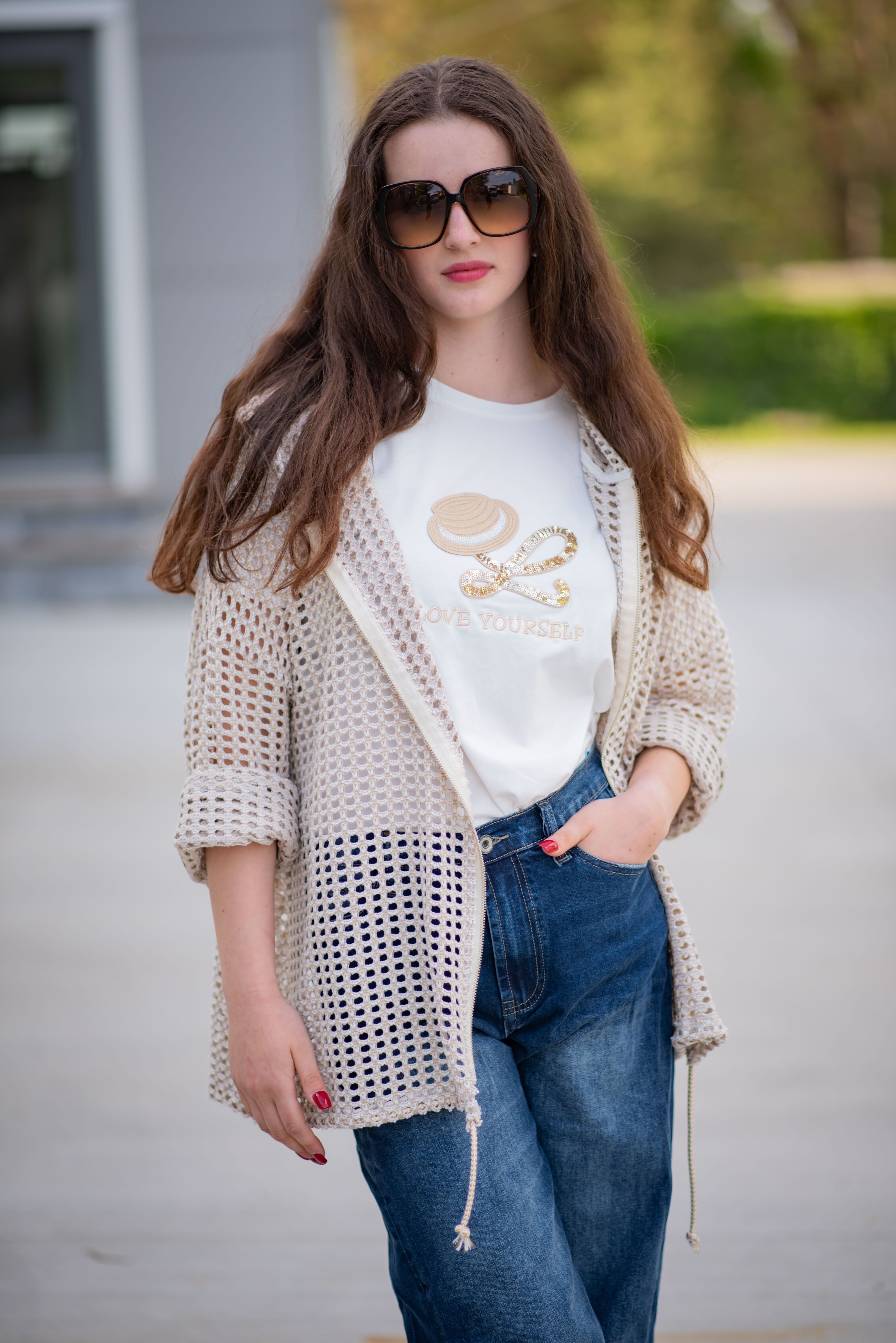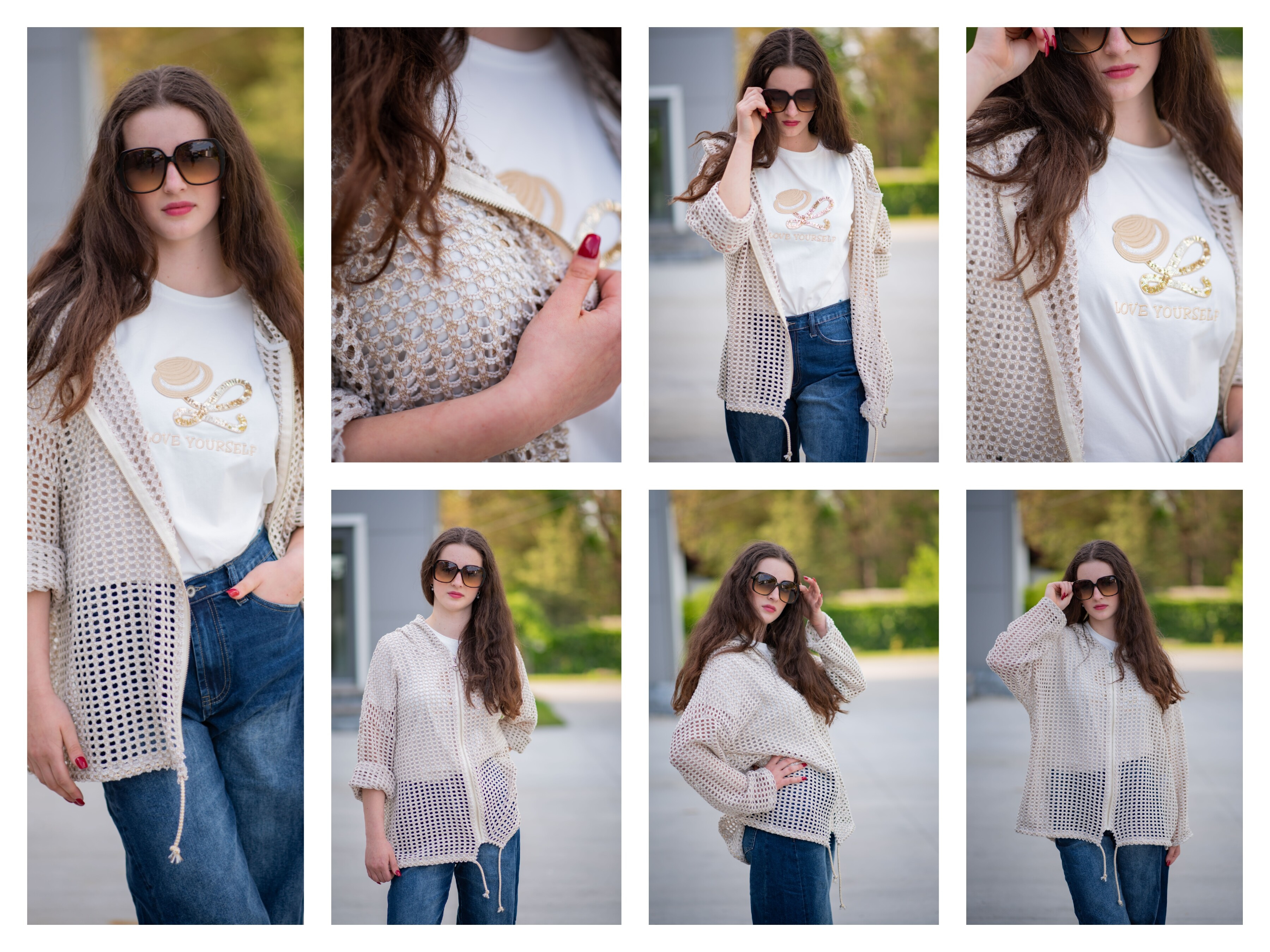 Trendy mikina/bunda ze síťoviny pozlacené. Bunda má kapuci a 3/4 rukáv. Bunda je na zapínání na zip a v pase je na stažení na šňůrku. Vyrobeno v Itálii.