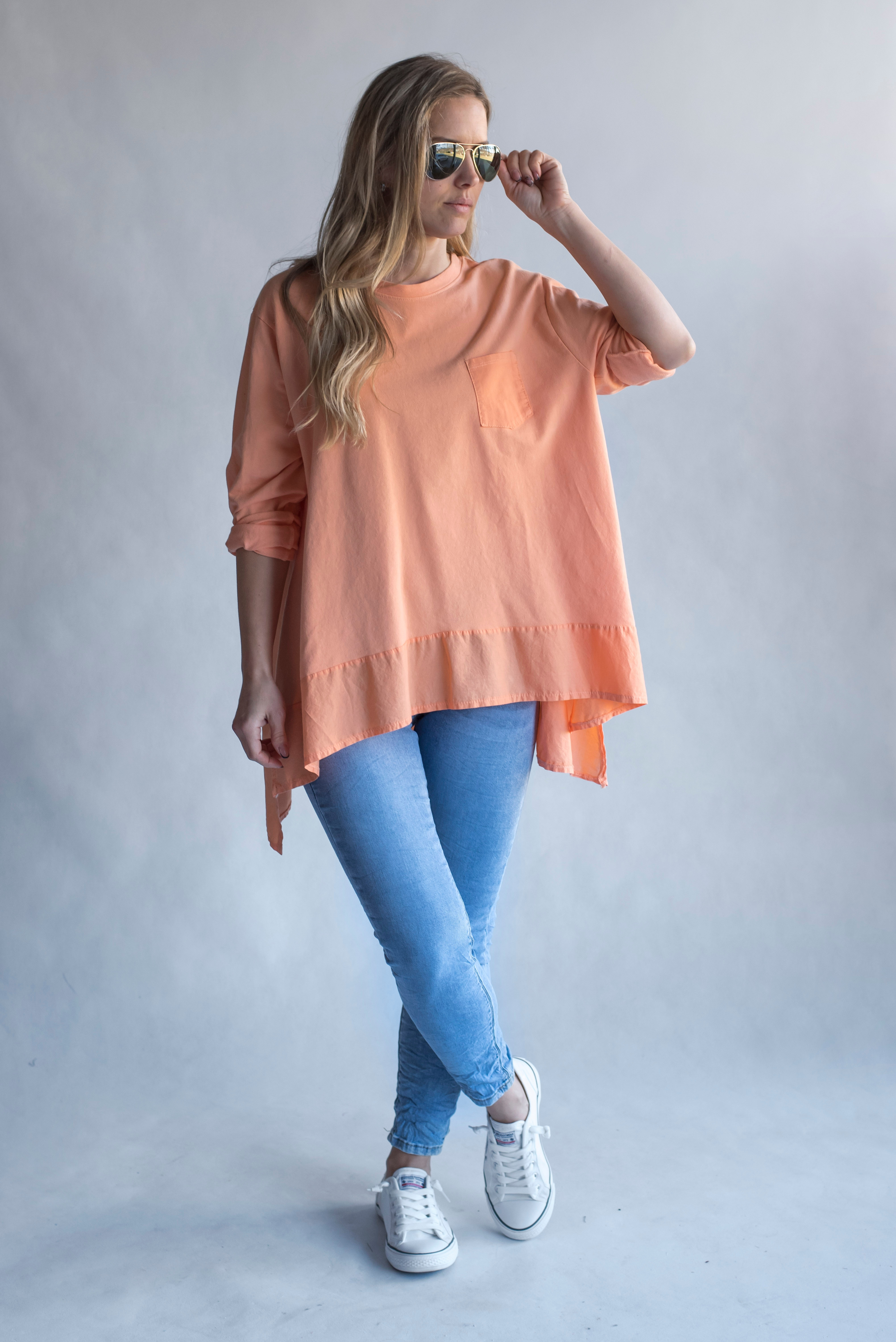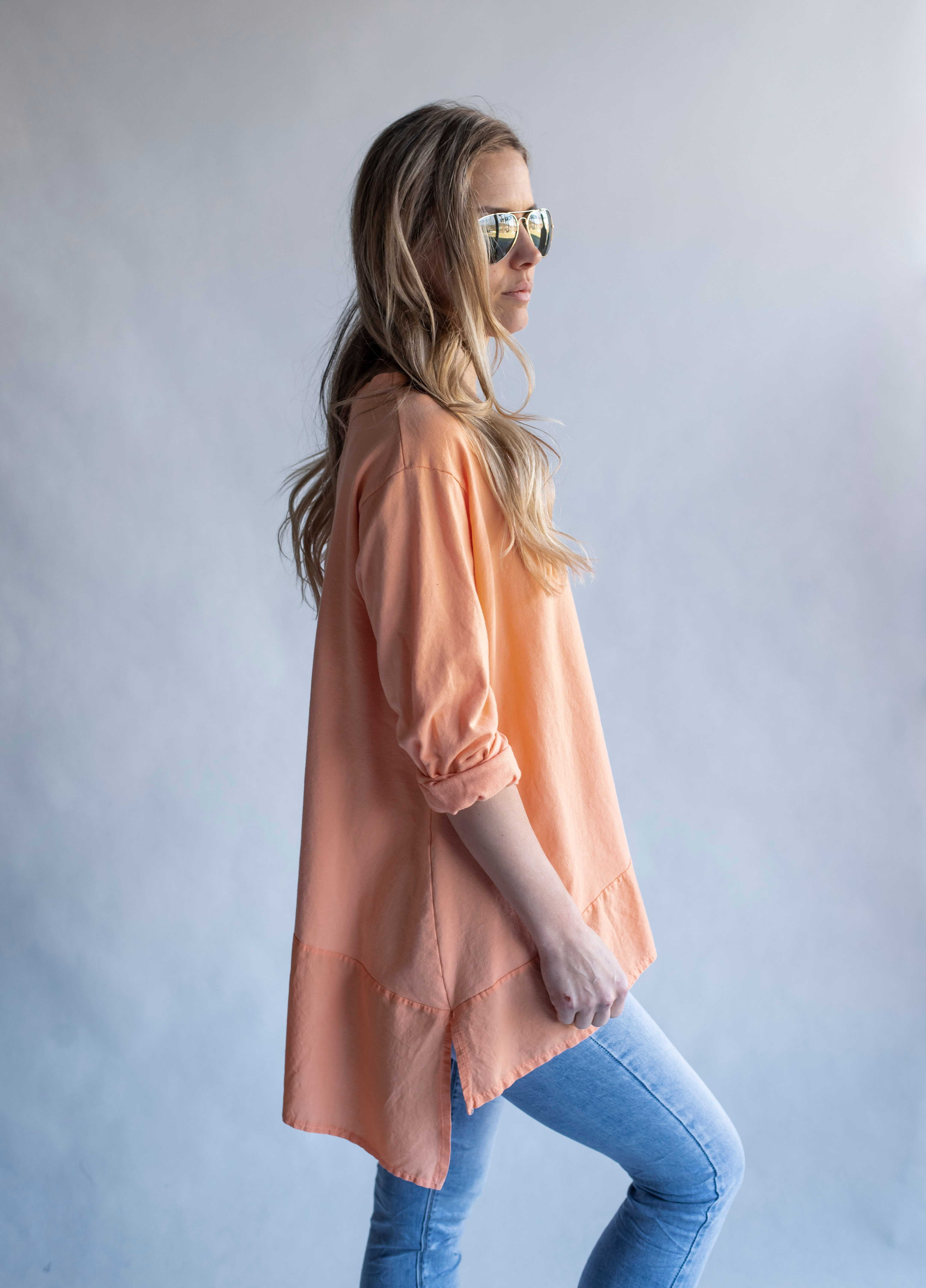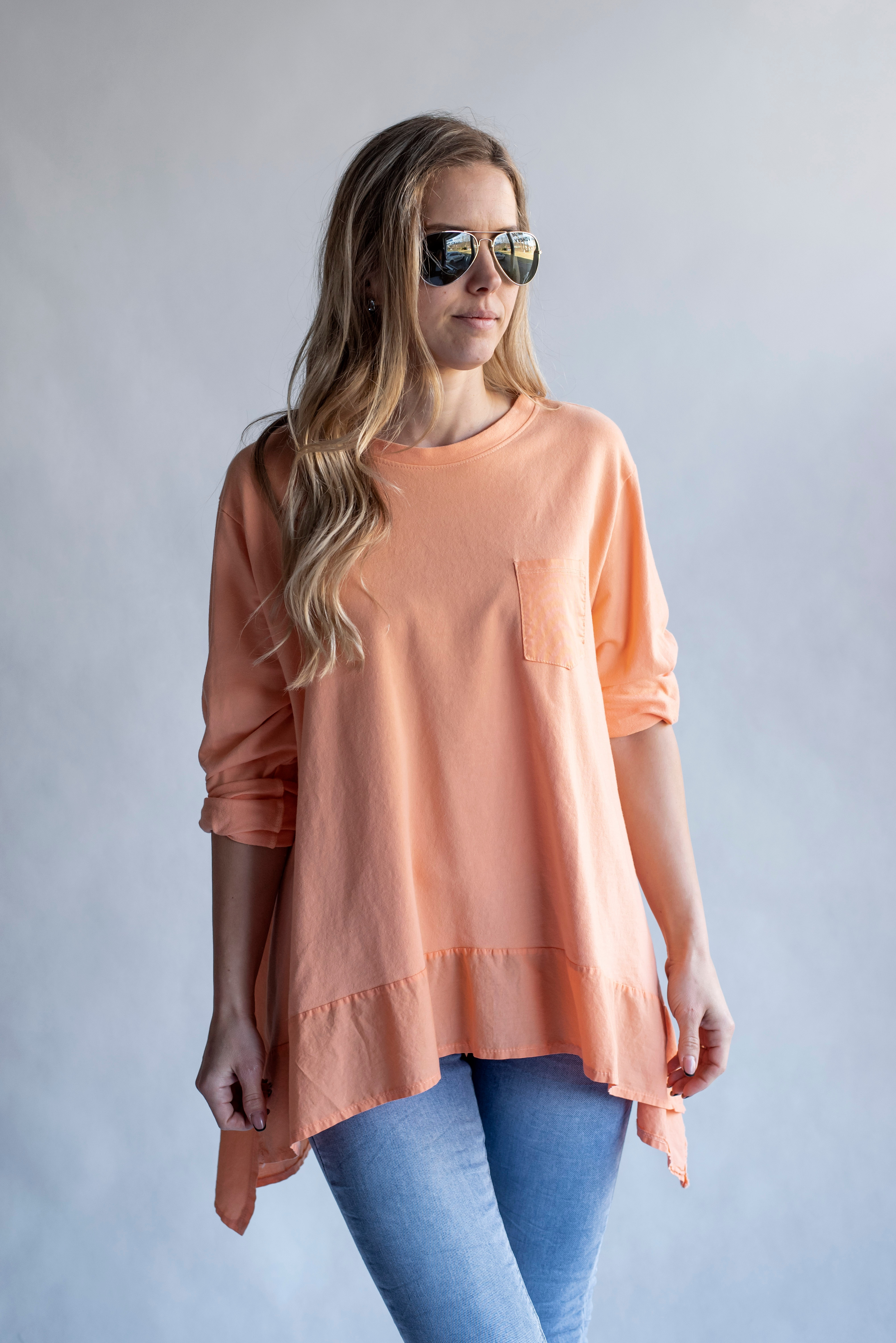 Stylová dámská mikina s dlouhým rukávem , delší v zadní části