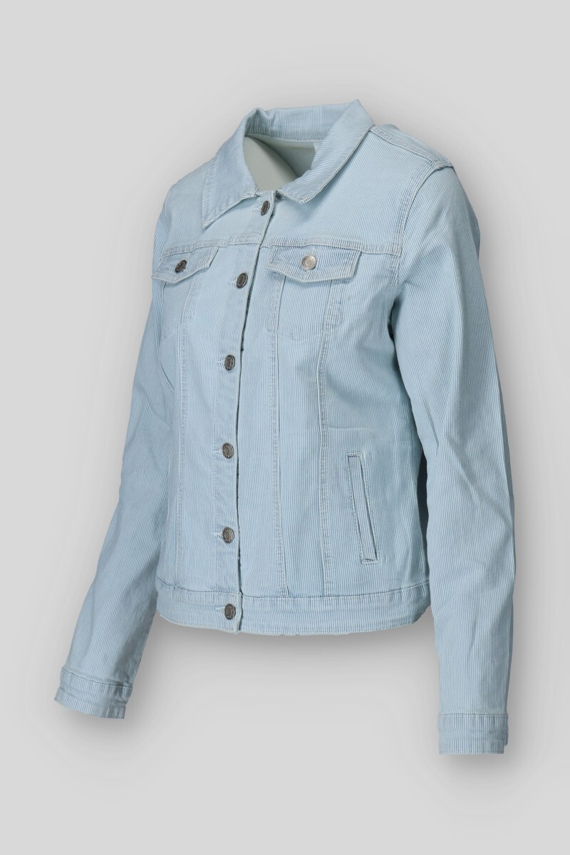 Džínová bunda s proužkem. Bunda má našité kapsy na přední straně. Lze kombinovat do kompletu s art. 260318