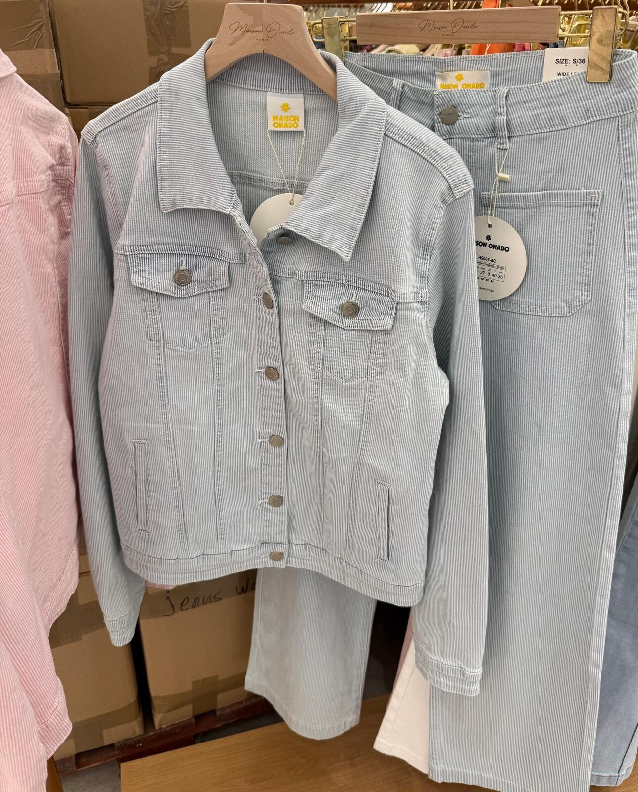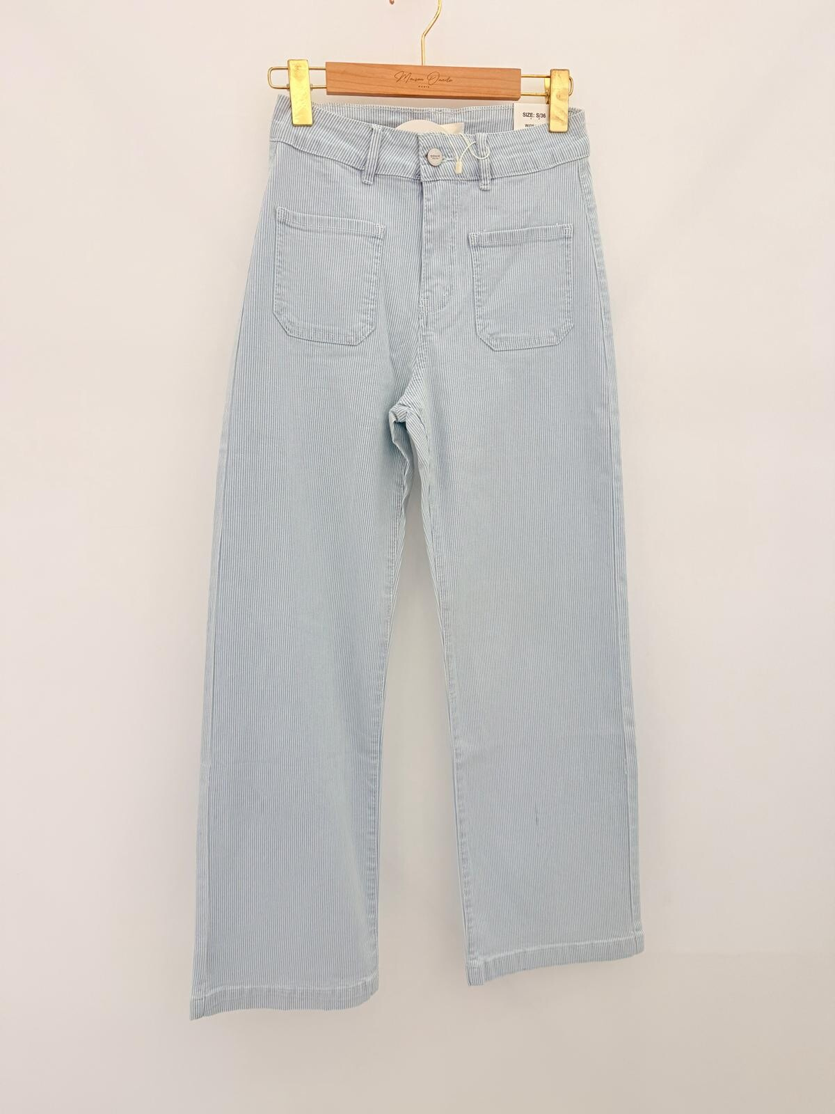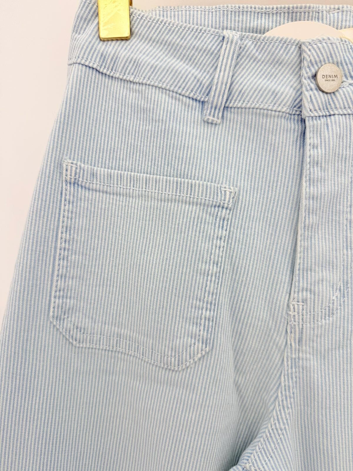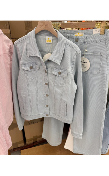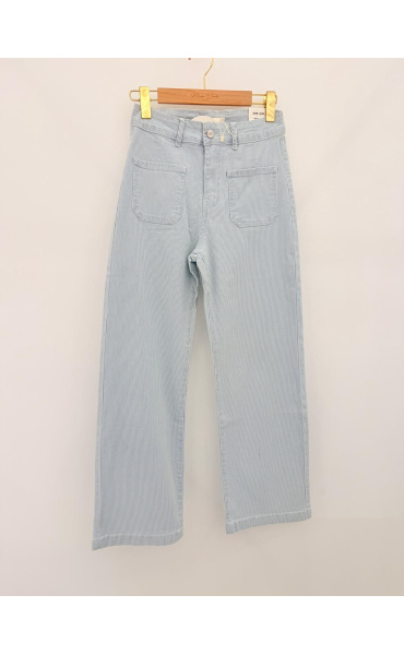 Džínové kalhoty s proužkem. Džíny mají mírně rozšířené nohavice a našité kapsy na přední straně. Lze kombinovat do kompletu s art. 260319