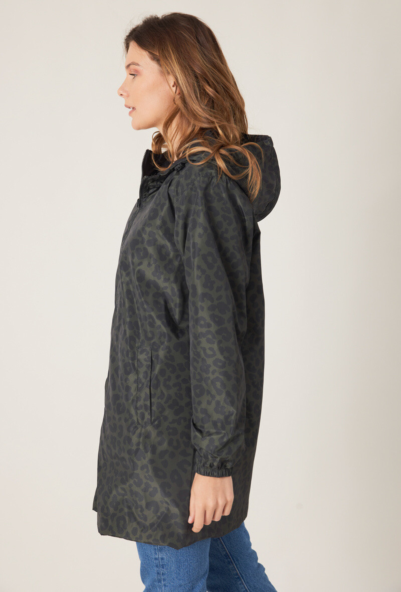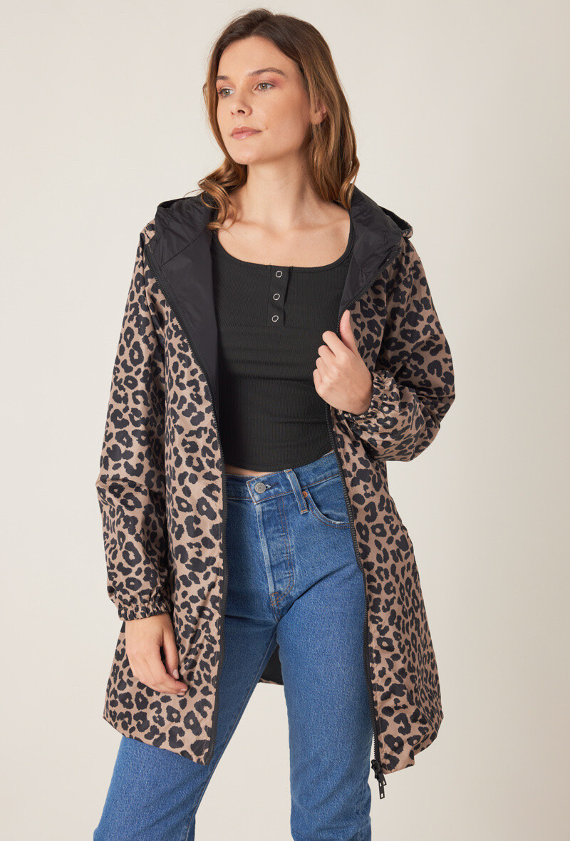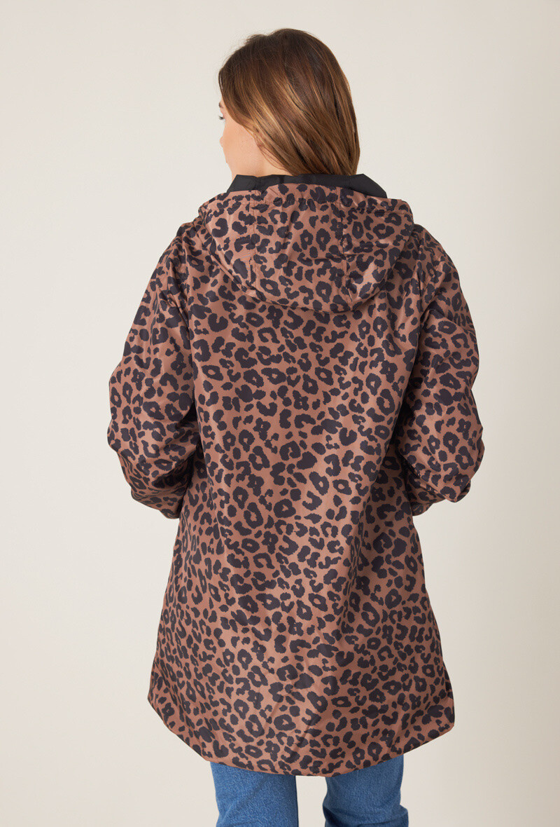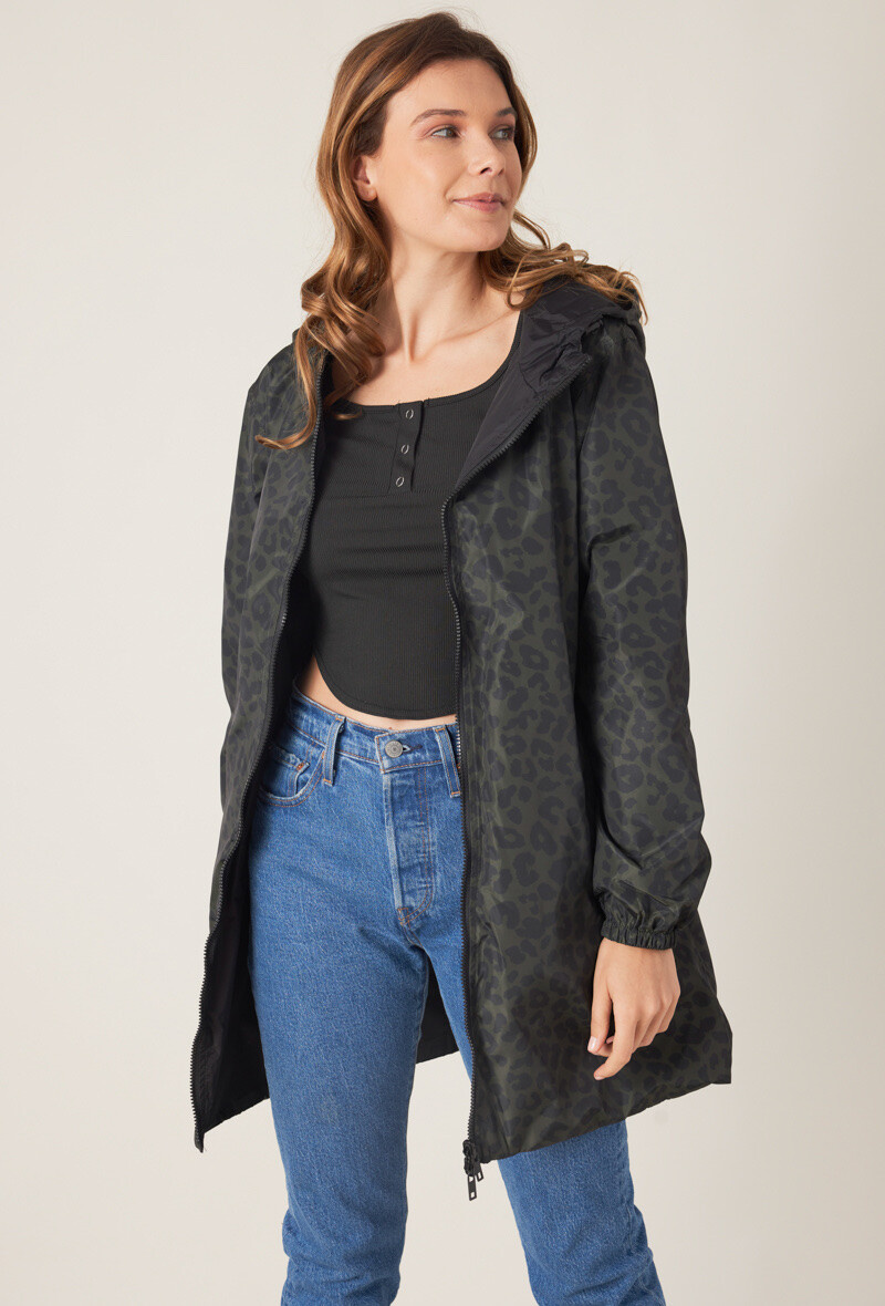 Voděodolná delší oboustranná parka-bunda s kapucí.