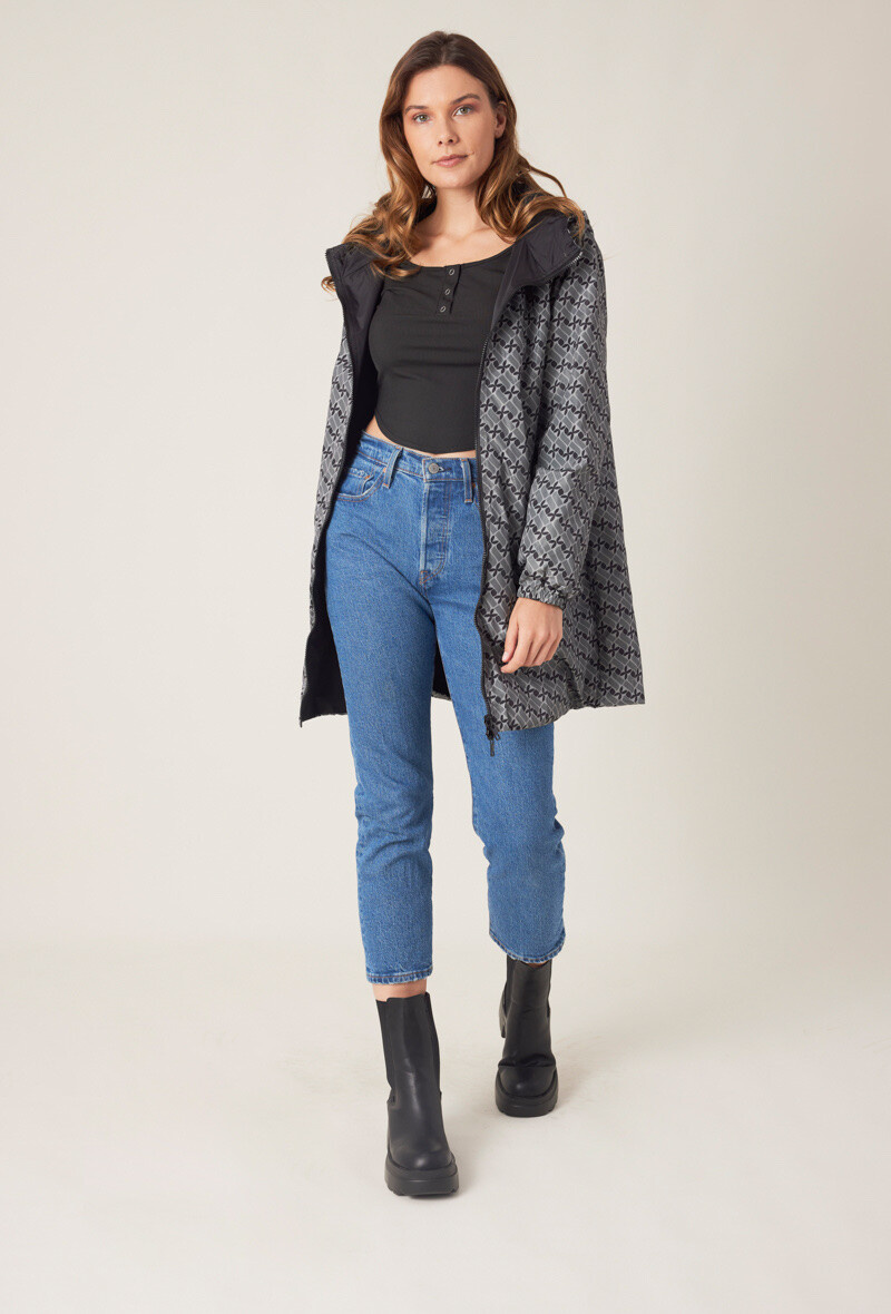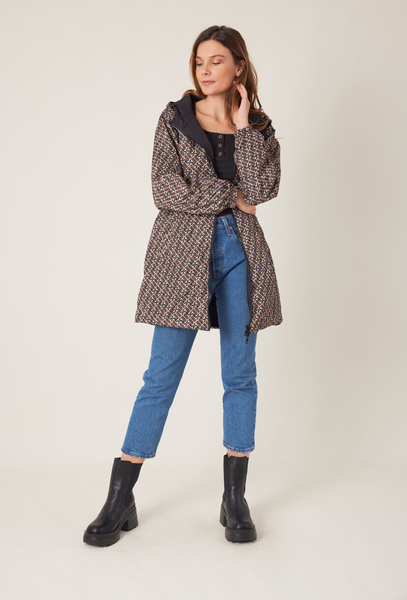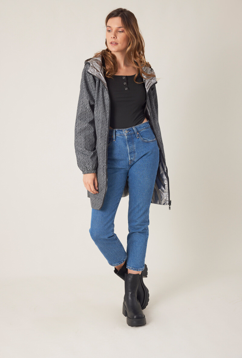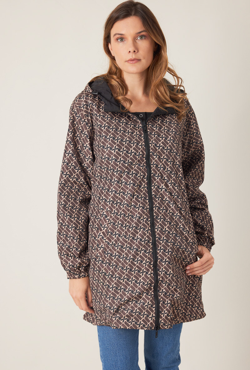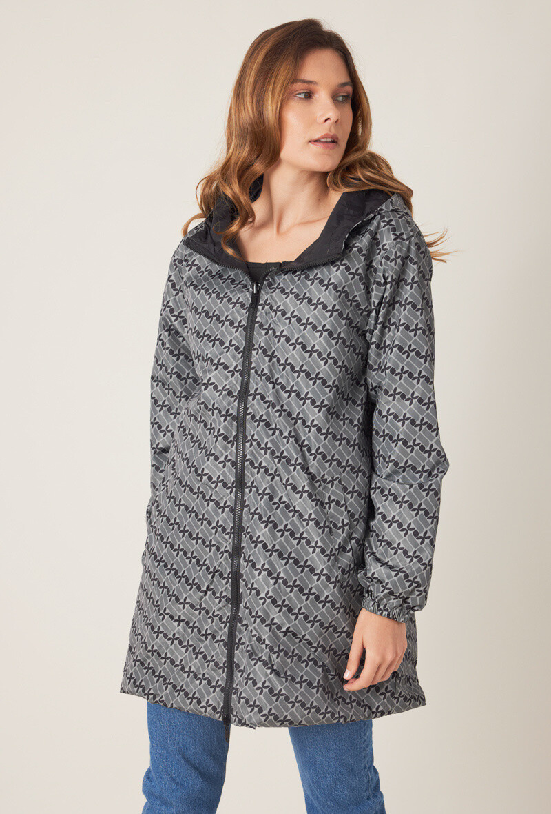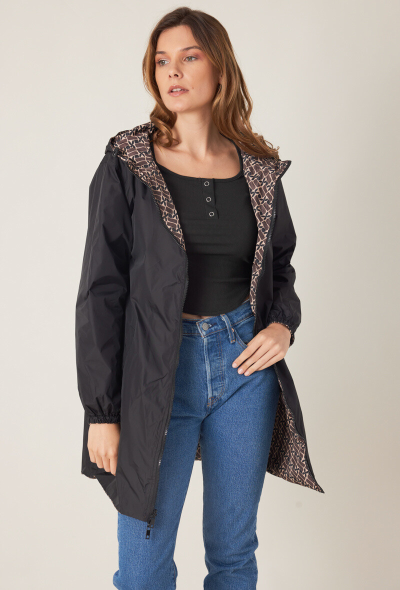 Voděodolná delší oboustranná parka-bunda s kapucí.