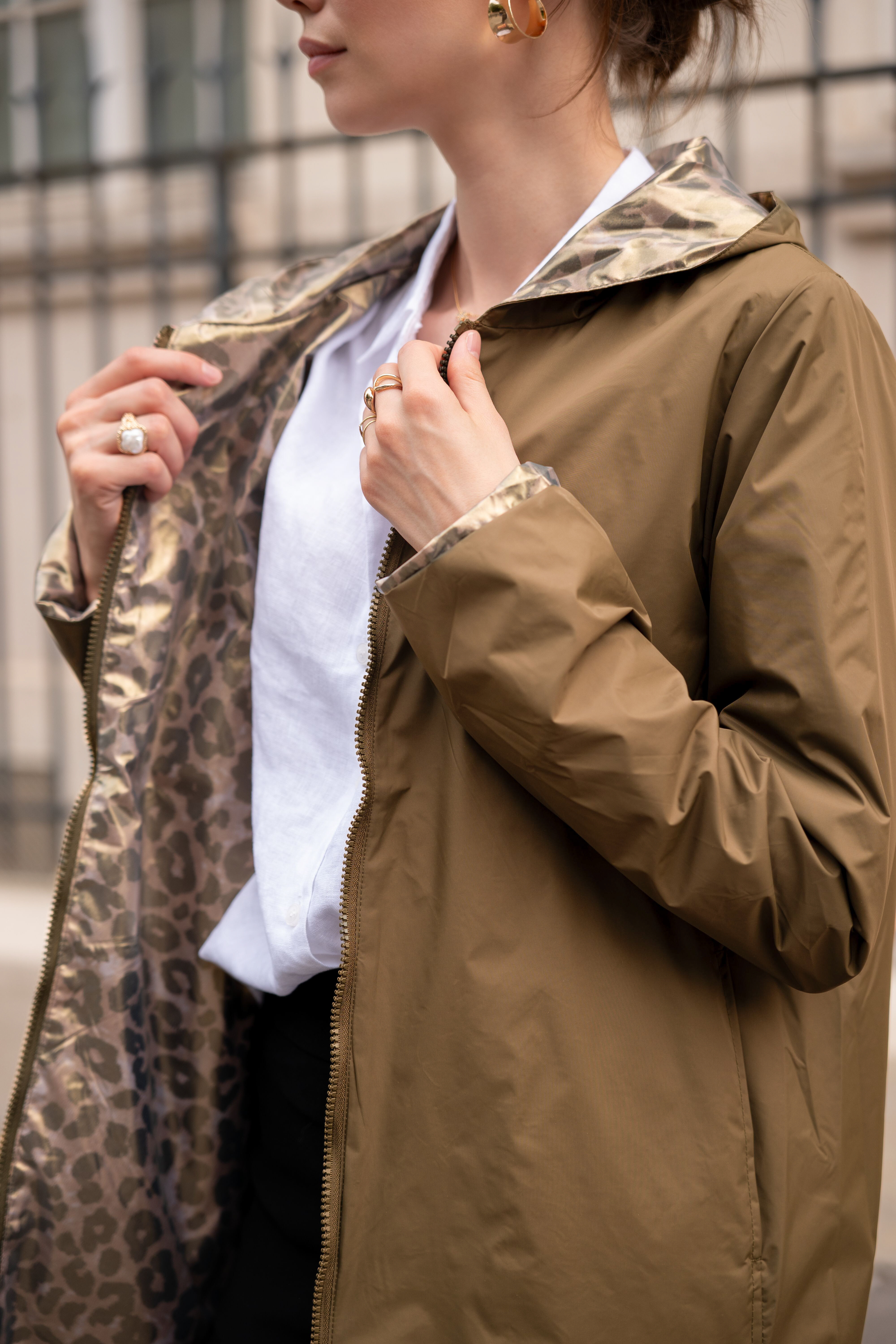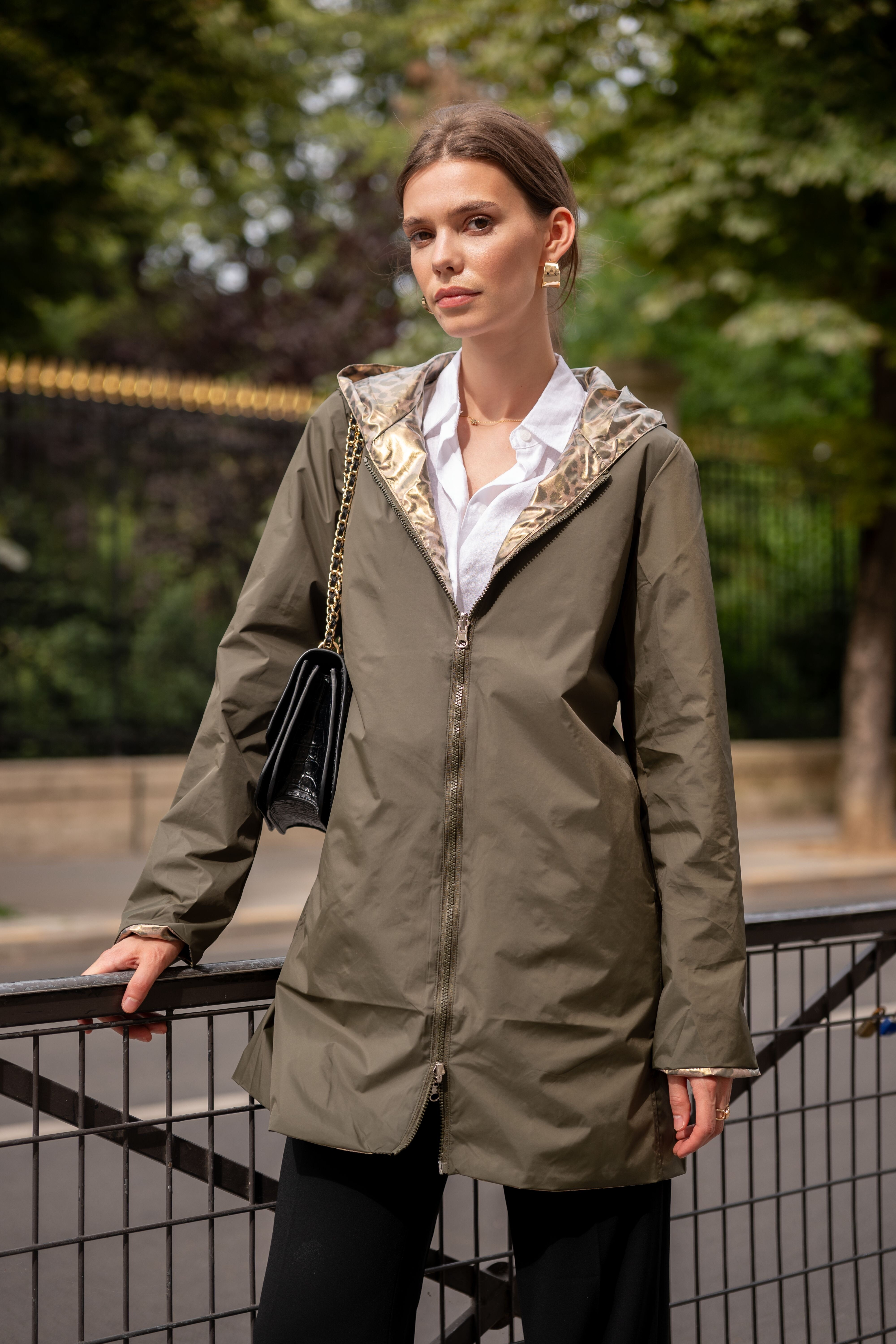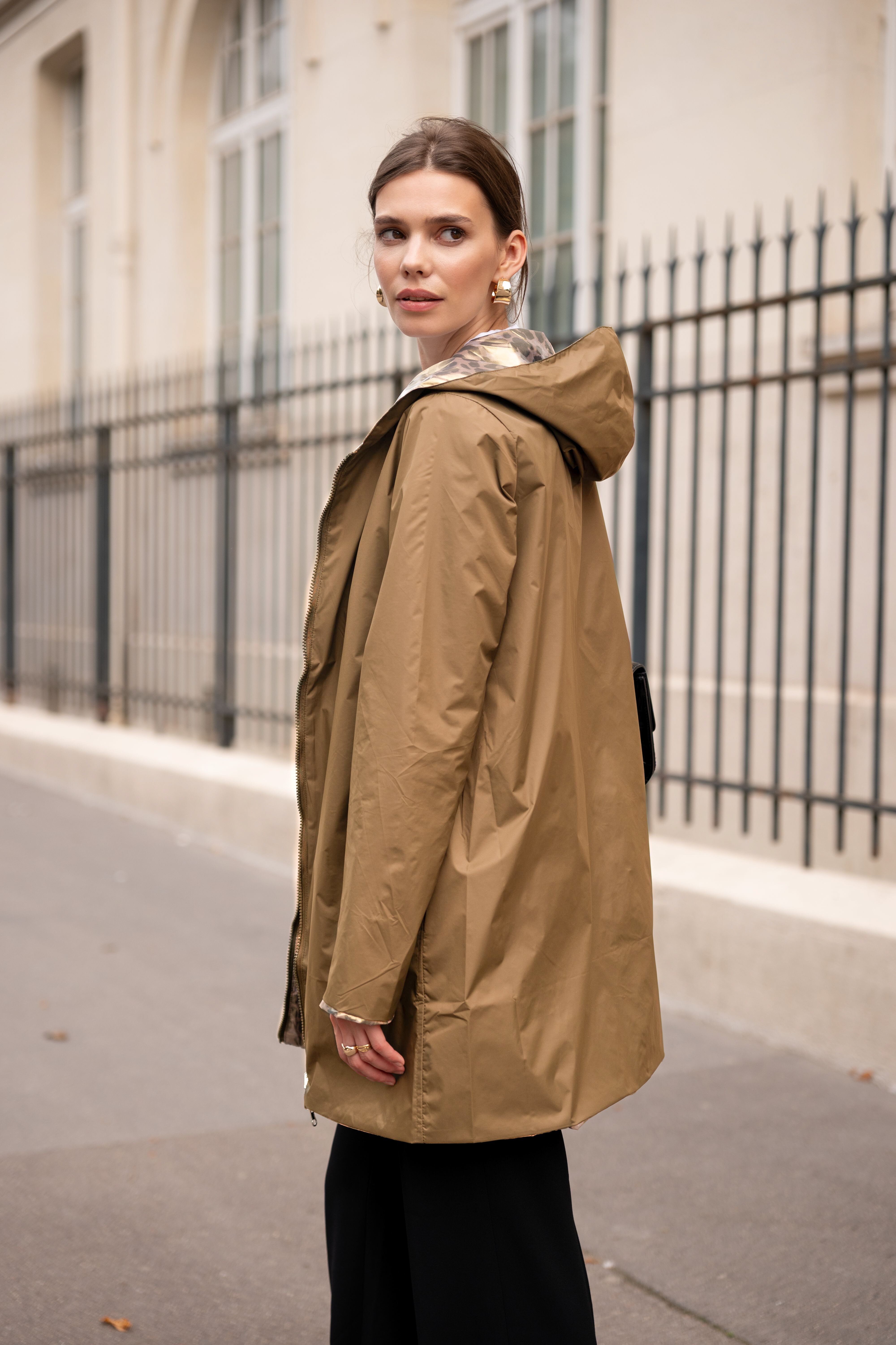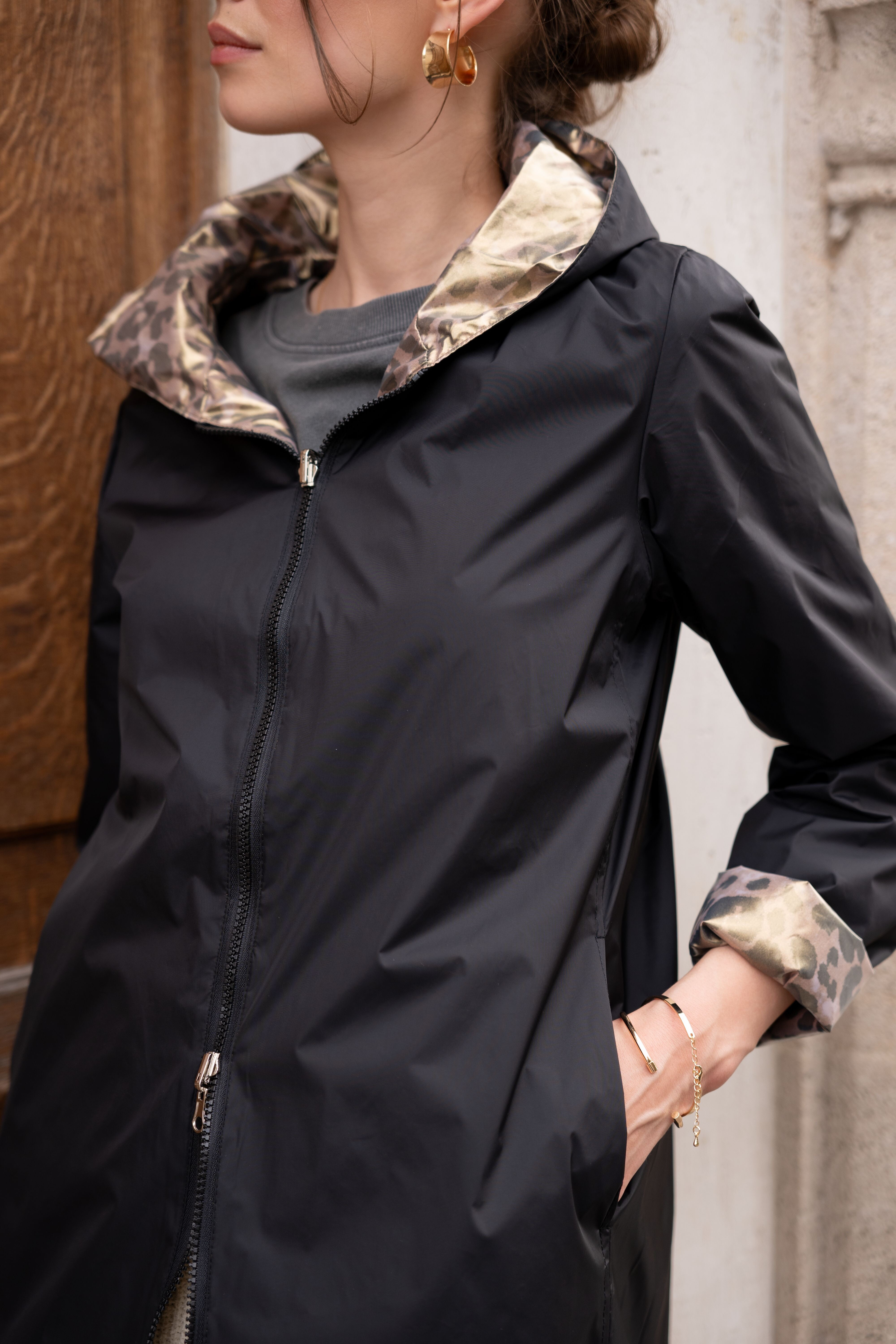 Voděodolná delší oboustranná parka-bunda s kapucí