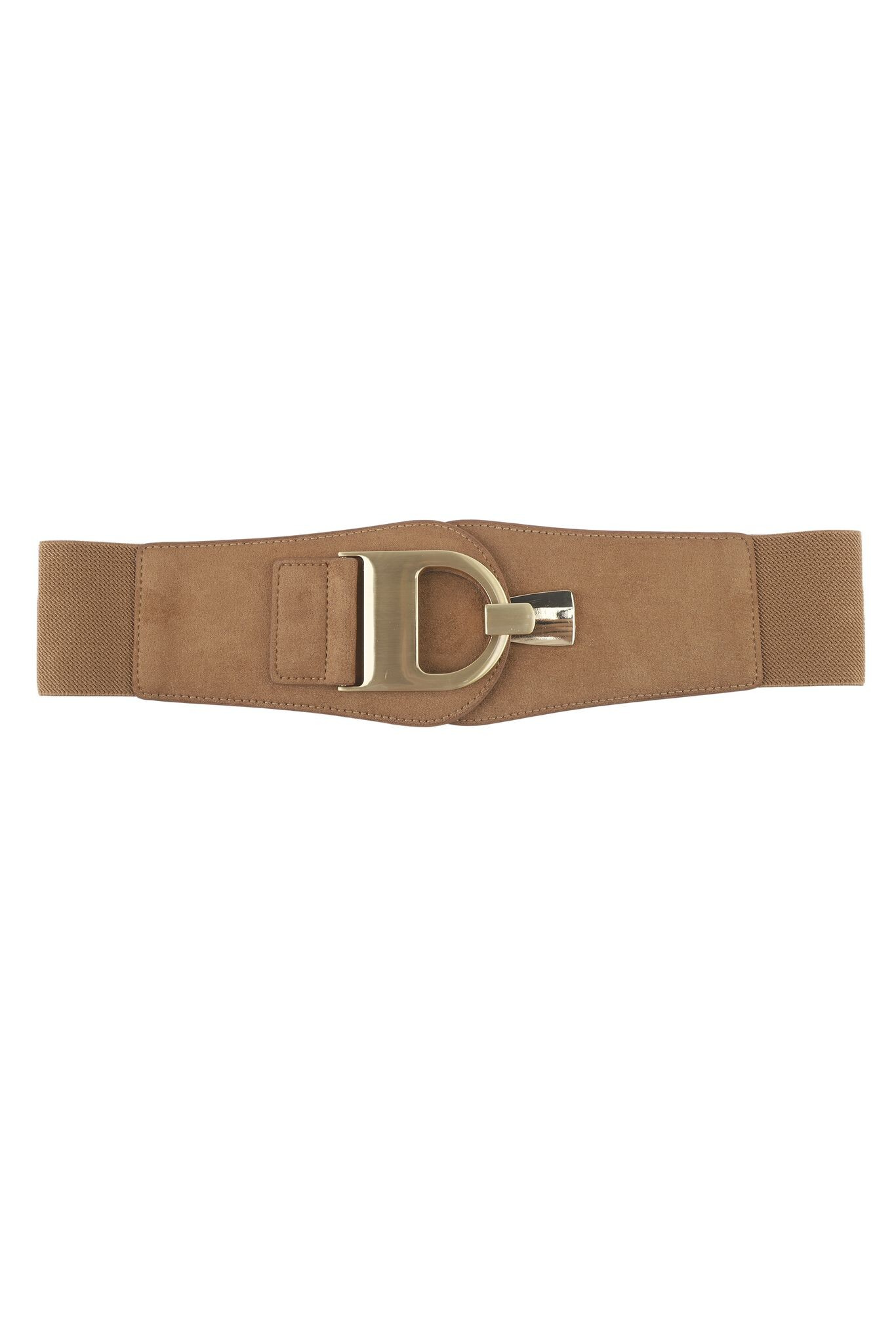 Dámský trendy gumový pásek se zlatou velkou sponou.
